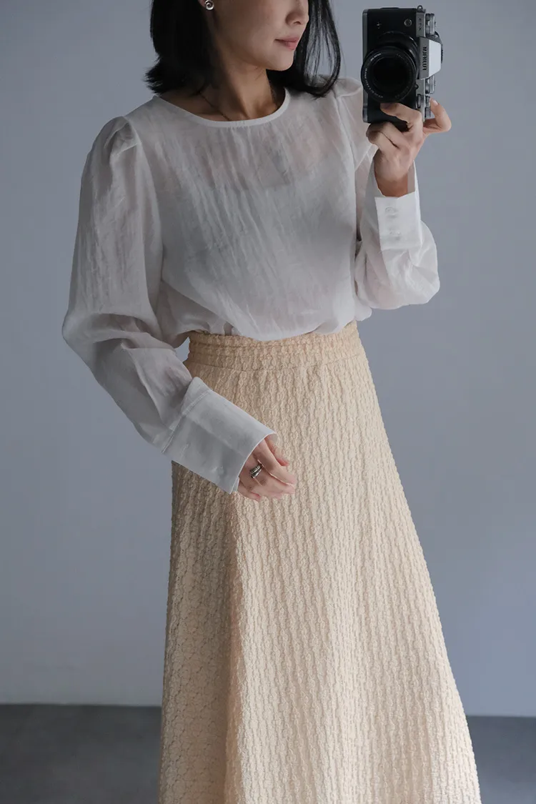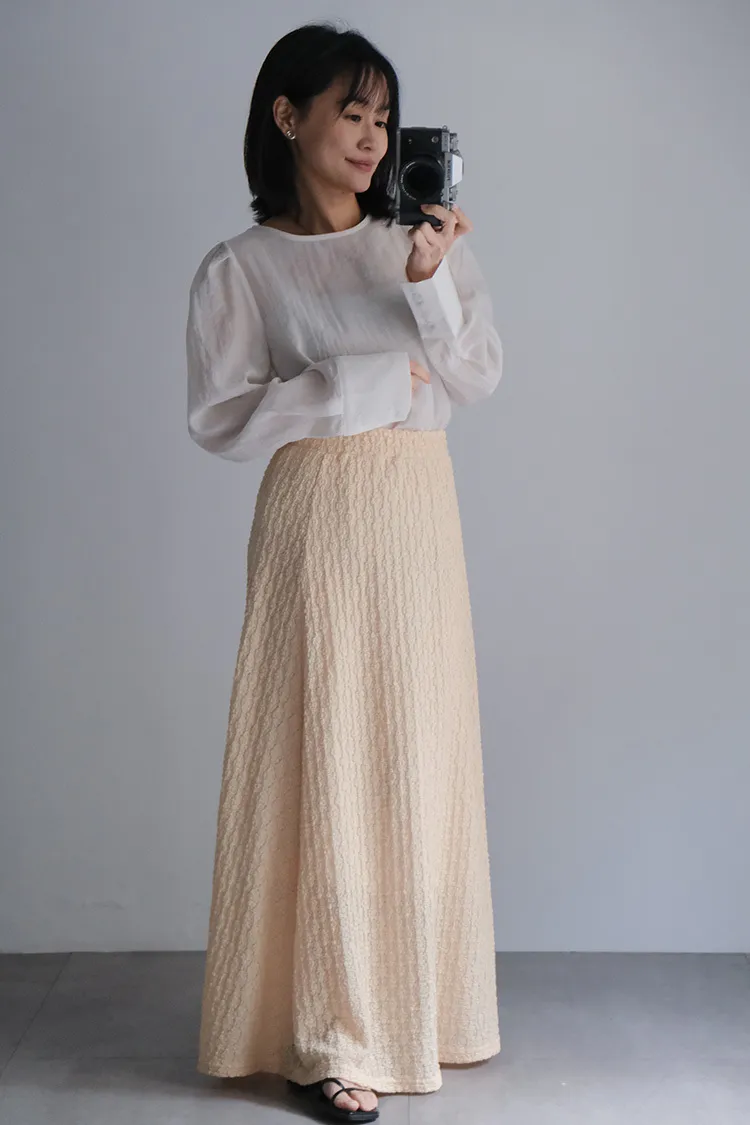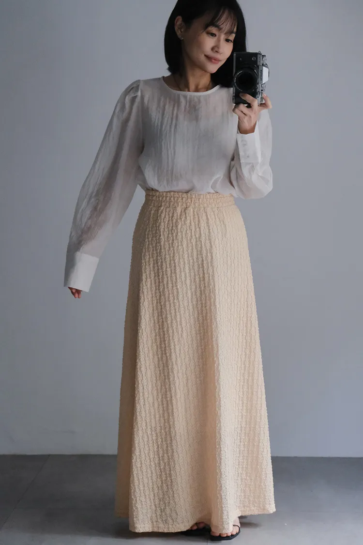 [特點] 鬆緊彈性腰圍,織紋泡泡感設計,柔軟有彈性的面料,有半截舒適的雪紡內裡,無口袋。