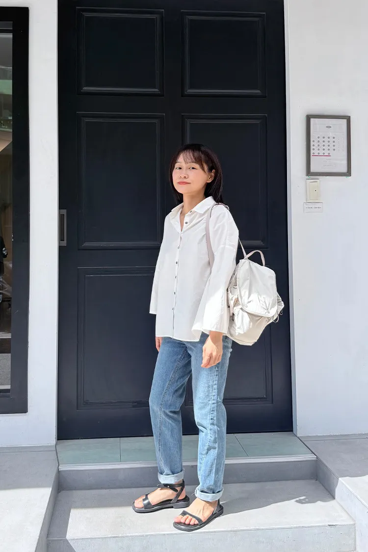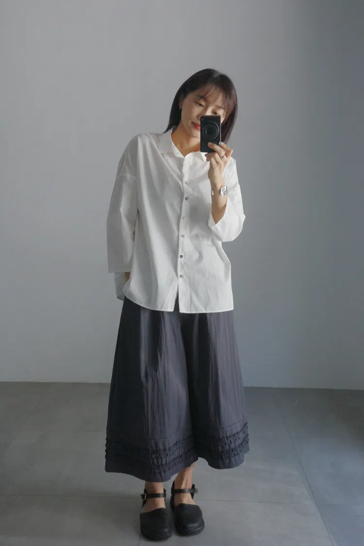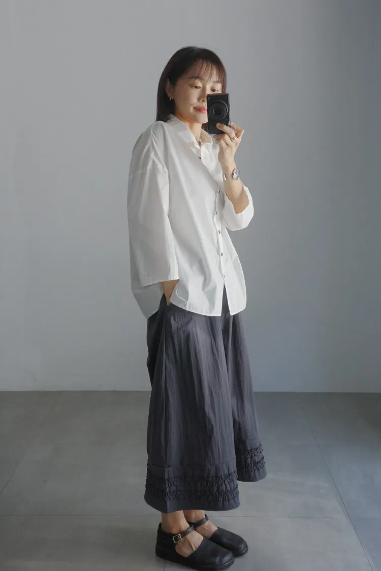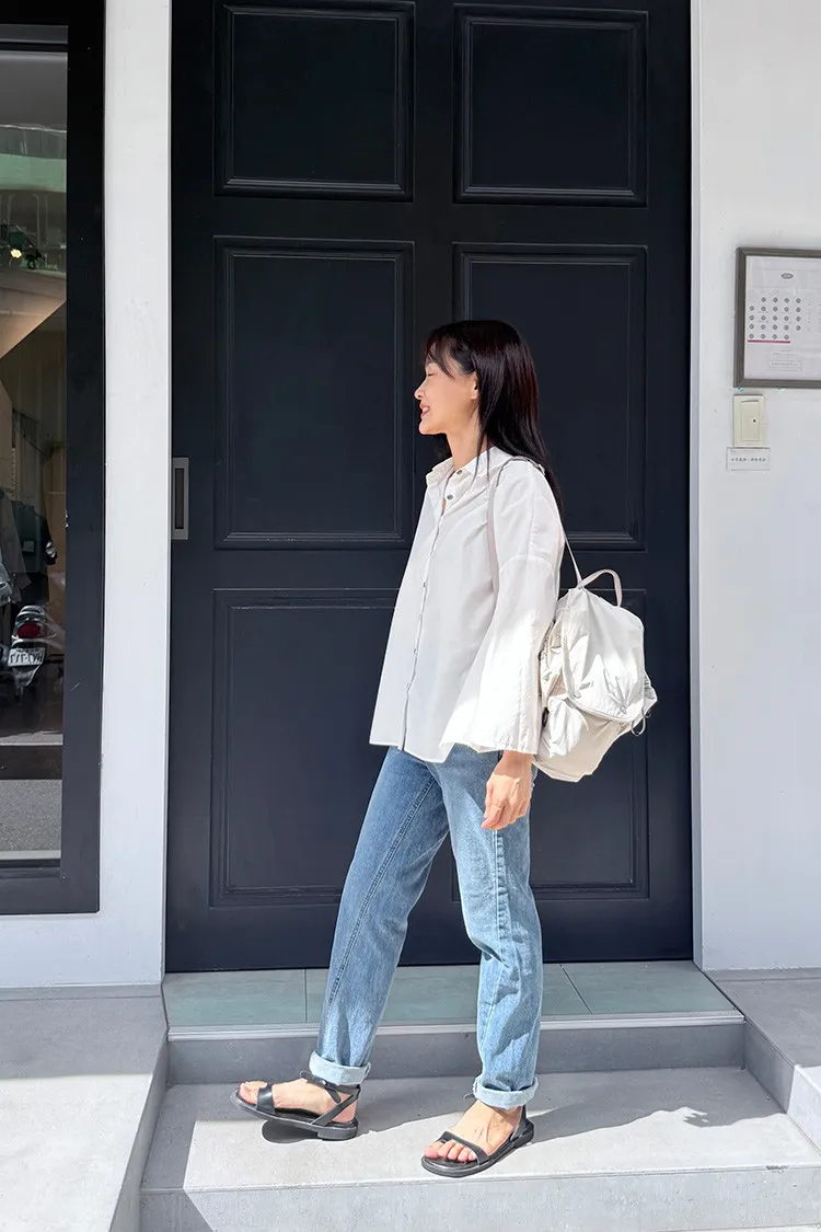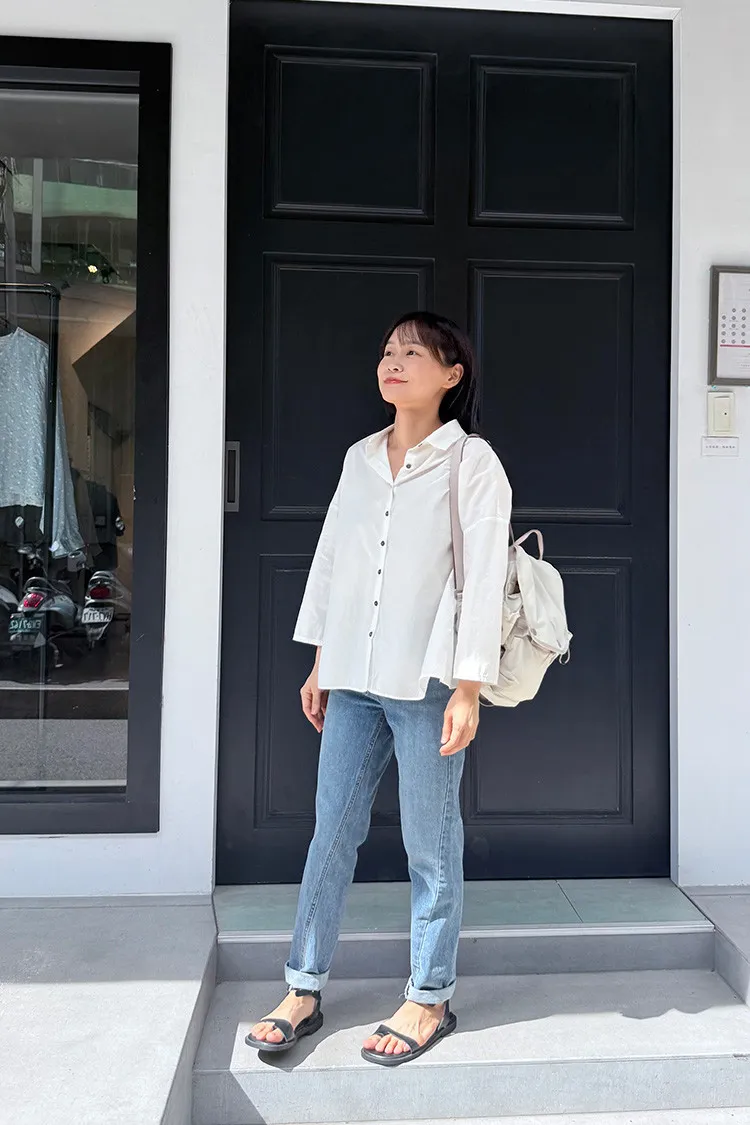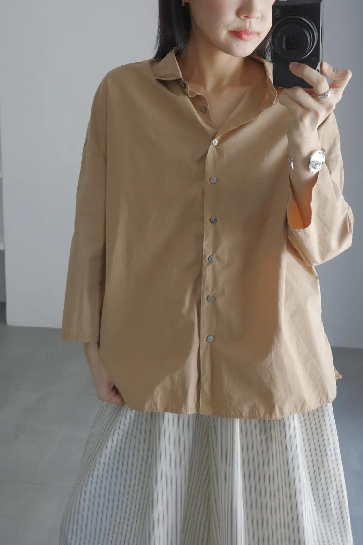 [特點] 微挺純棉手感,薄面料,七分袖剪裁。