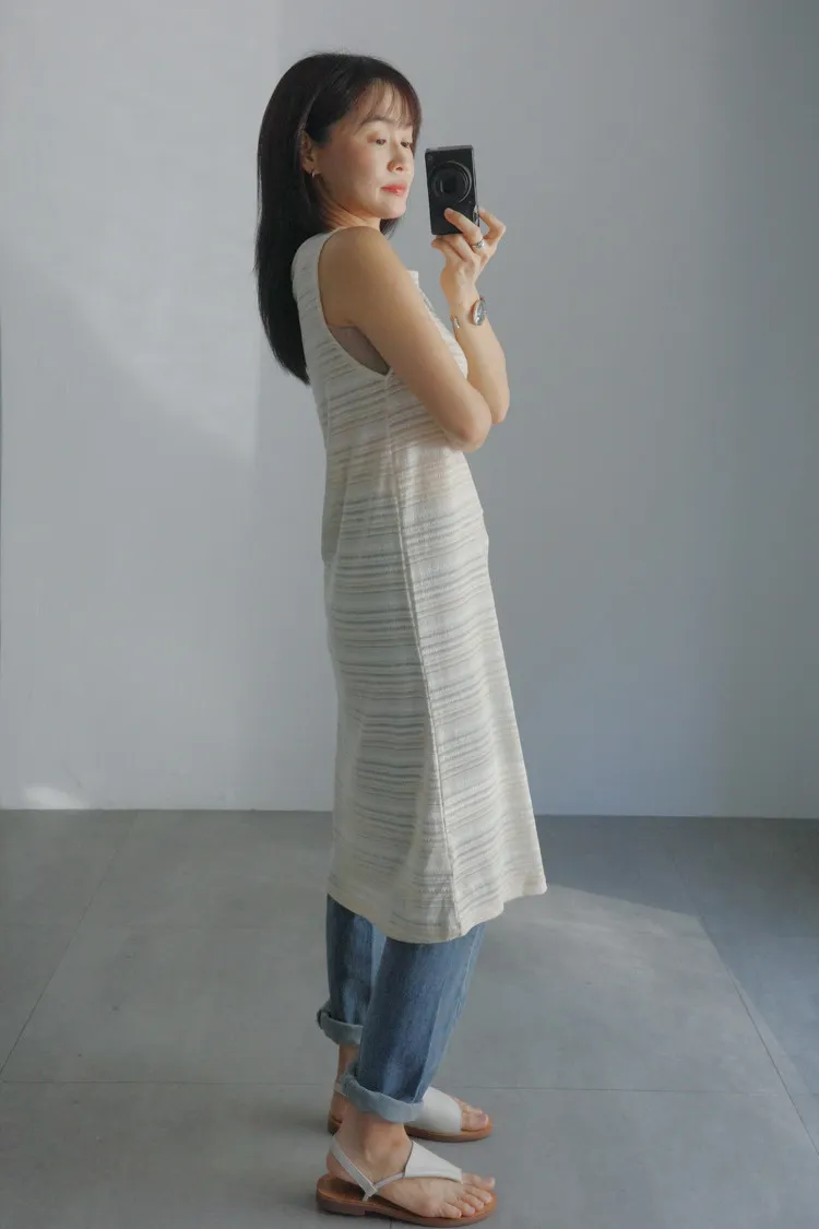 [特點] 軟料編織面料,版型略合身,微微透肌感。