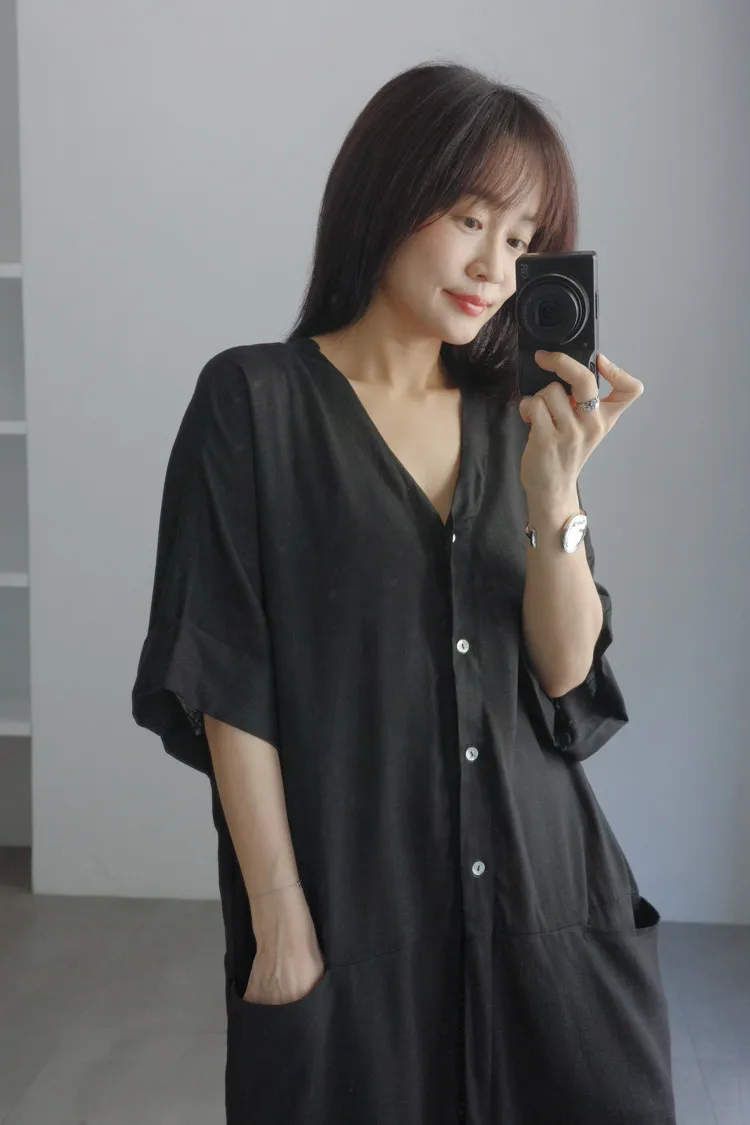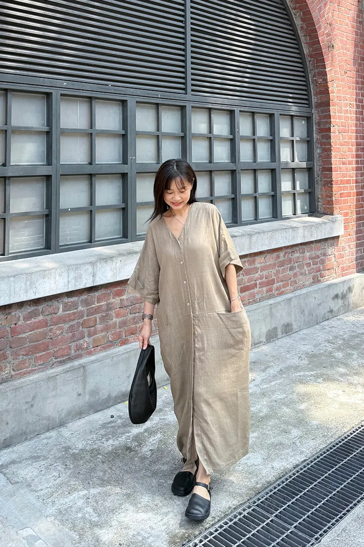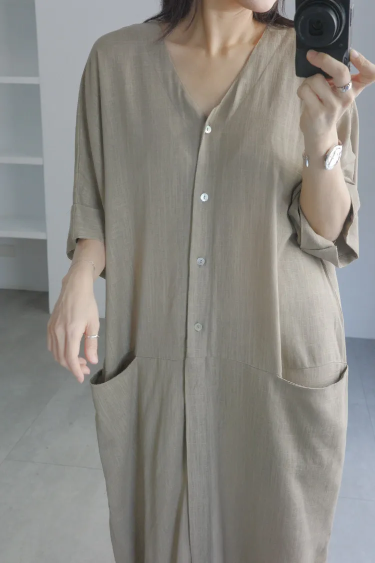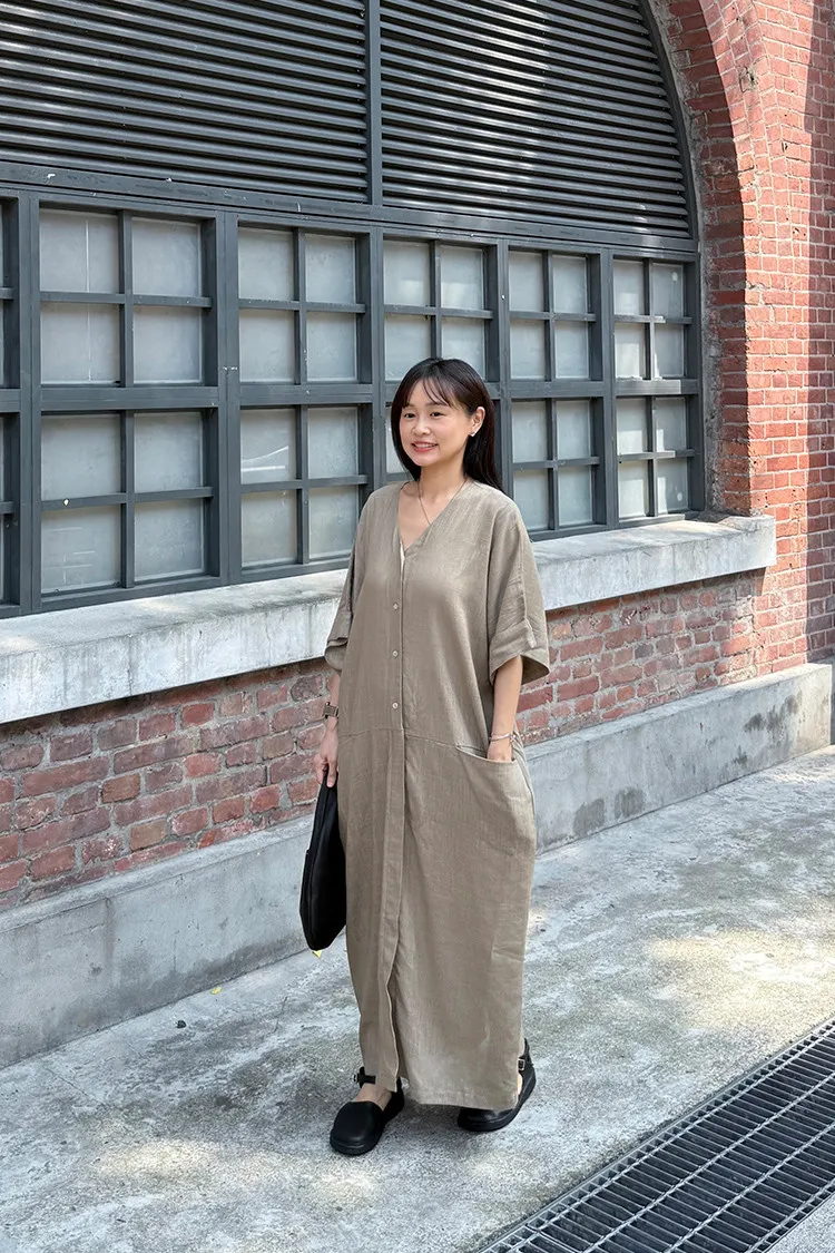 [特點] 手感柔軟滑順,有亞麻的挺度與透氣感,V領設計修飾臉型,