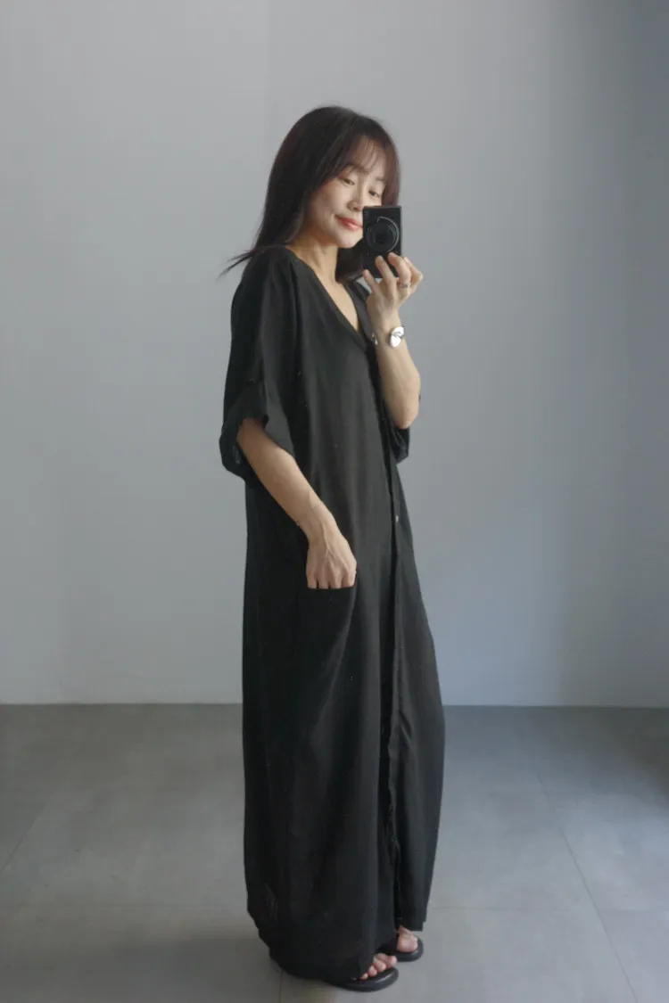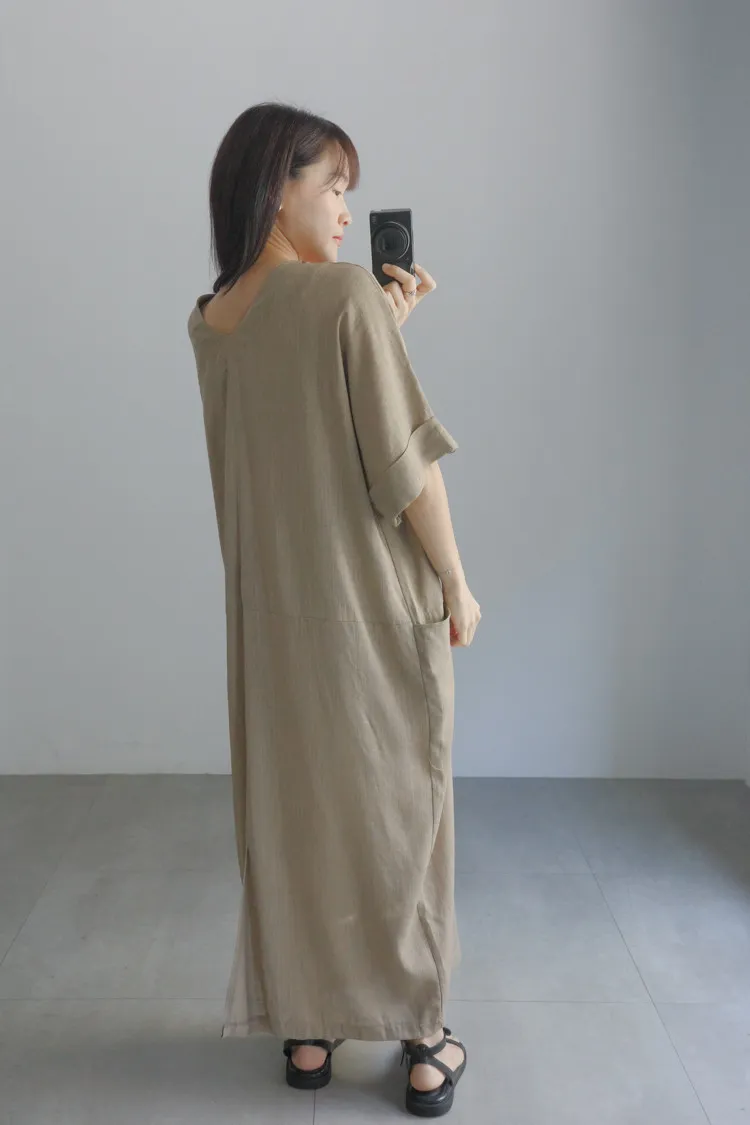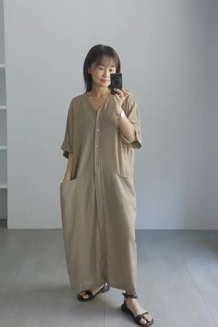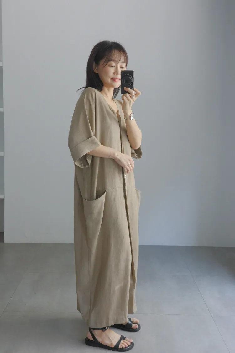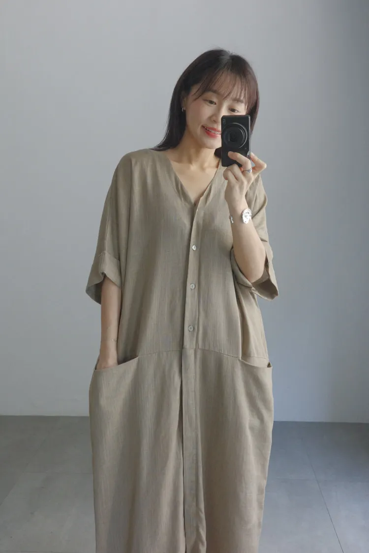 [特點] 手感柔軟滑順,有亞麻的挺度與透氣感,V領設計修飾臉型,
