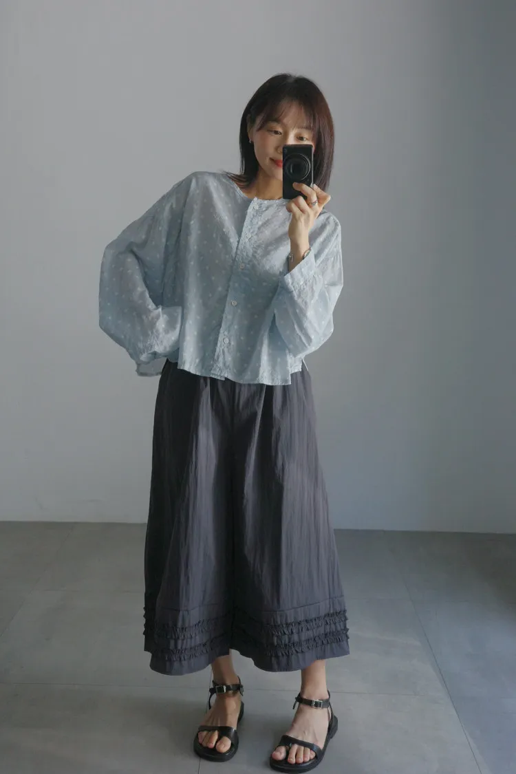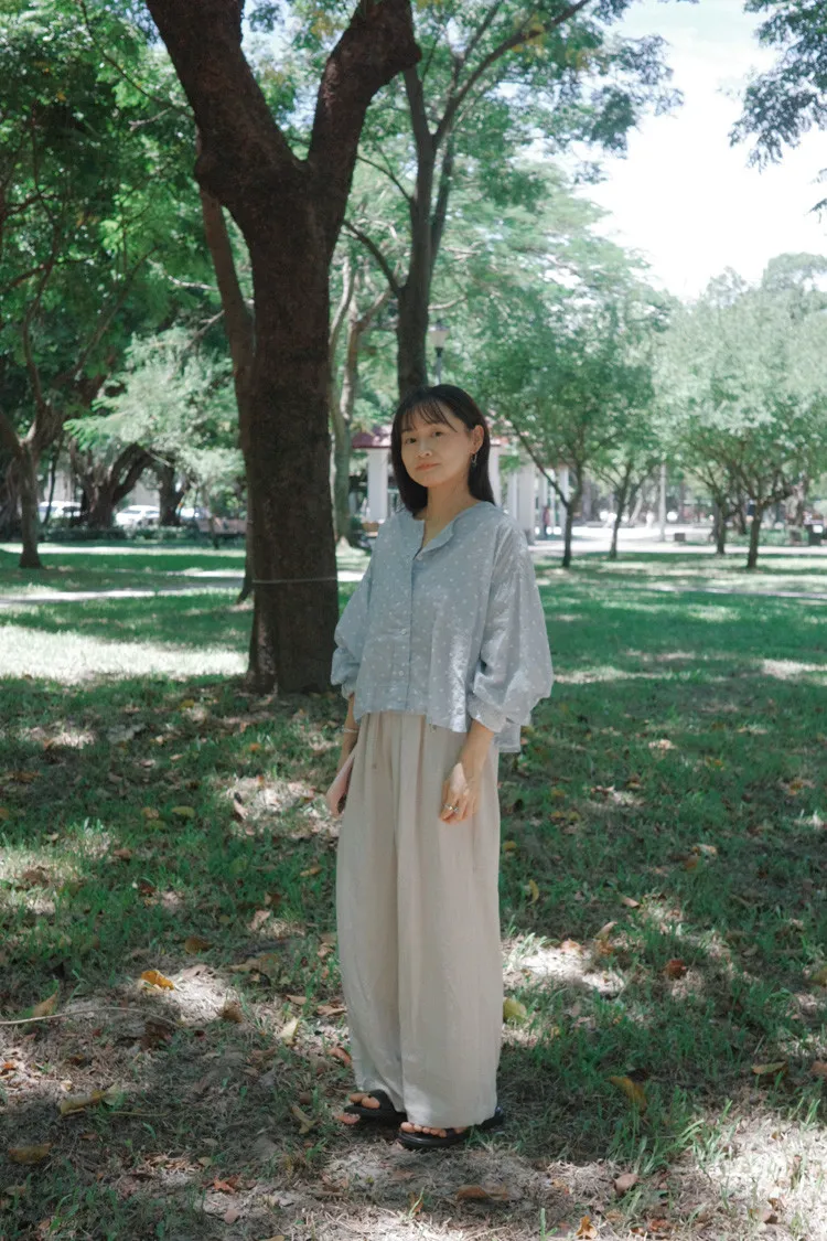 [特點] 排釦設計,薄棉柔軟舒適,寬鬆略短版剪裁。