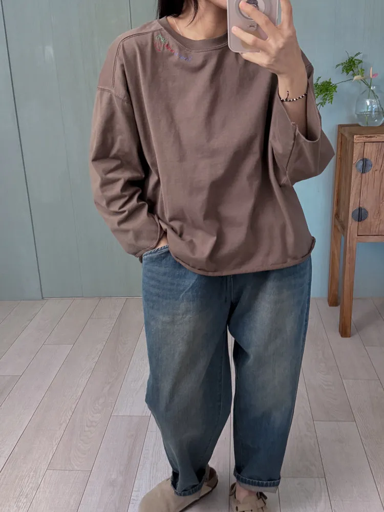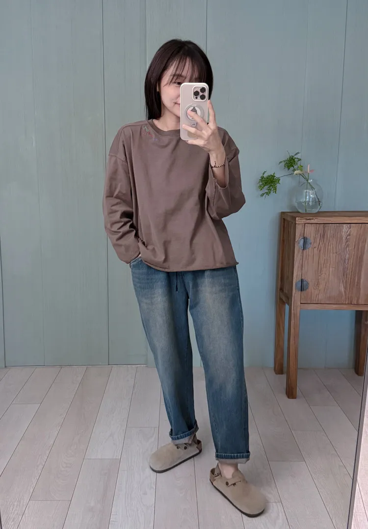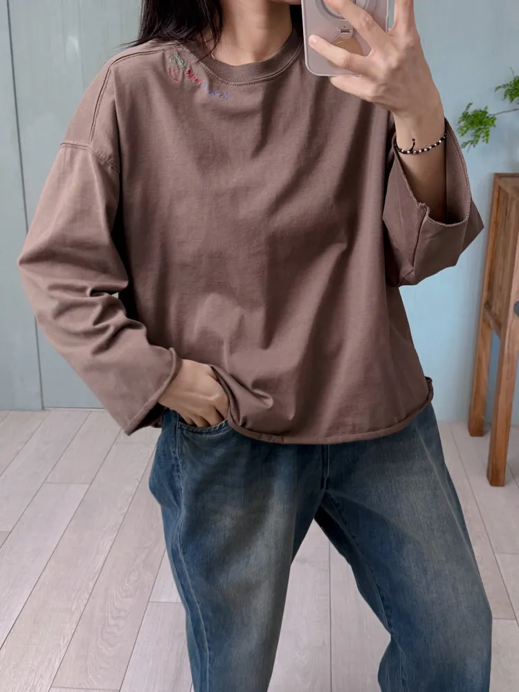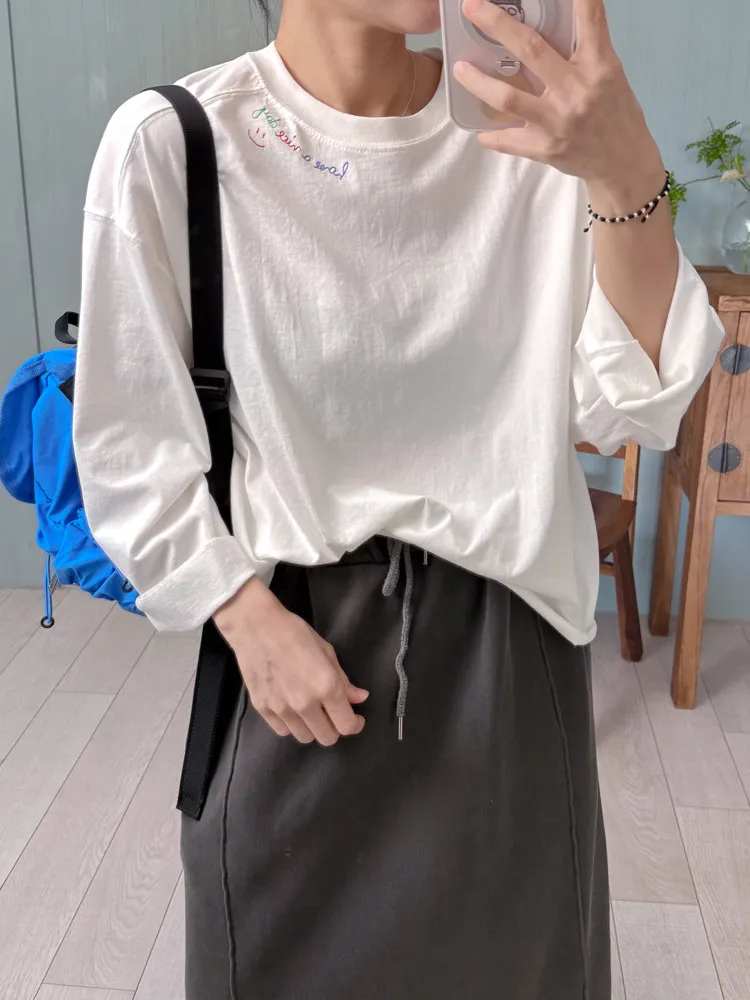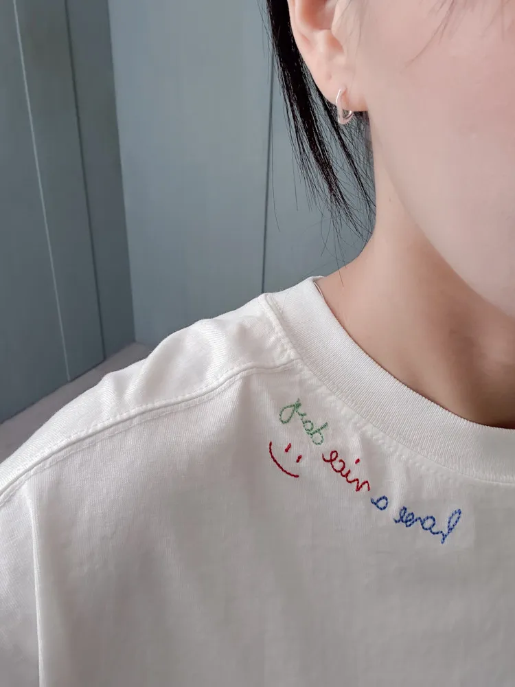 彩色刺繡笑臉長棉T