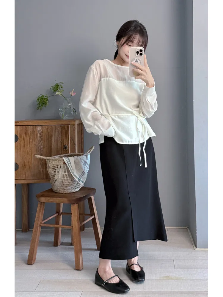 [特點] 手感偏厚的雪紡面料,舒適的鬆緊彈性腰圍,下擺不規則剪裁。