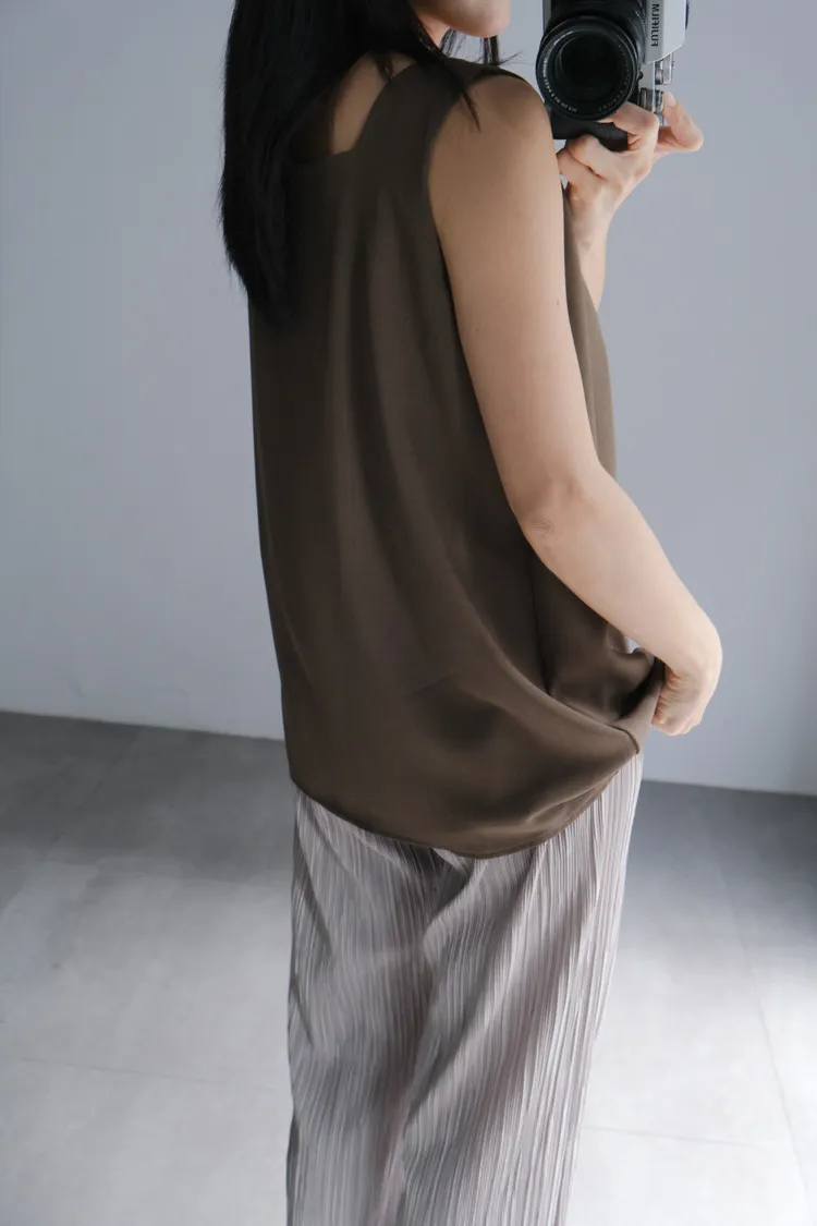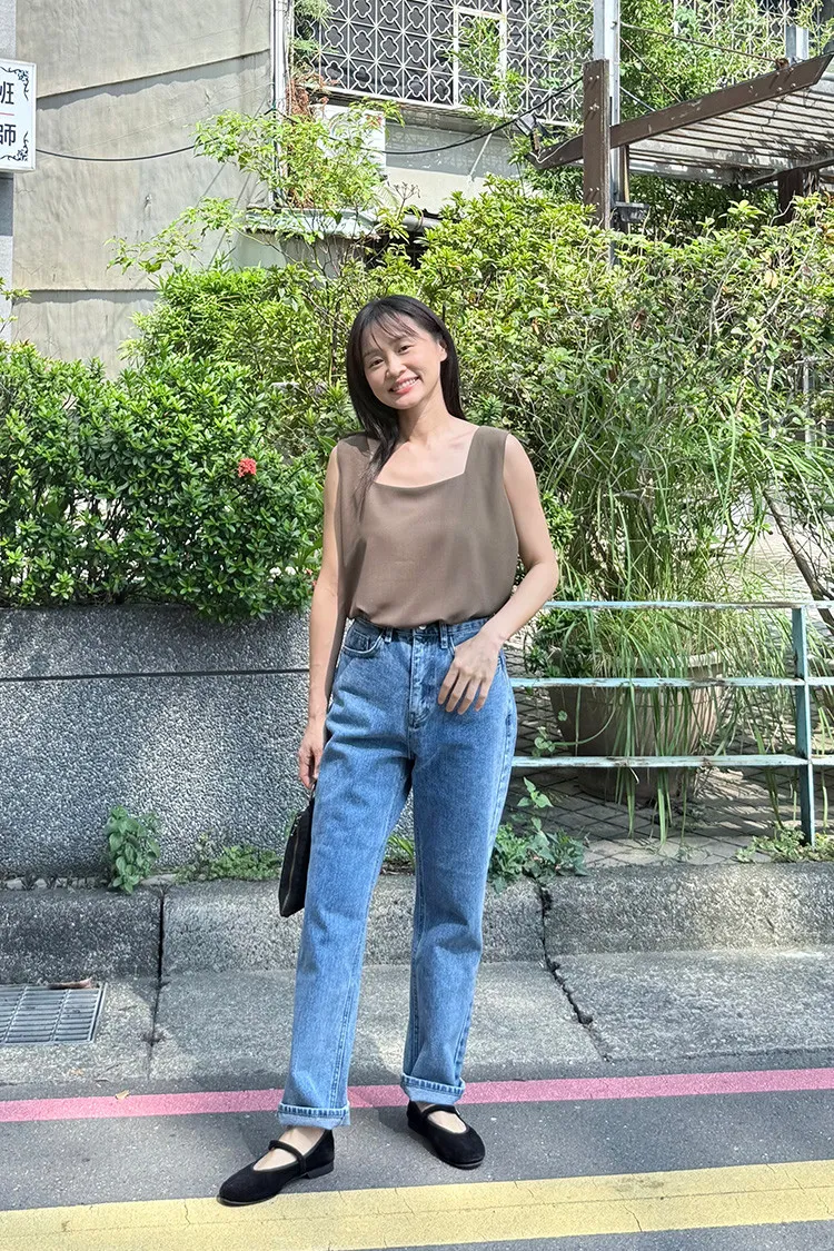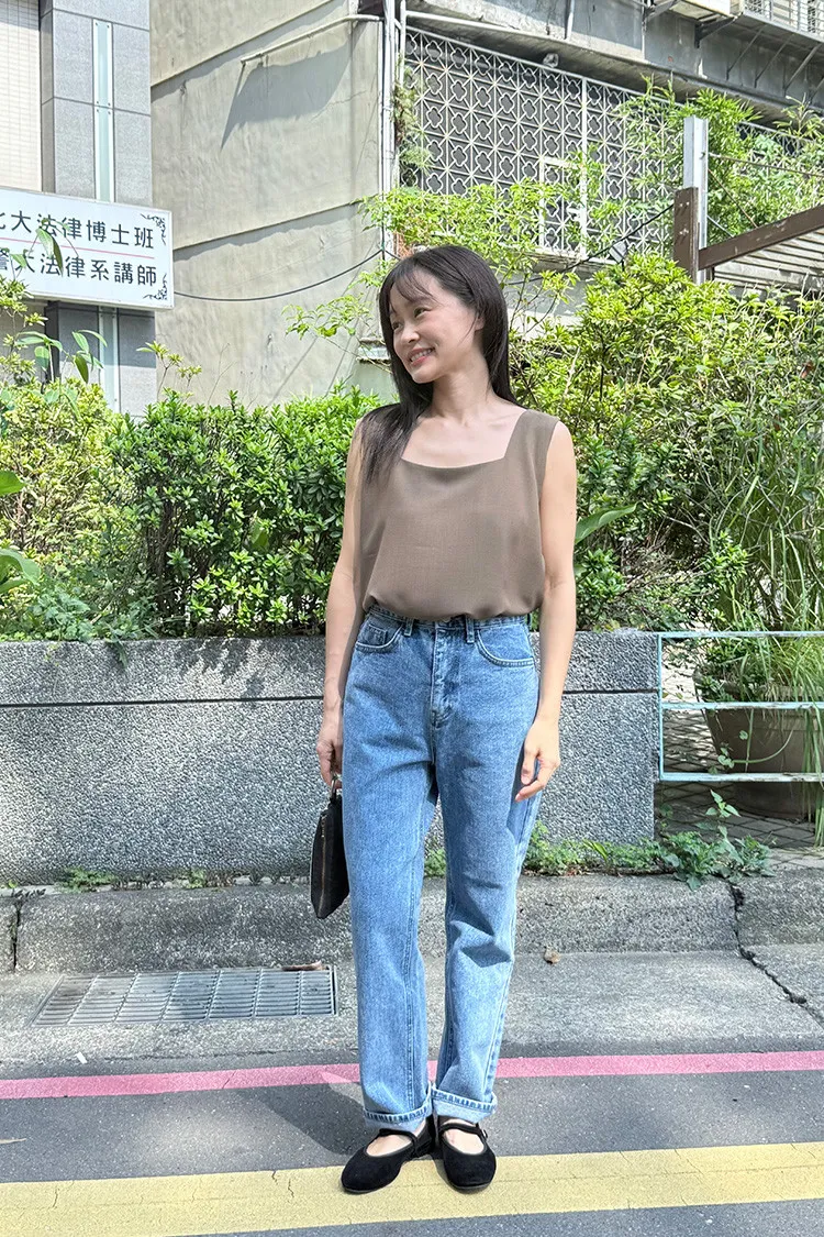 [特點] 滑料雪紡面料,修飾的ㄇ字領口剪裁。