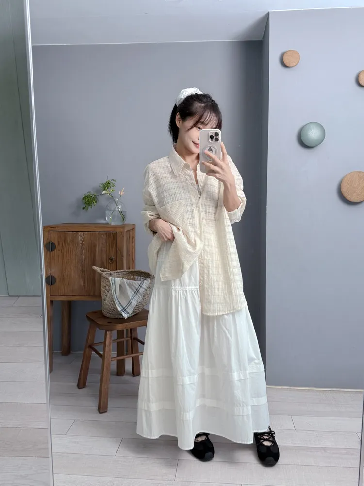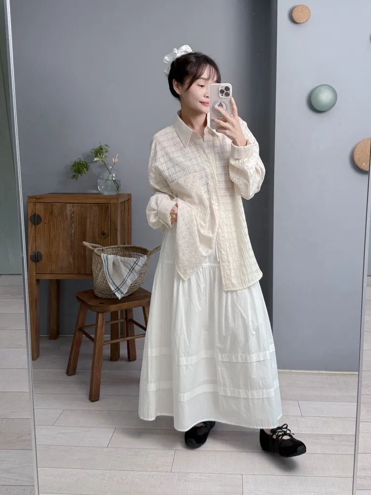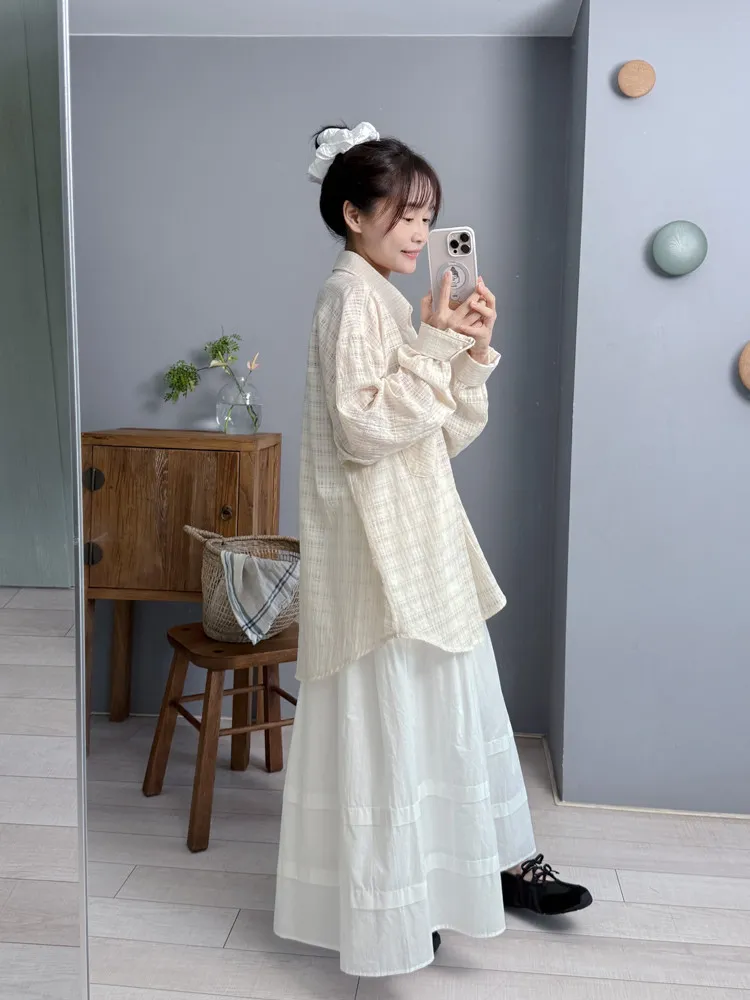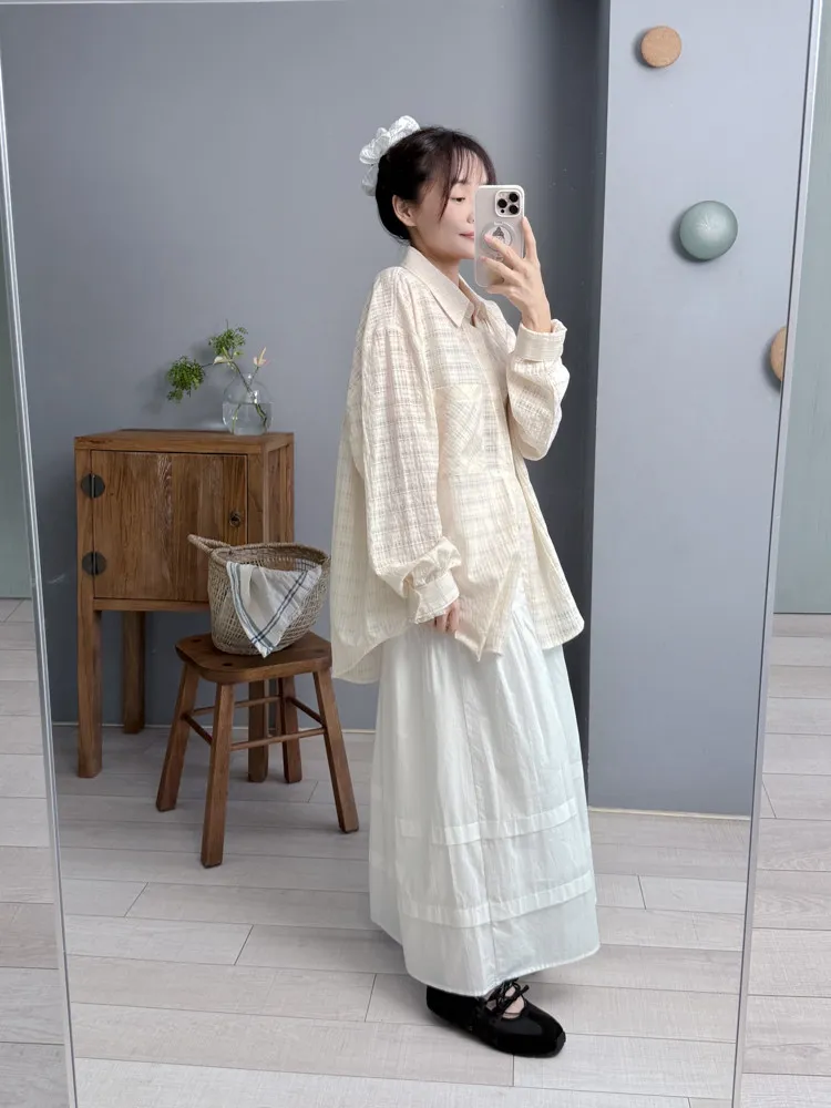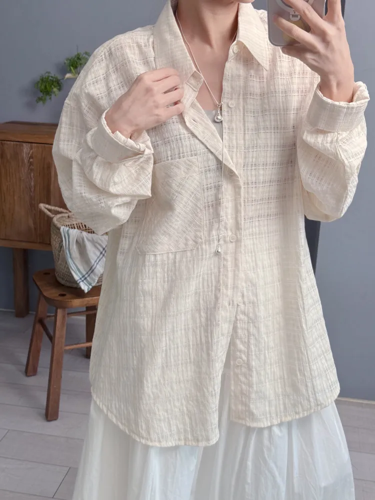 透肌奶油格紋襯衫