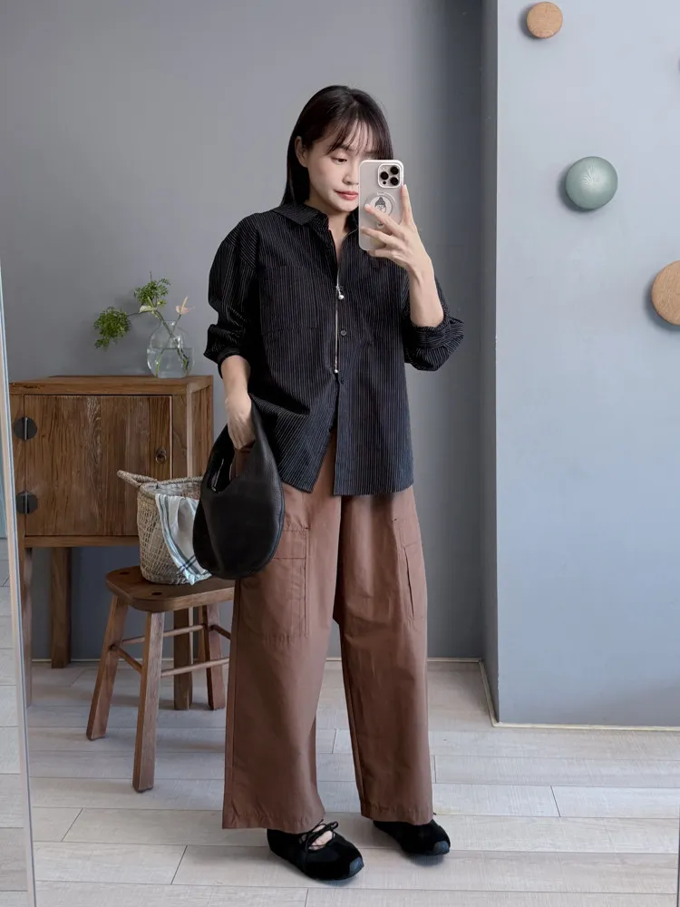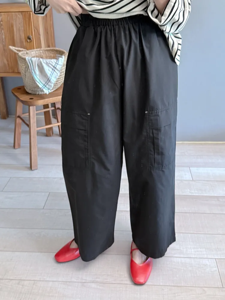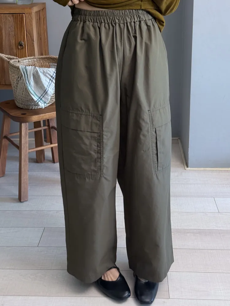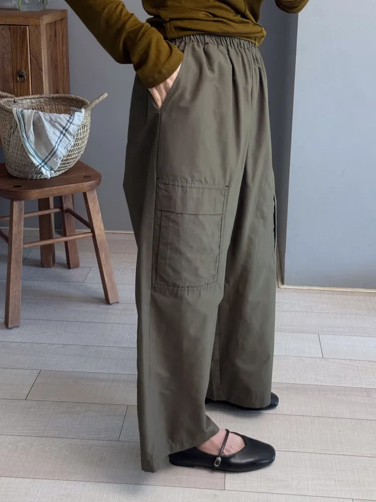 [特點] 舒適的滑料手感,鬆緊彈性腰圍不勒肚,微上寬下窄版型,多口袋造型。