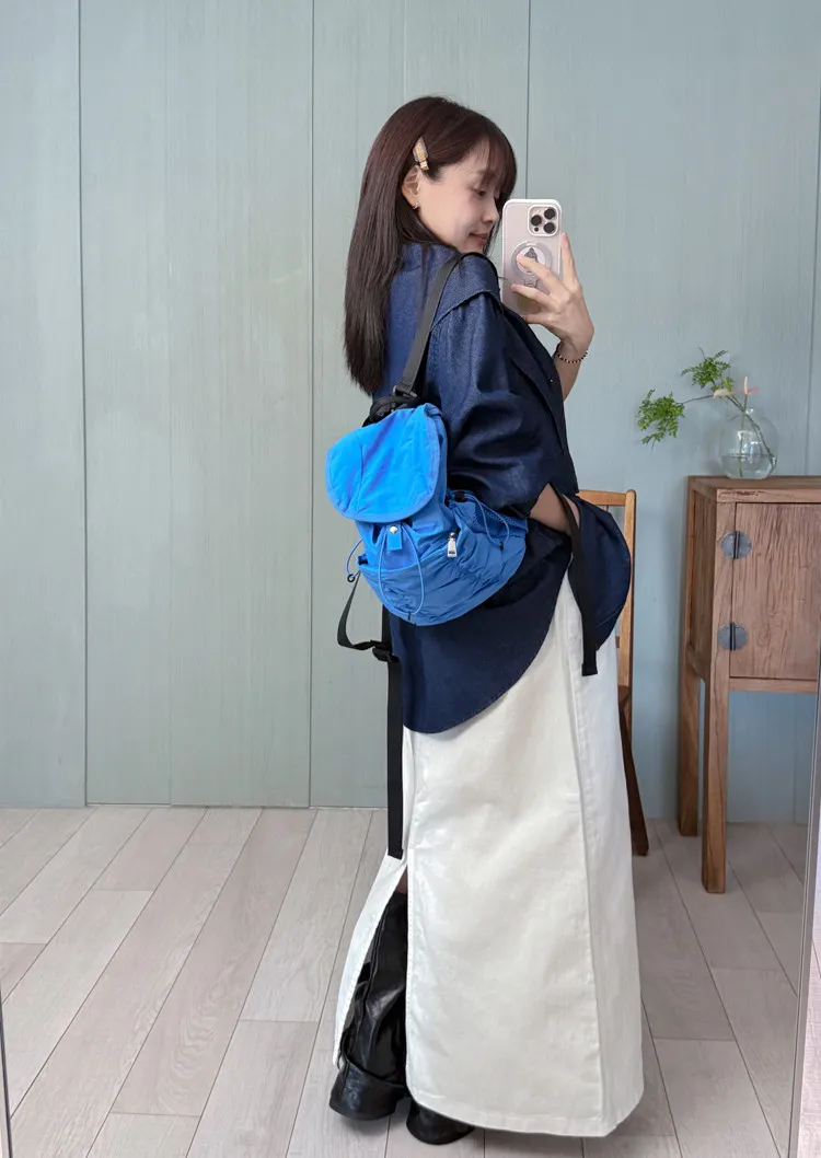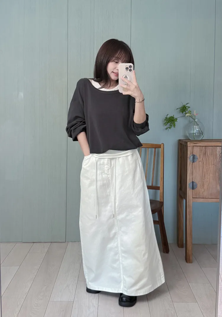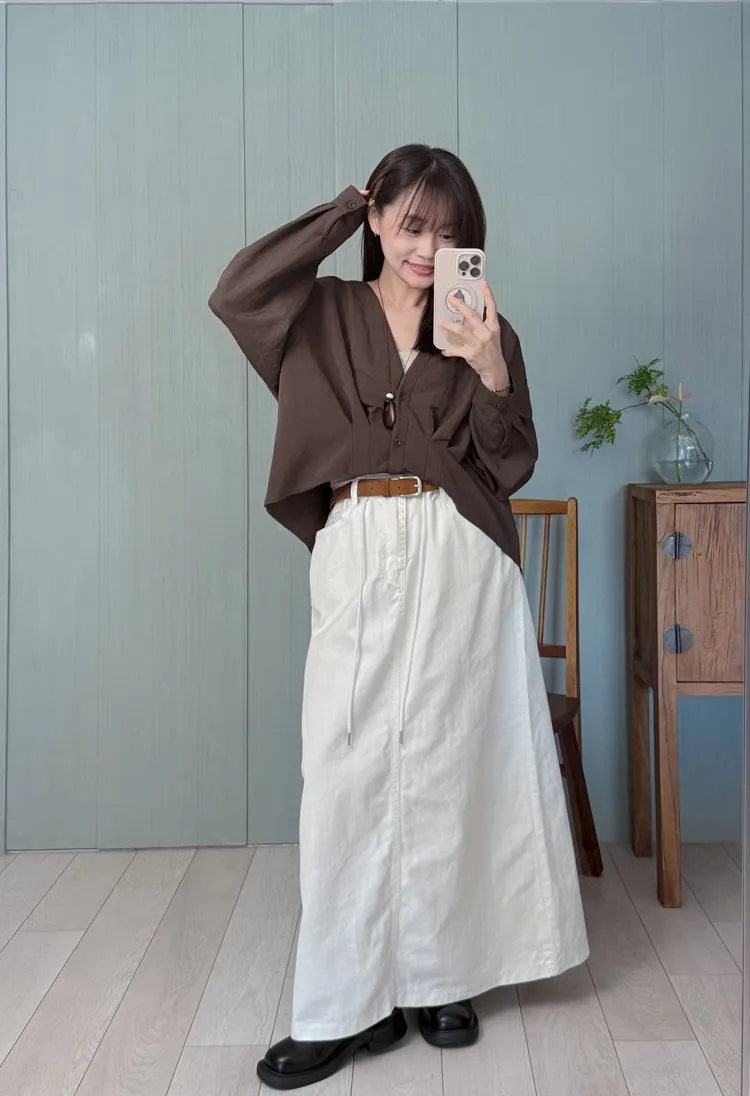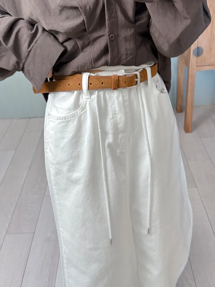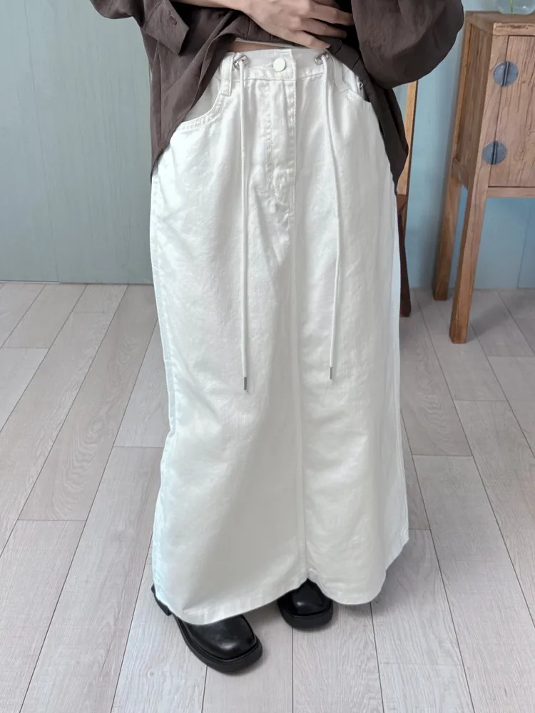 純白抽繩牛仔棉裙