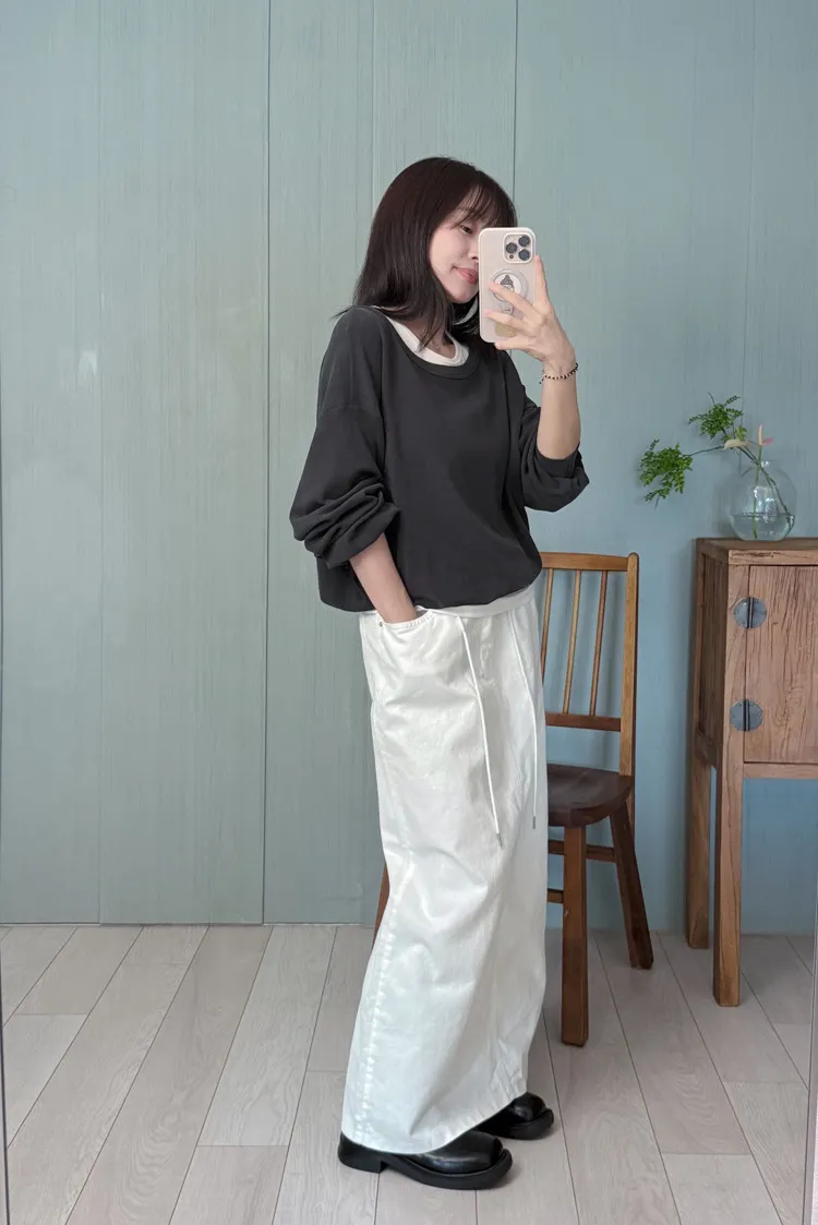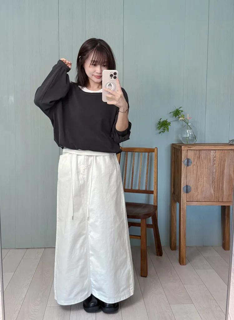 [特點] 腰部鬆緊可以利用抽繩調整,A字修飾版型,面料不會太厚重四季可以穿。