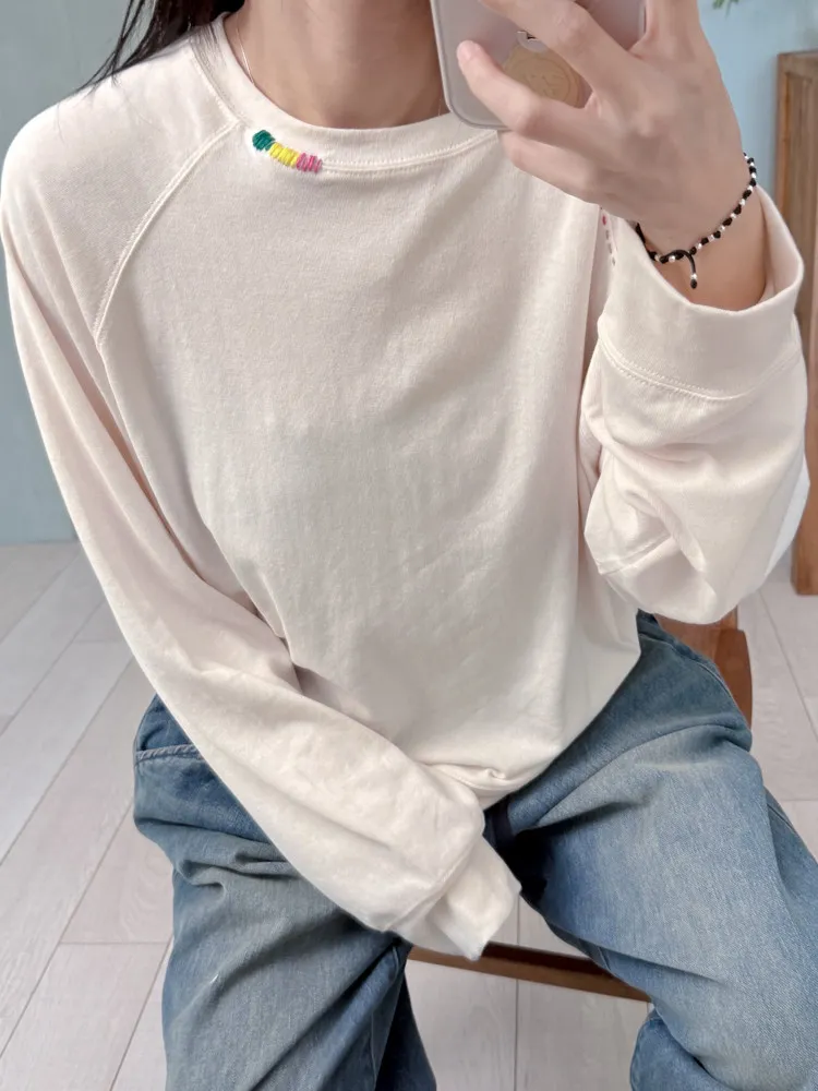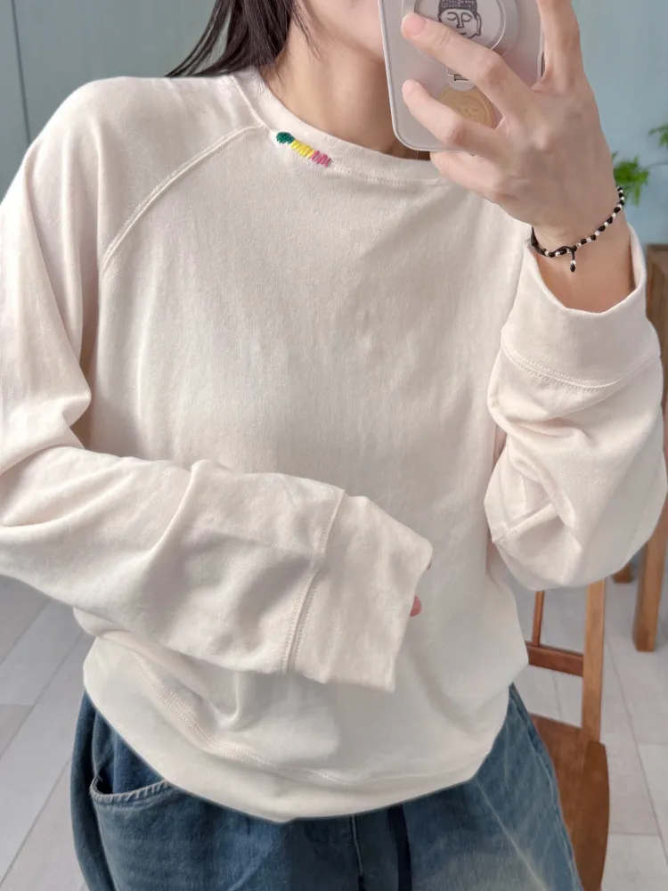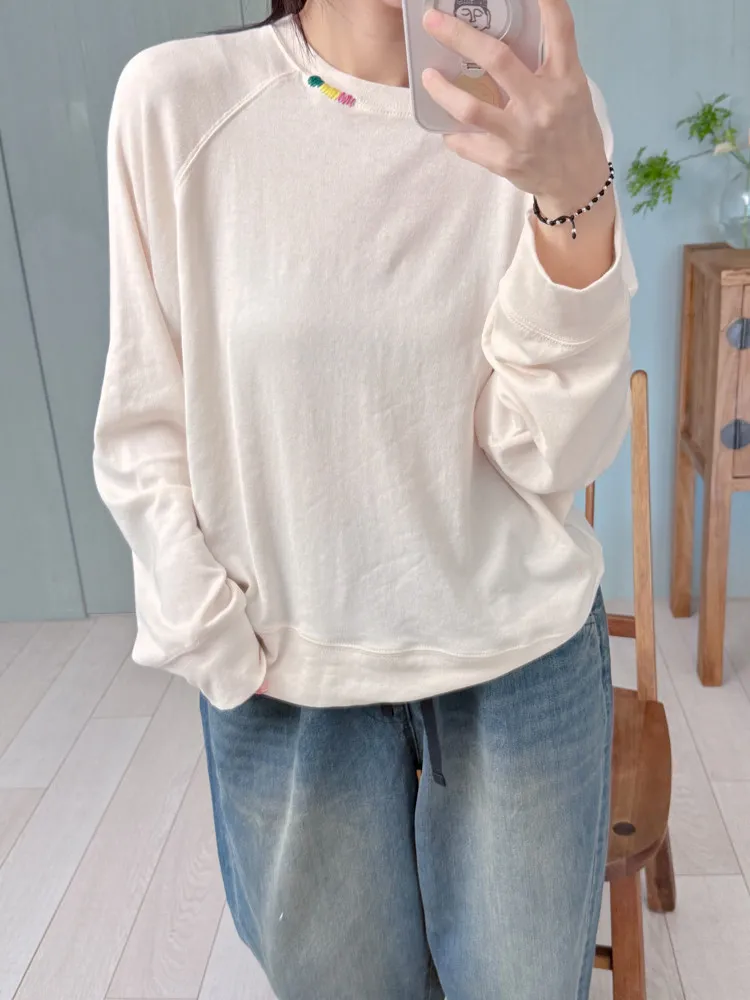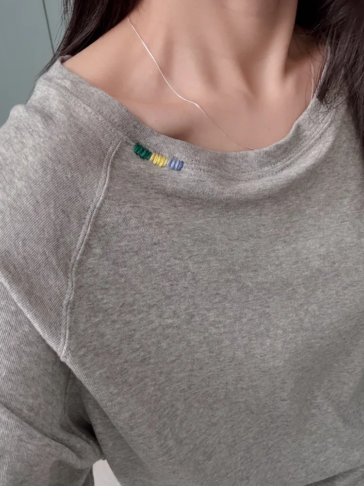 刺繡領邊彈力棉薄衛衣