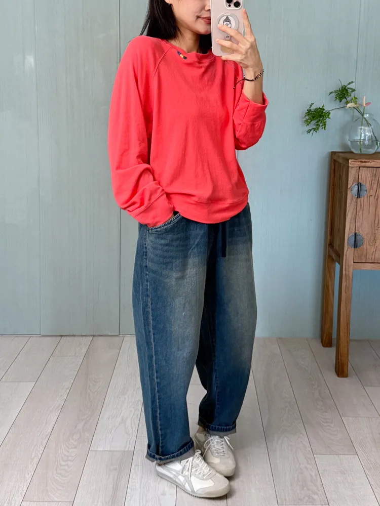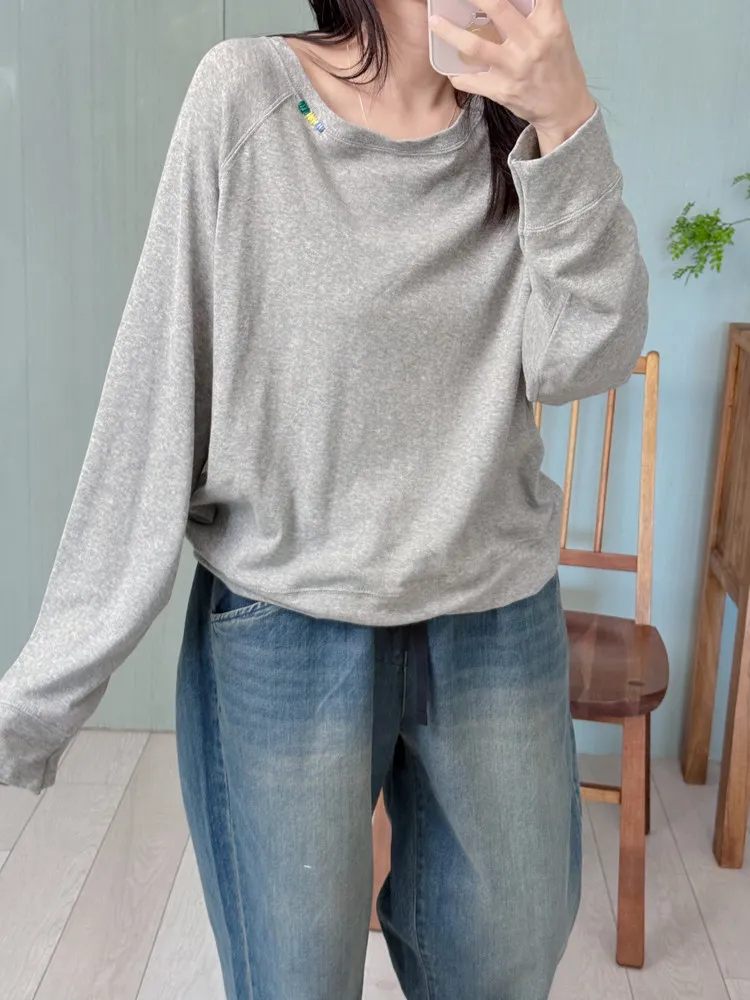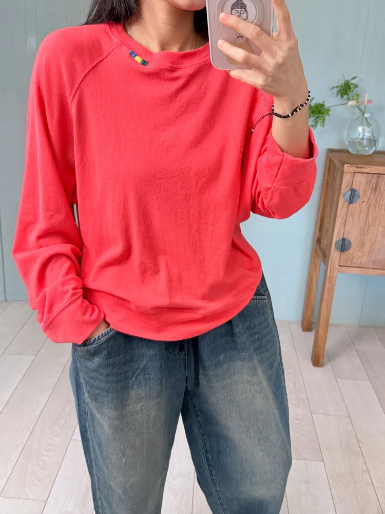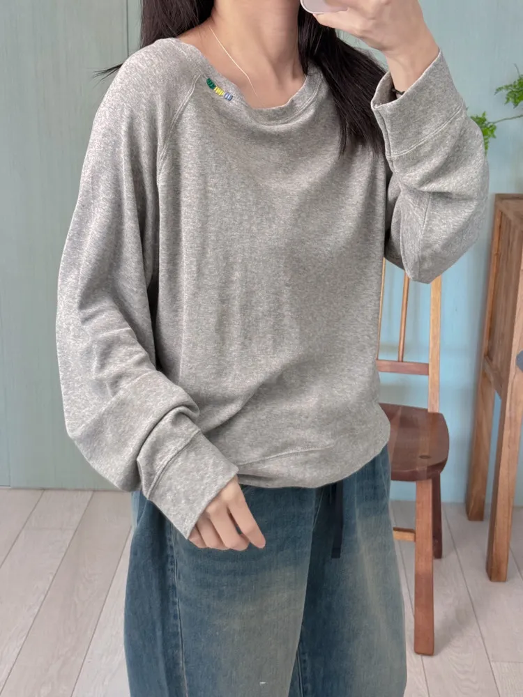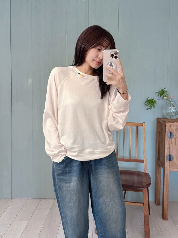 刺繡領邊彈力棉薄衛衣