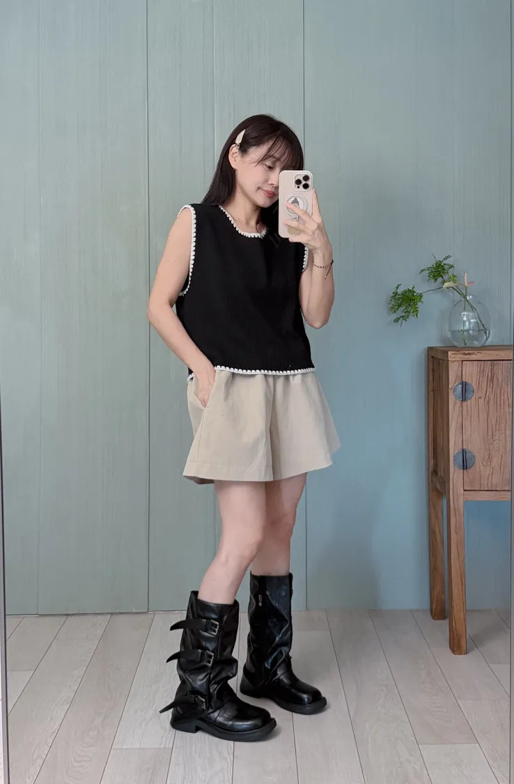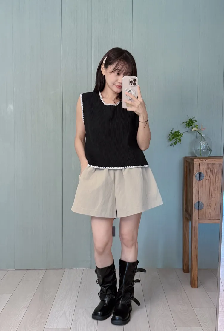 [特點] 軟料針織手感,有彈性,滾邊毛線邊造型。
