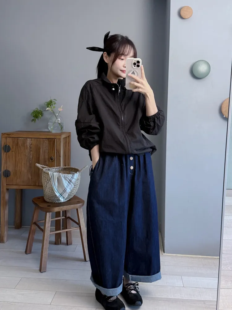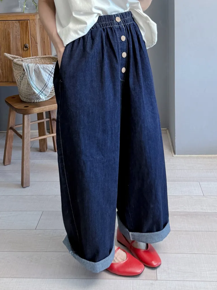 [特點] 假褲頭圓扣設計,鬆緊彈性腰圍,男友褲版型,