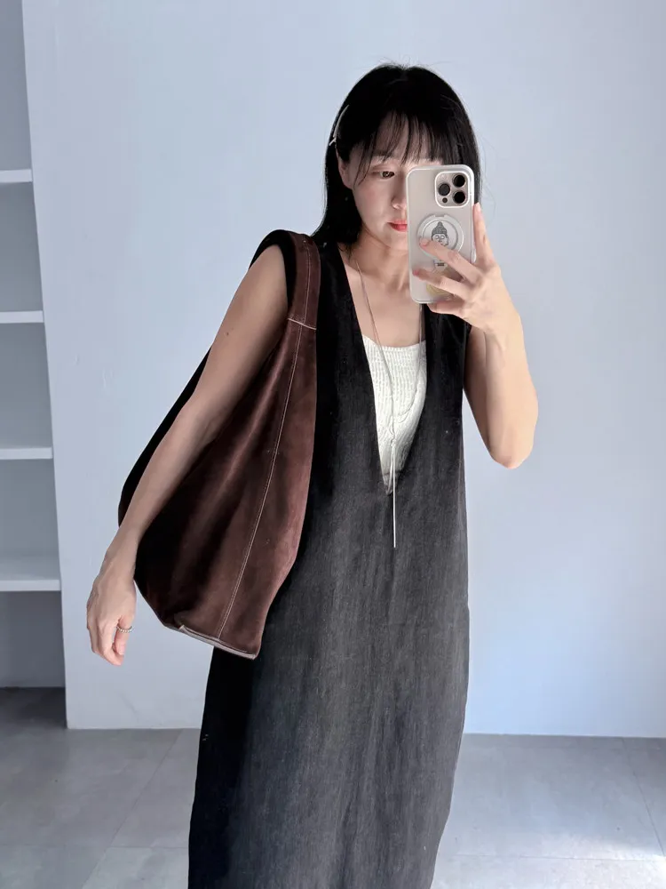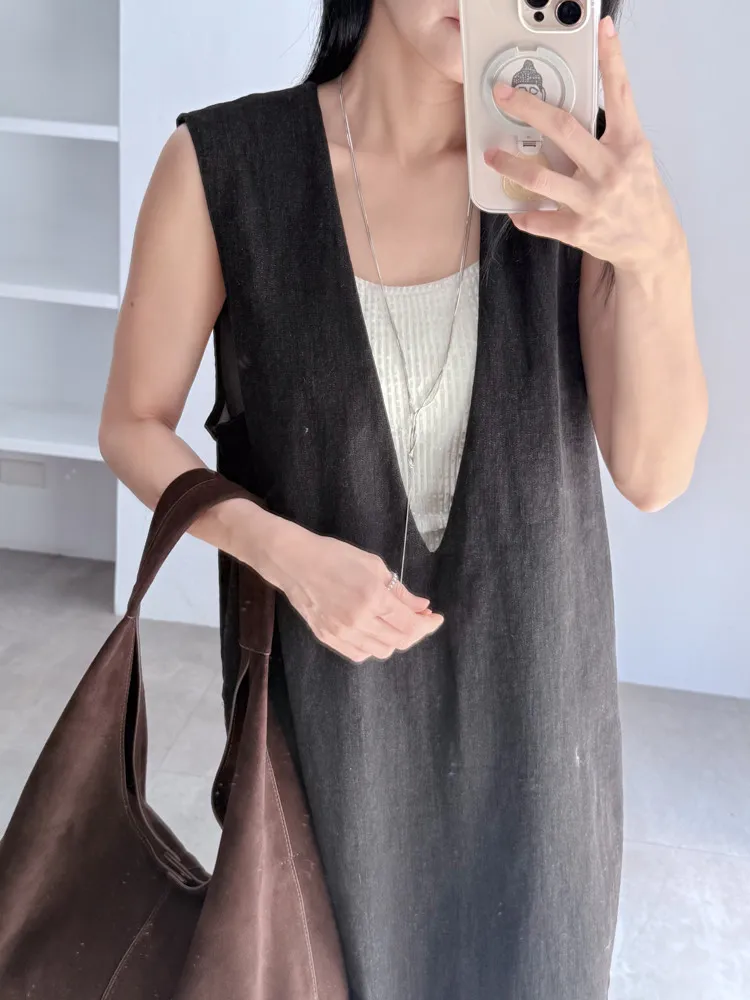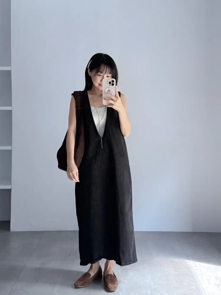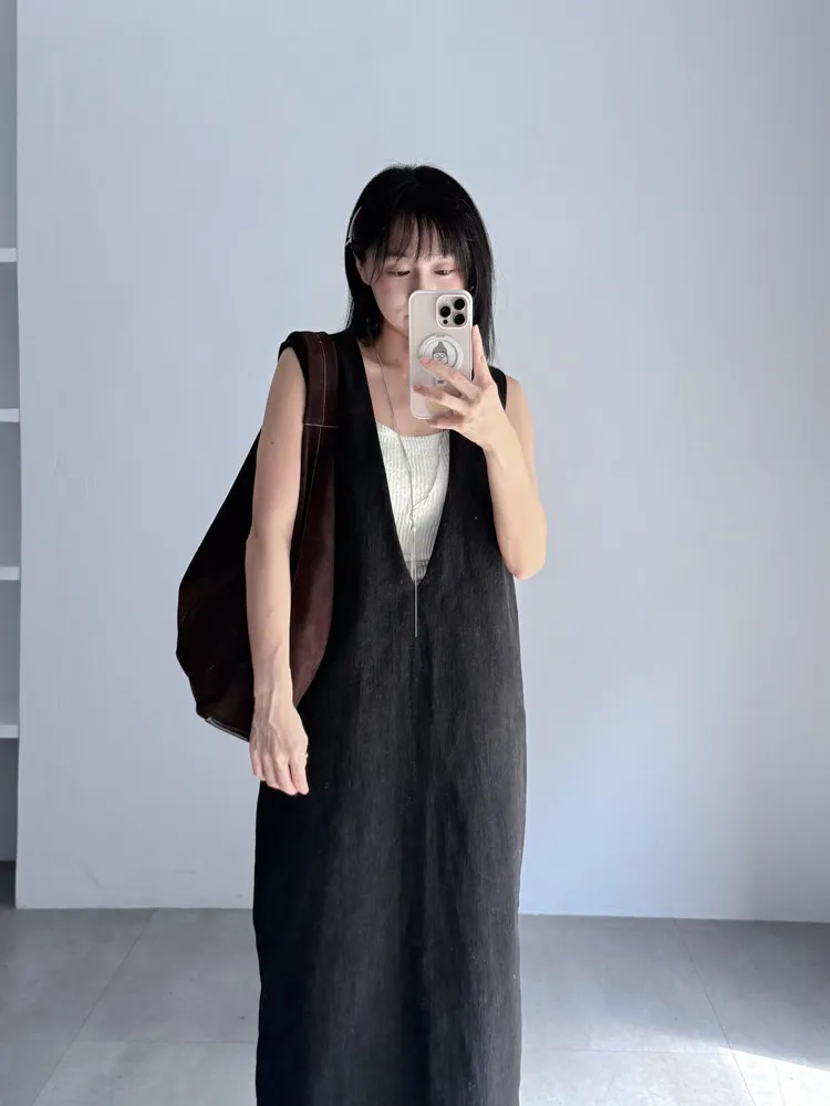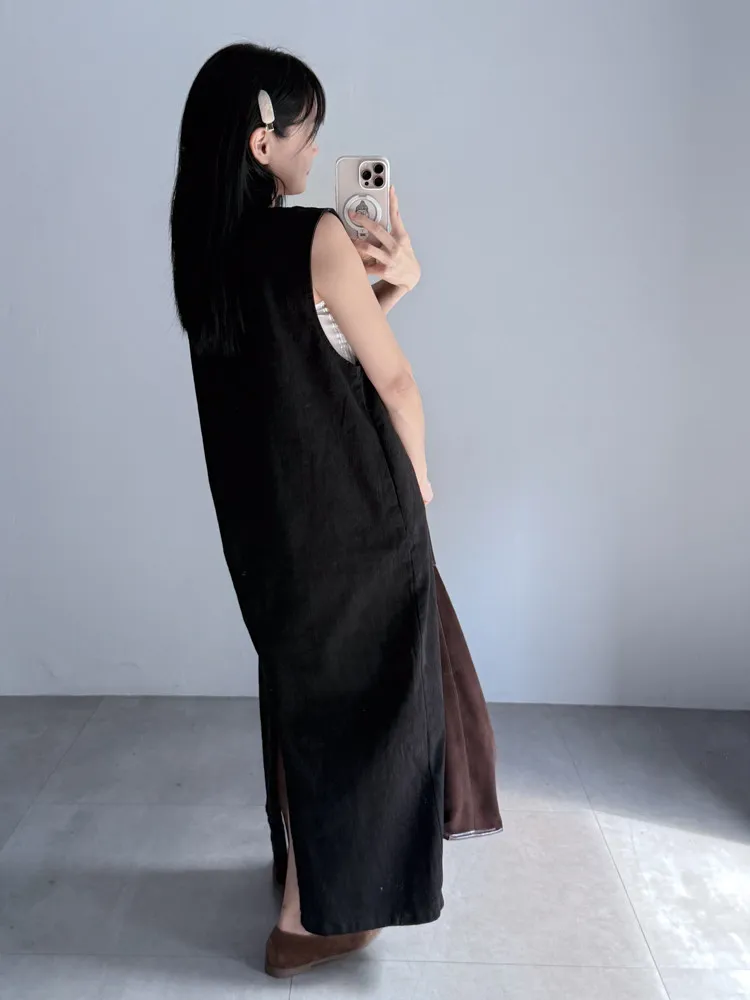 [特點] 前開V設計,丹寧帶有彈性的面料,兩側有口袋,後開衩剪裁。
