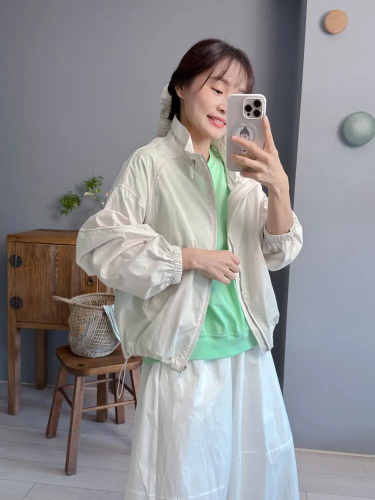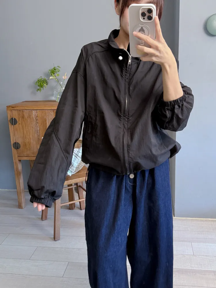 領口及下擺兩側下方有壓扣可以抽繩造型,袖口縮口鬆緊。