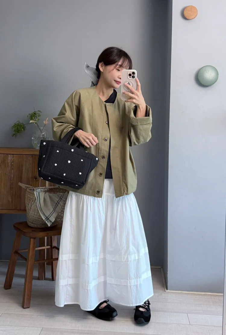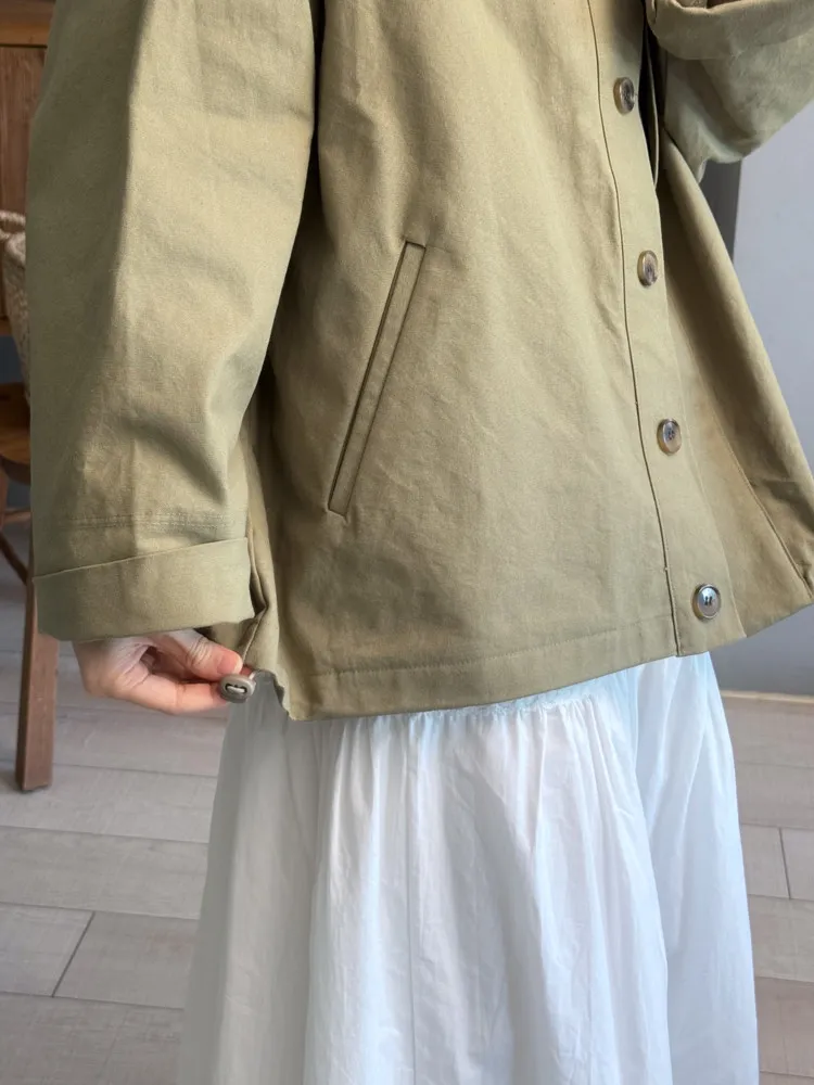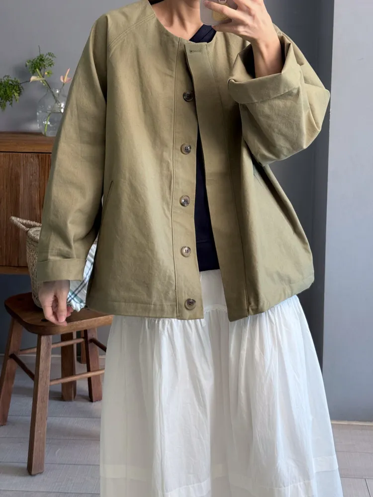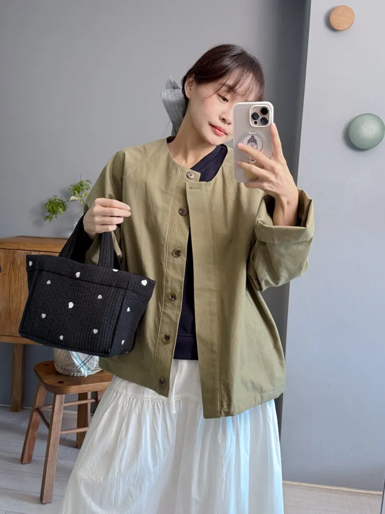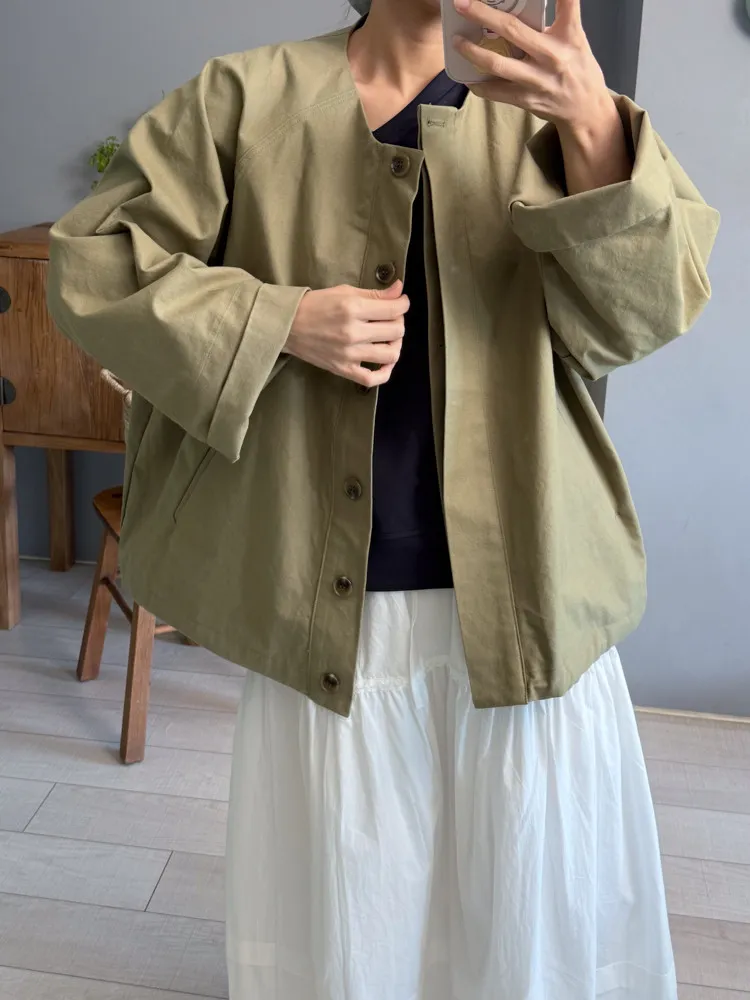[特點] 無領落肩設計,挺料棉手感,隱藏式排釦造型,