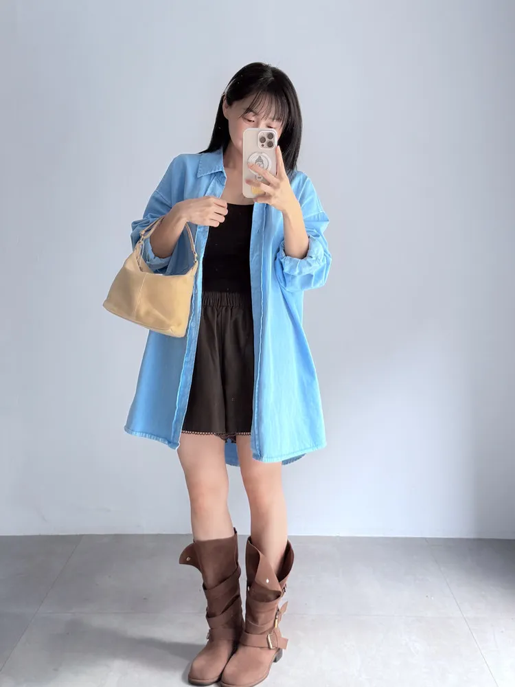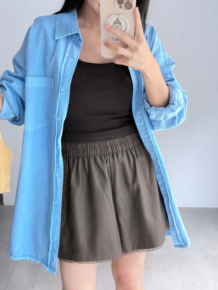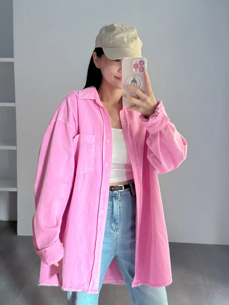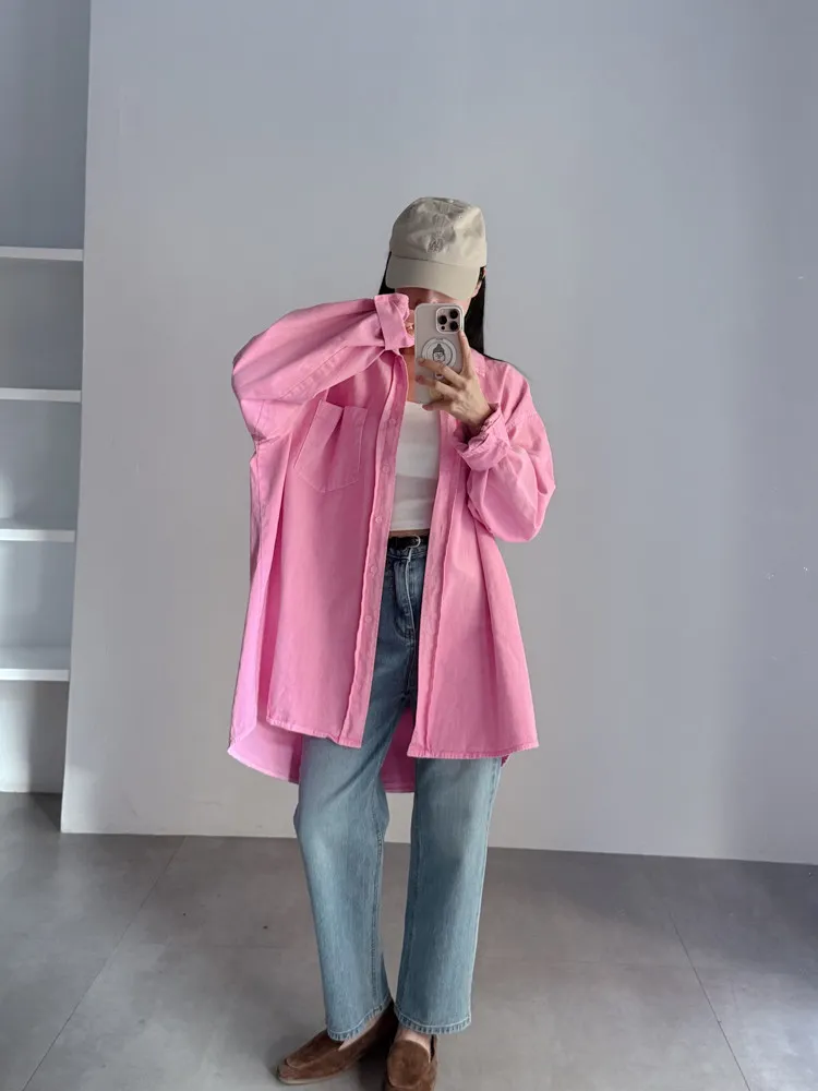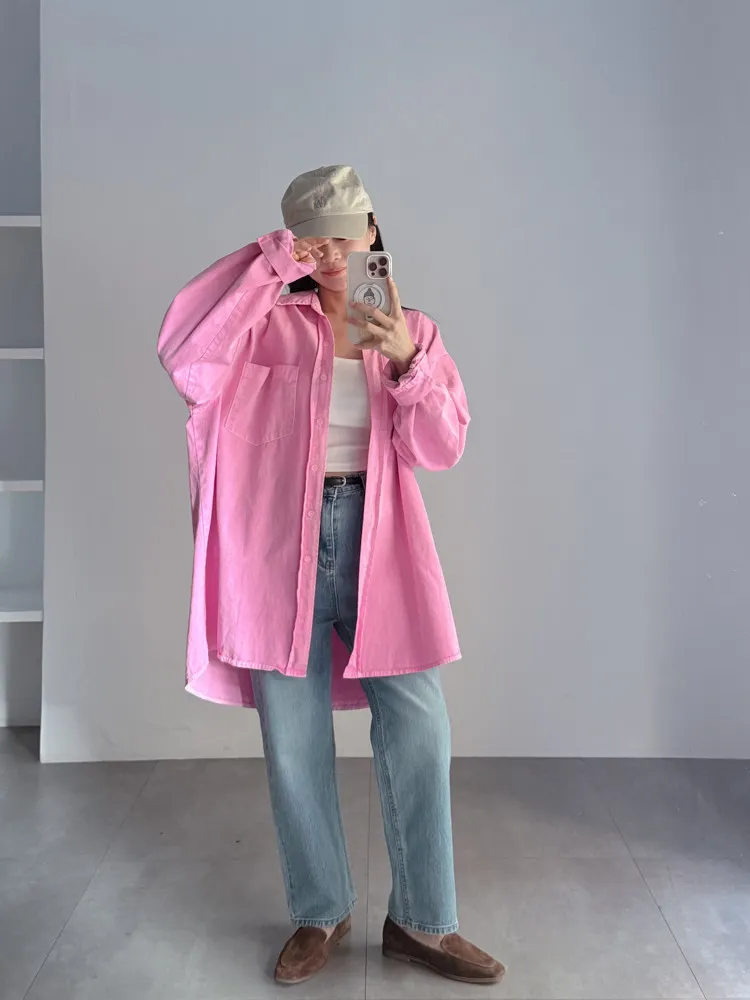 [特點] 挺料水洗棉,單口袋造型,前短後長剪裁,oversize版型。