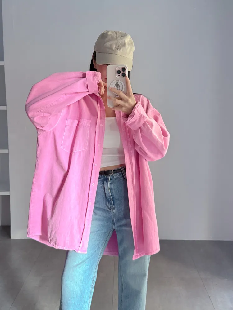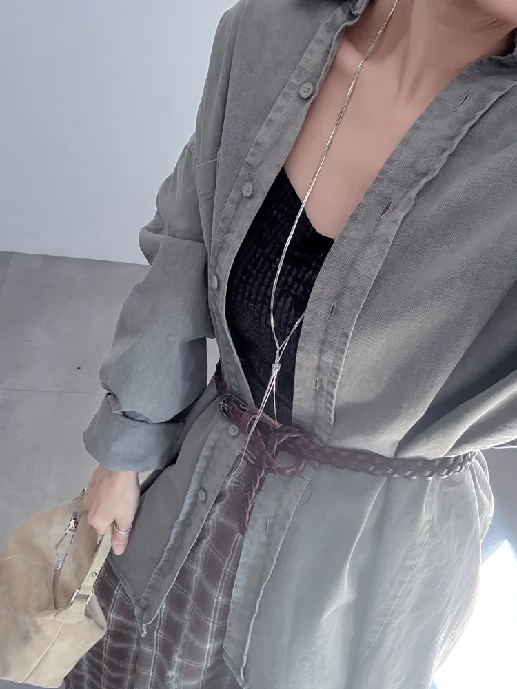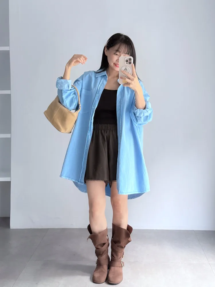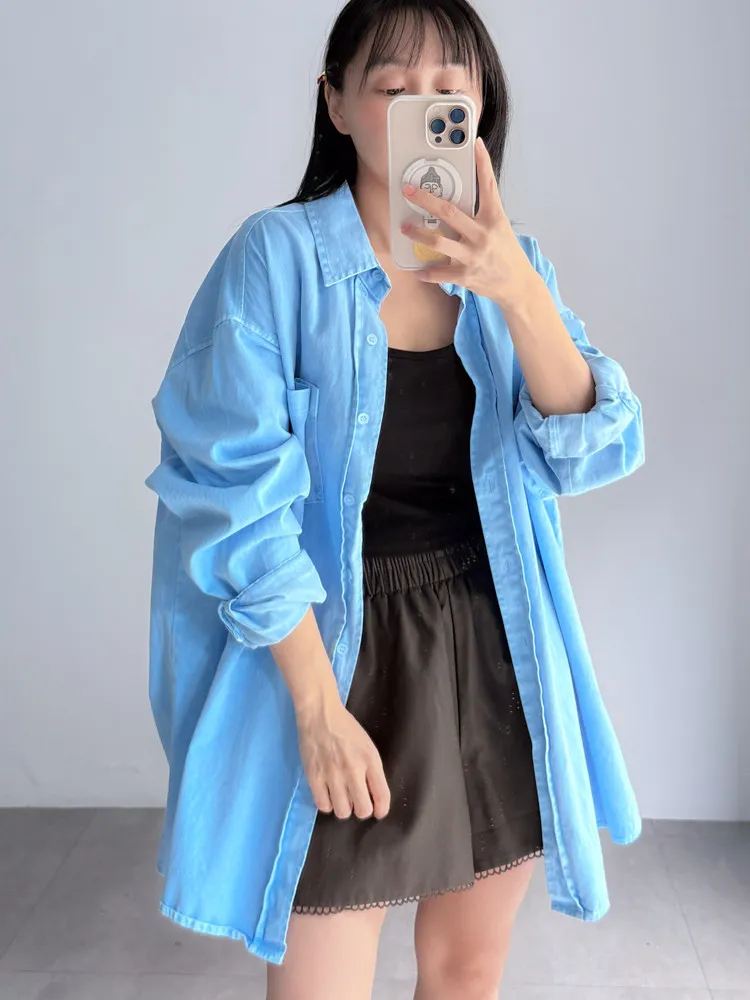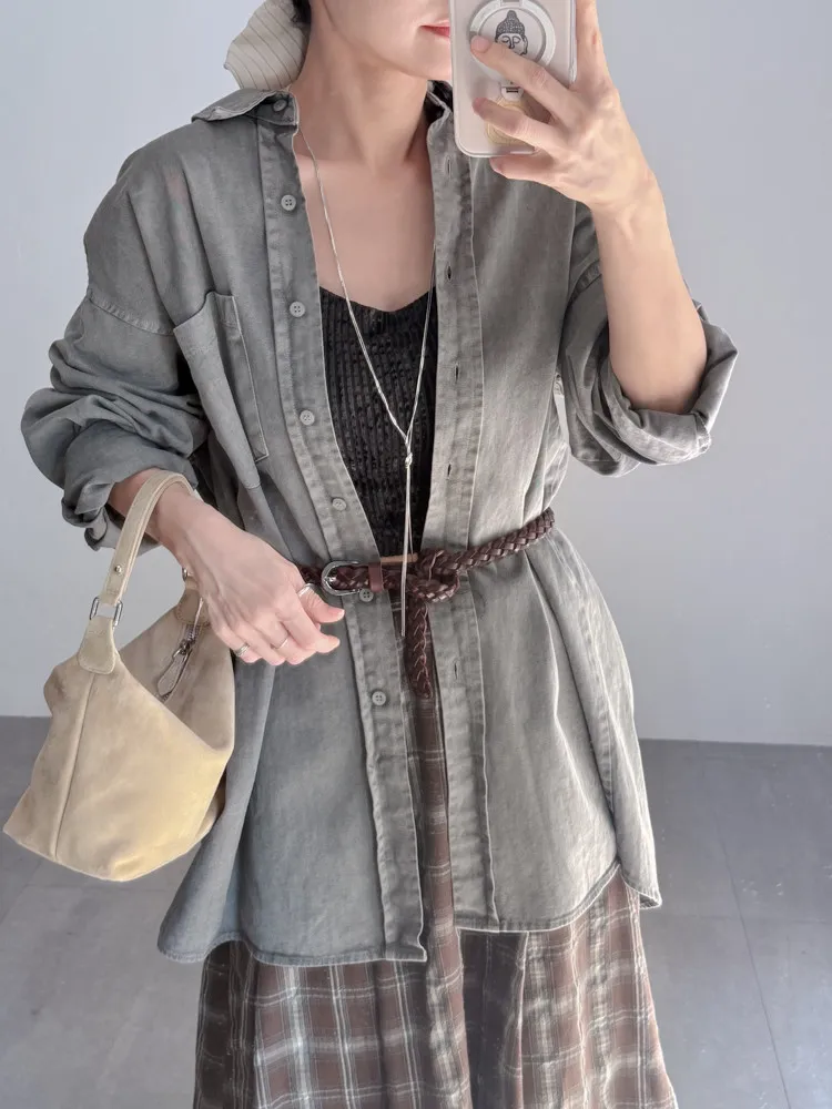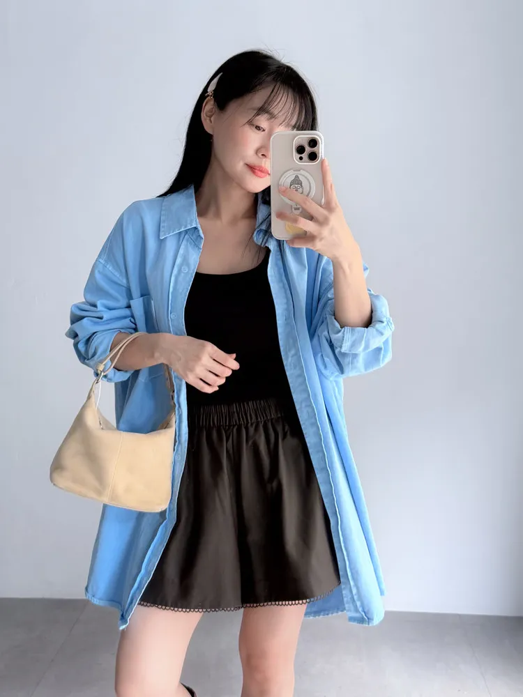 [特點] 挺料水洗棉,單口袋造型,前短後長剪裁,oversize版型。