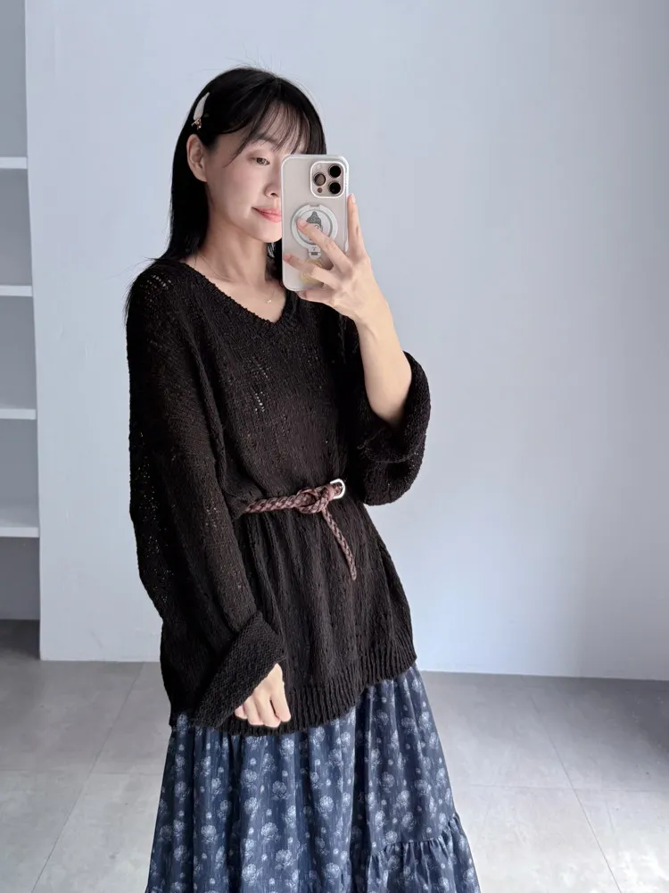 [特點] V領+落肩設計,軟料舒適針織不刺,兩側開衩剪裁。