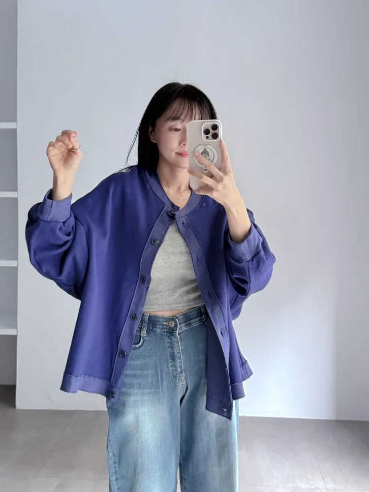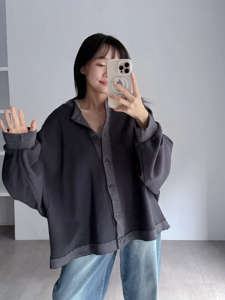 [特點] 落肩寬袖剪裁,兩種布料拼接設計,布料帶點Q彈觸感,
