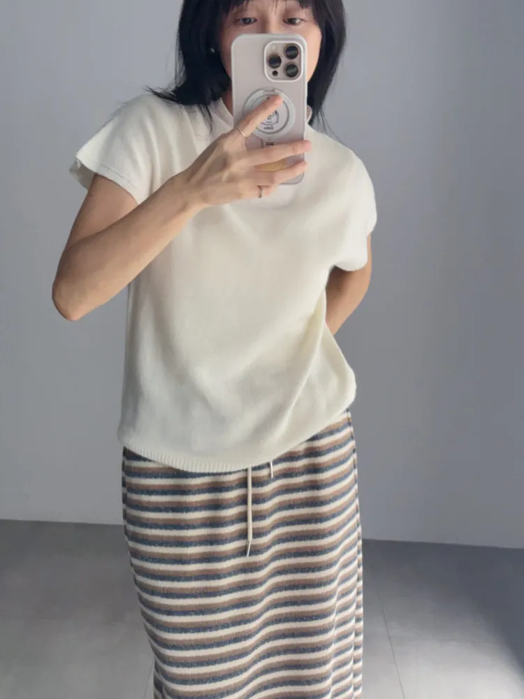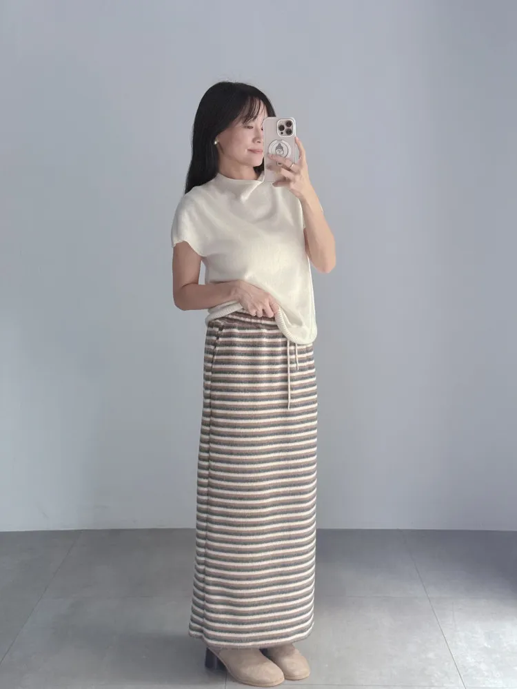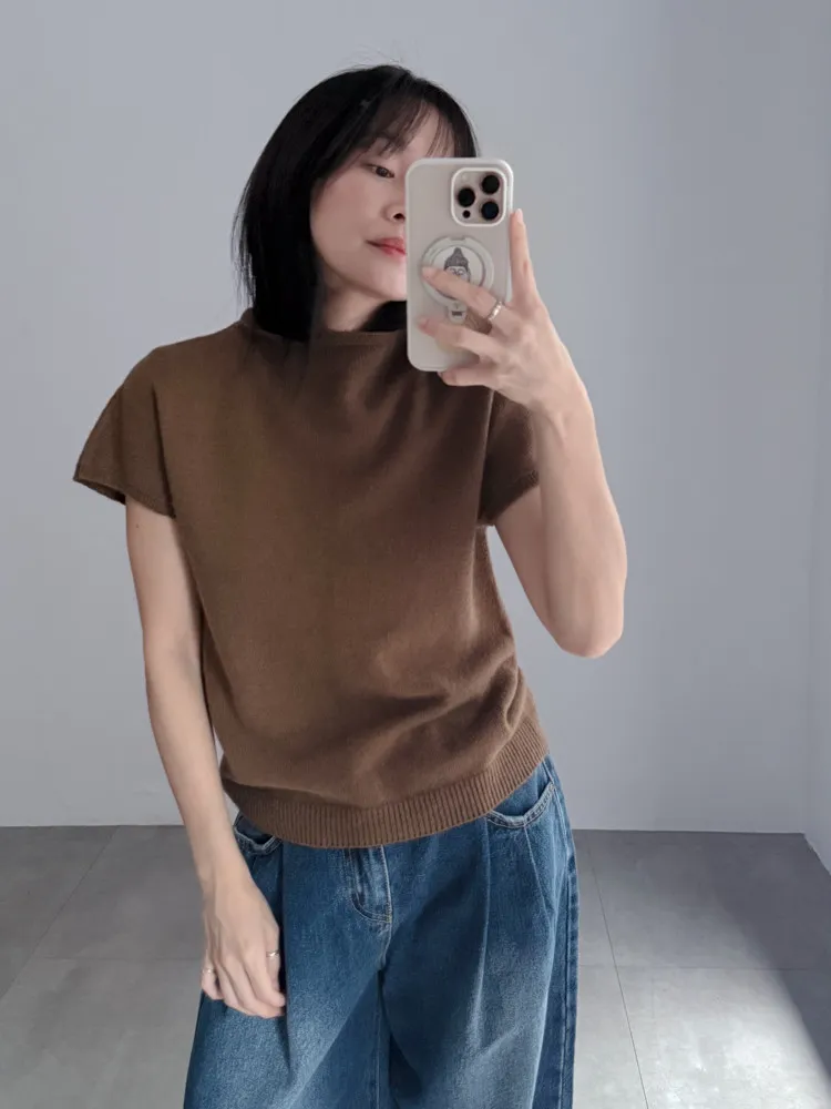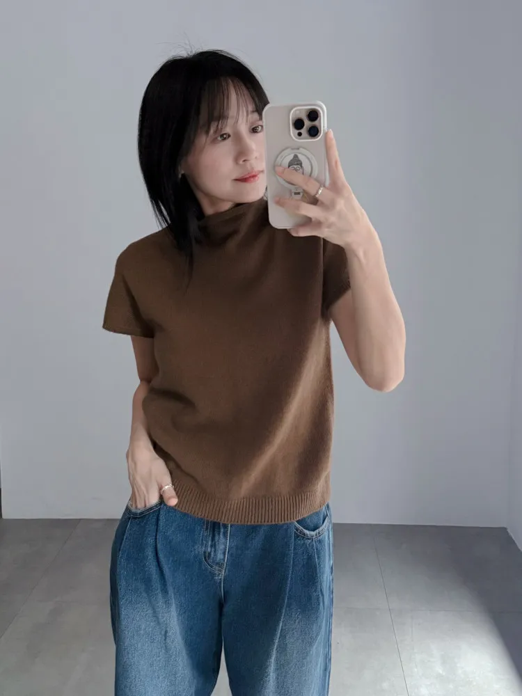 [特點] 舒適軟毛針織,微高領半袖設計,版型順身。