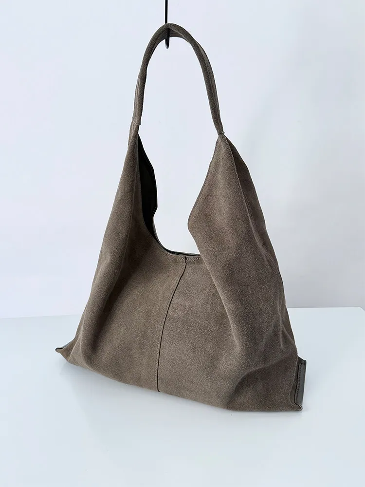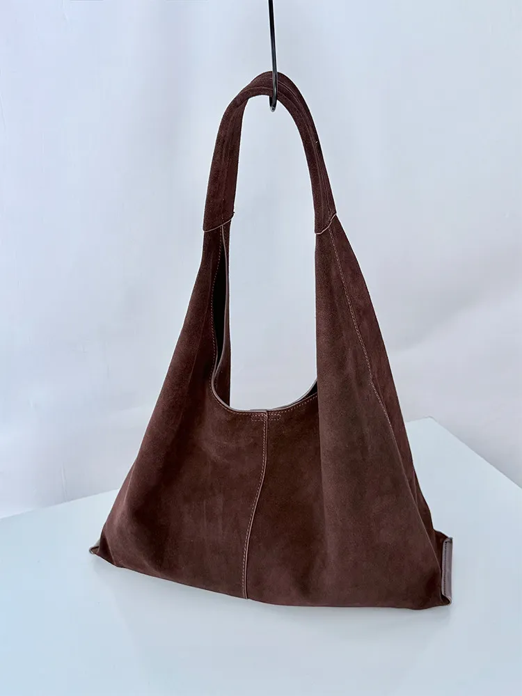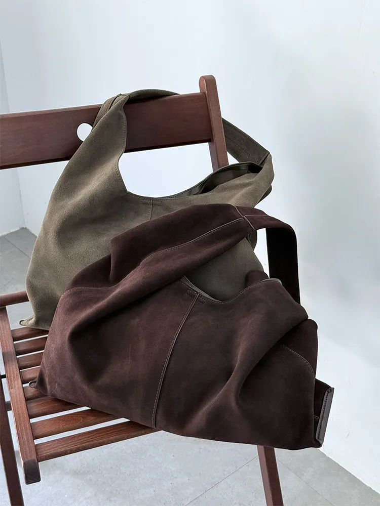 [特點] 舒適寬肩背袋,質感軟料麂皮,底部拼接皮革不易軟塌,
