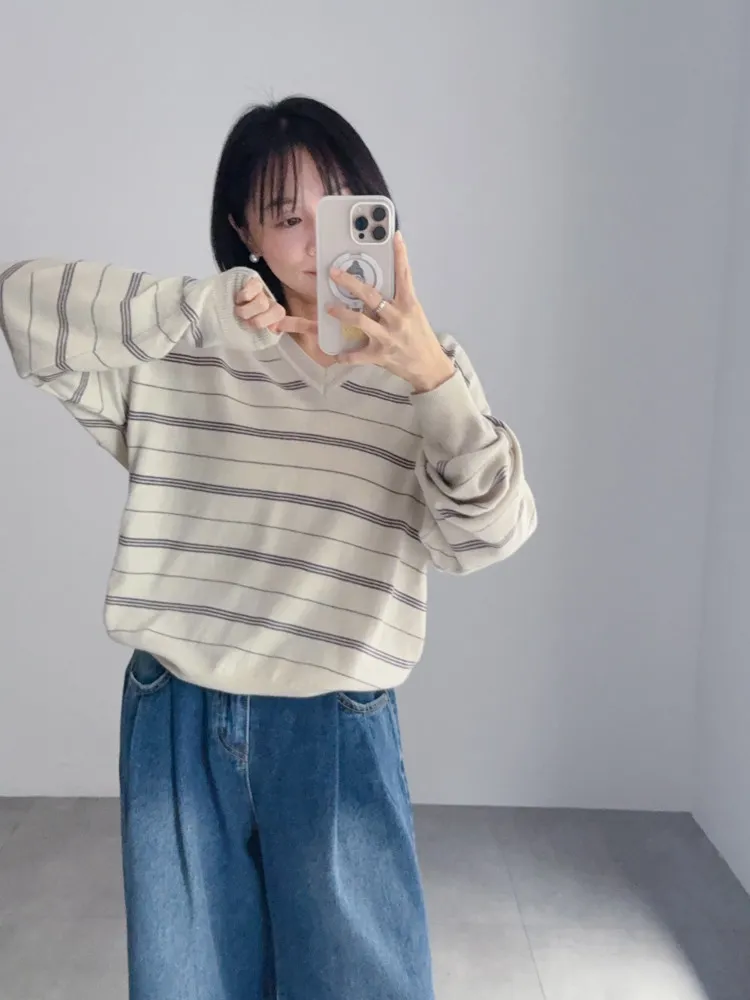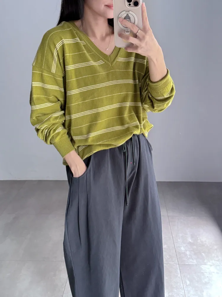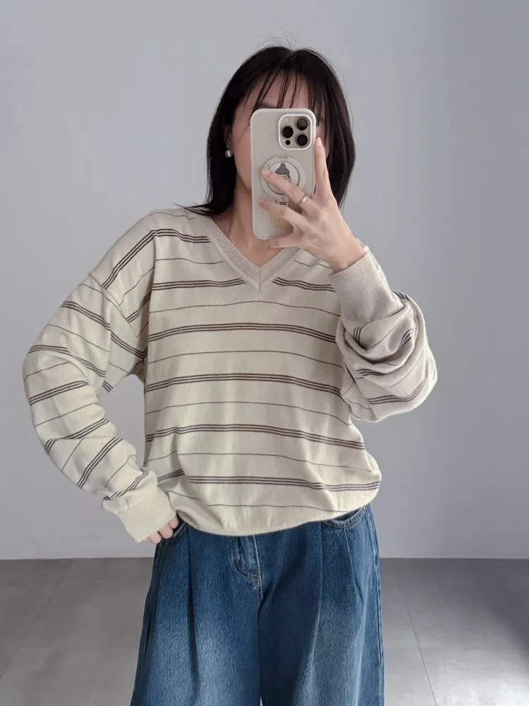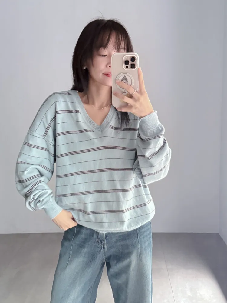 [特點] V領修飾剪裁,柔軟不刺膚的手感,順身版型。