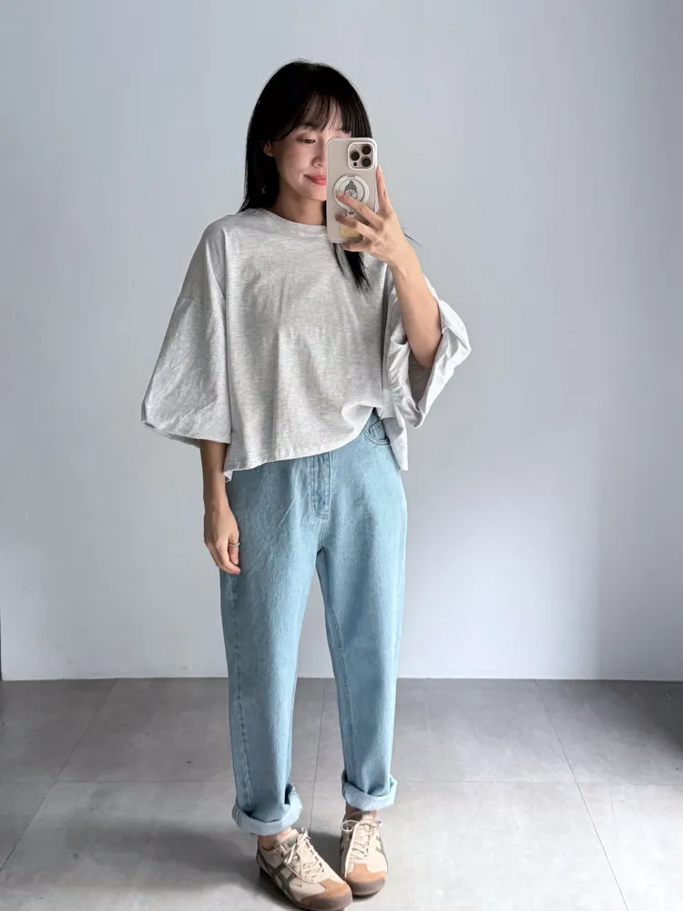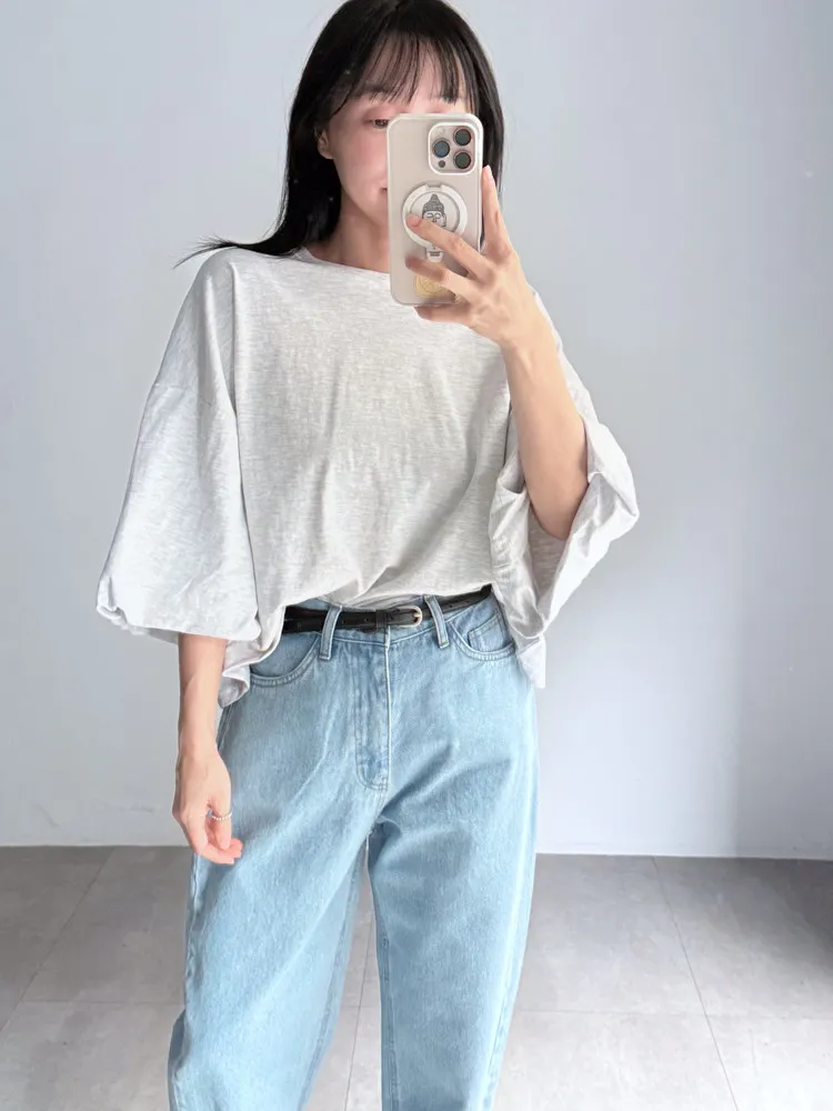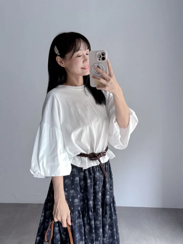 [特點] 薄棉面料,落肩手袖澎感剪裁。