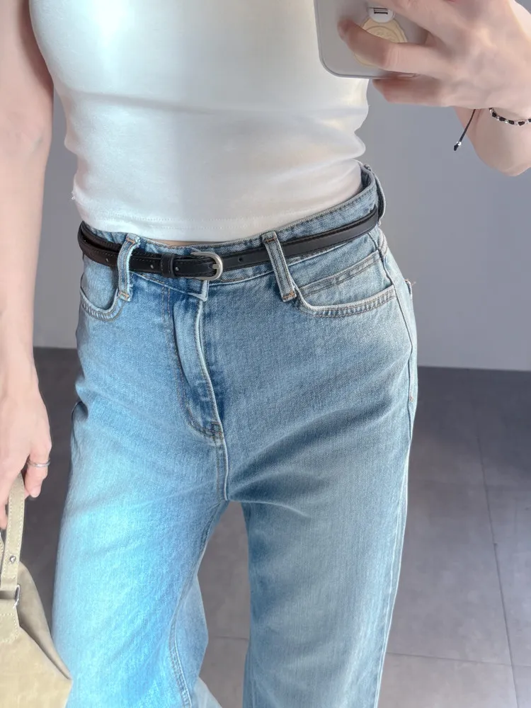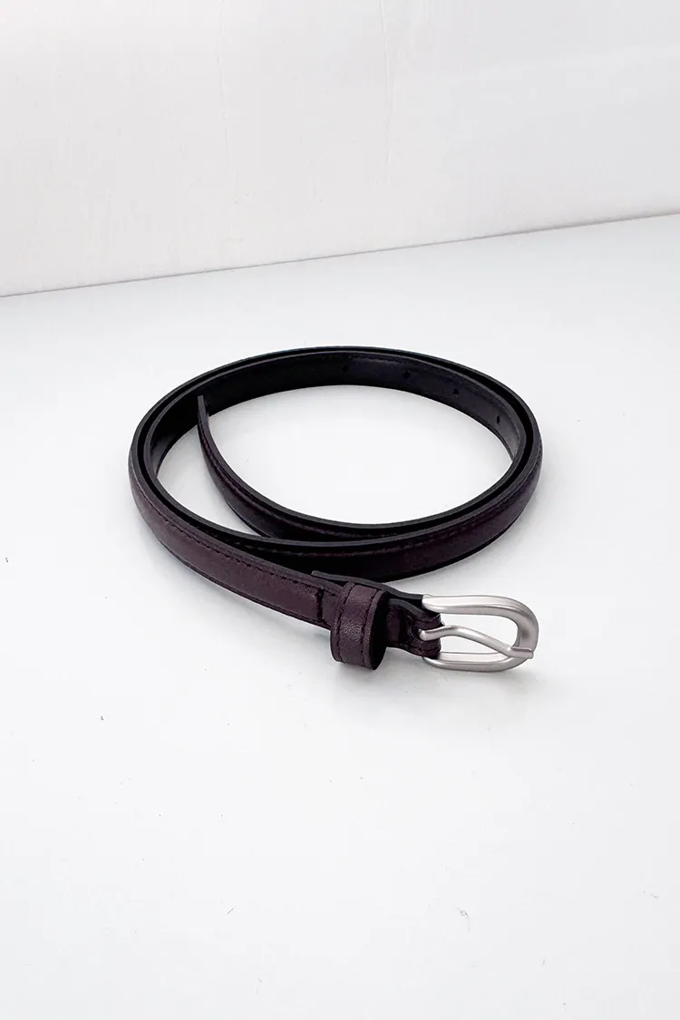 [特點] 真牛皮材質,細版的皮帶設計,有七個孔洞可以調整。