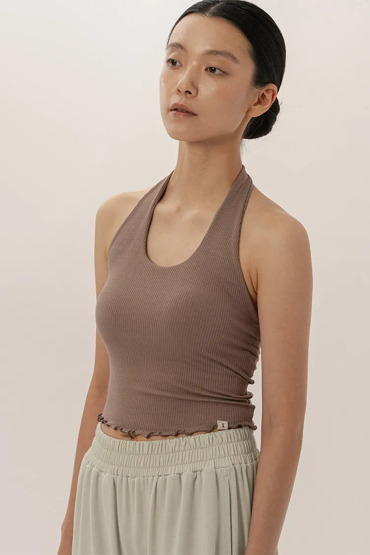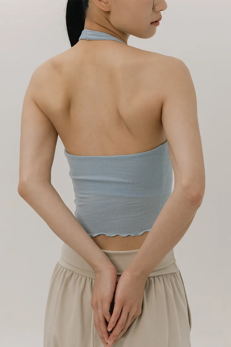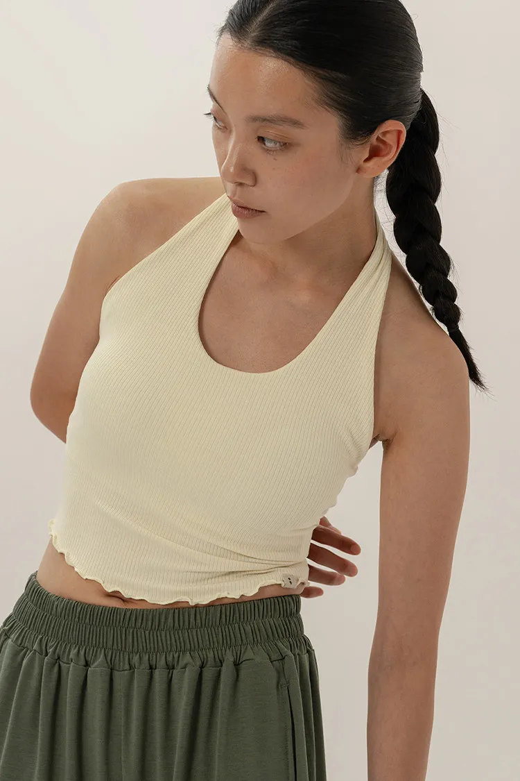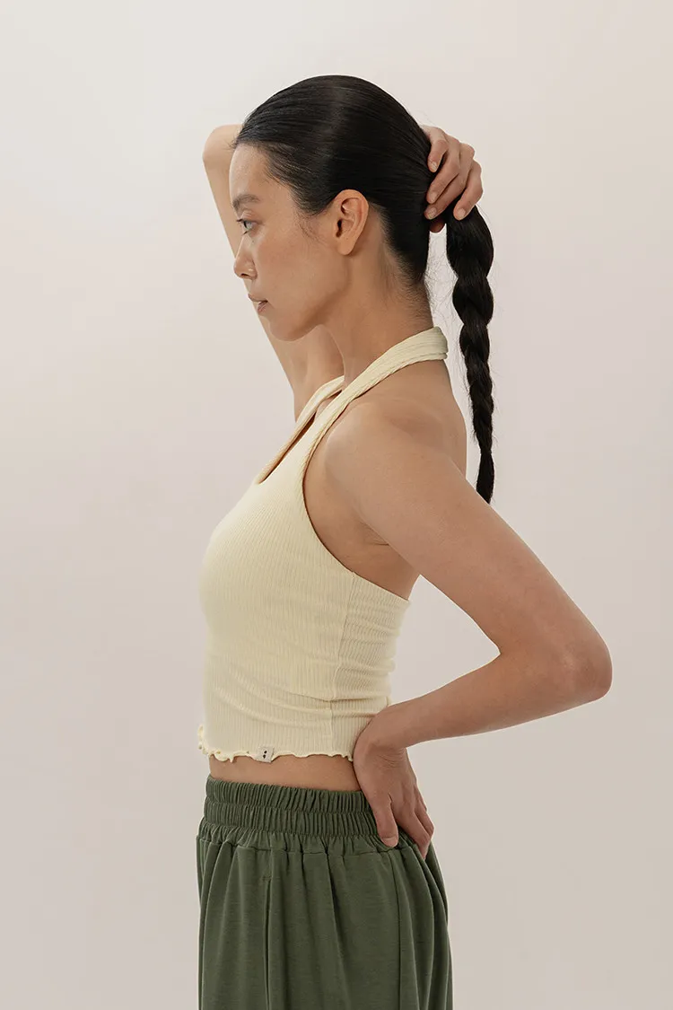 [成份] 人造纖維(Rayon)90%、彈性纖維10%[特點] 採用含有柔軟天絲的面料製作,繞頸設計讓胸部完全不顯露,肩部活動範圍寬廣,自然伸展。*可拆式胸墊*S號胸圍約75cm(適合XS-S) / M號胸圍約85cm(適合約M尺寸)