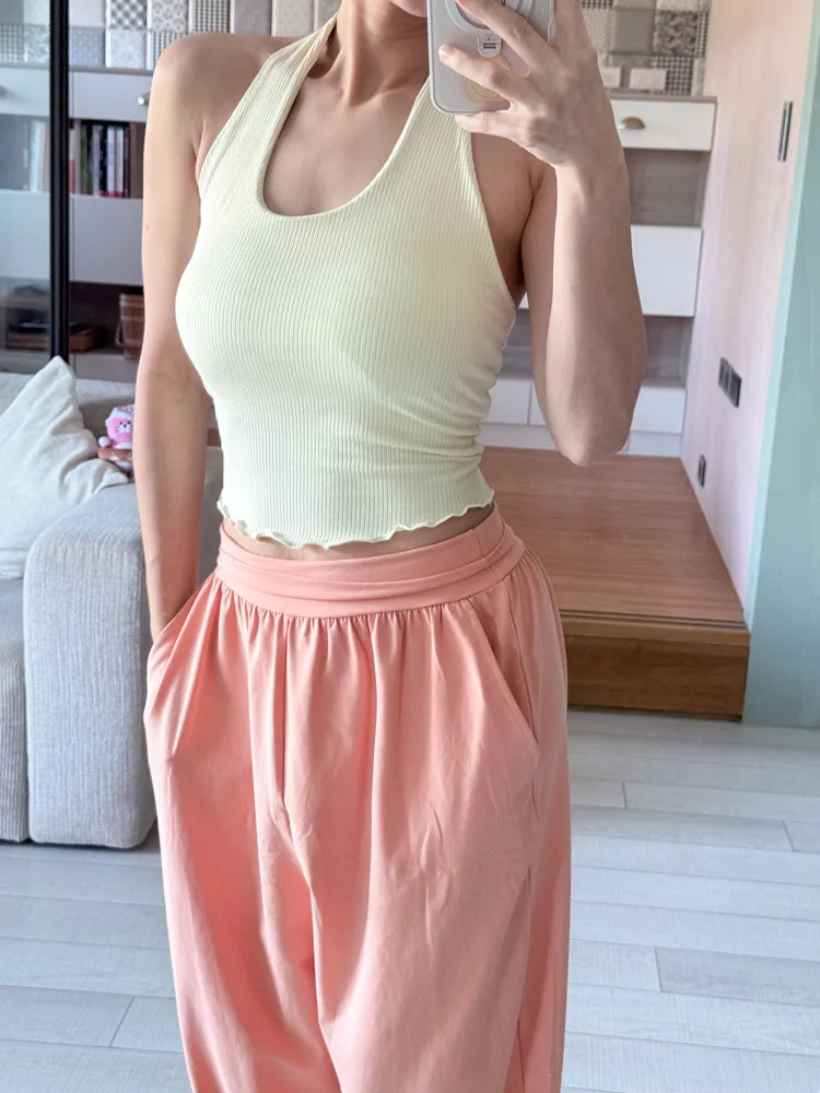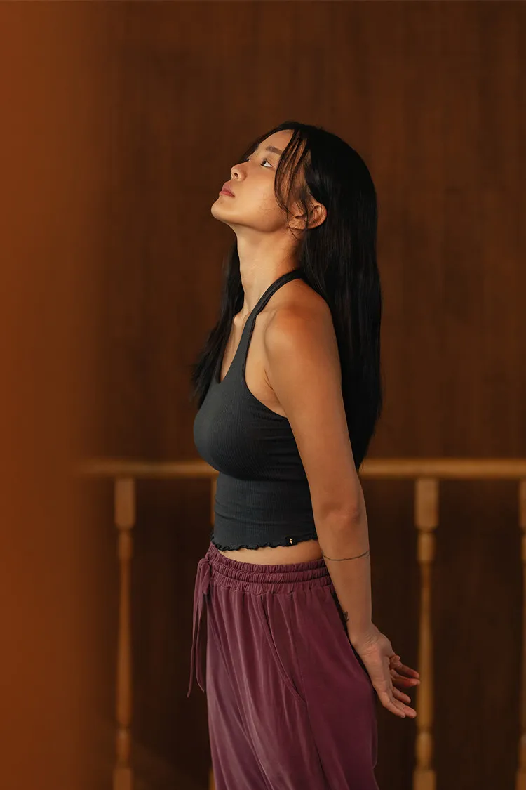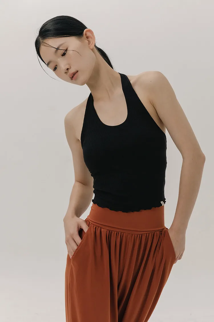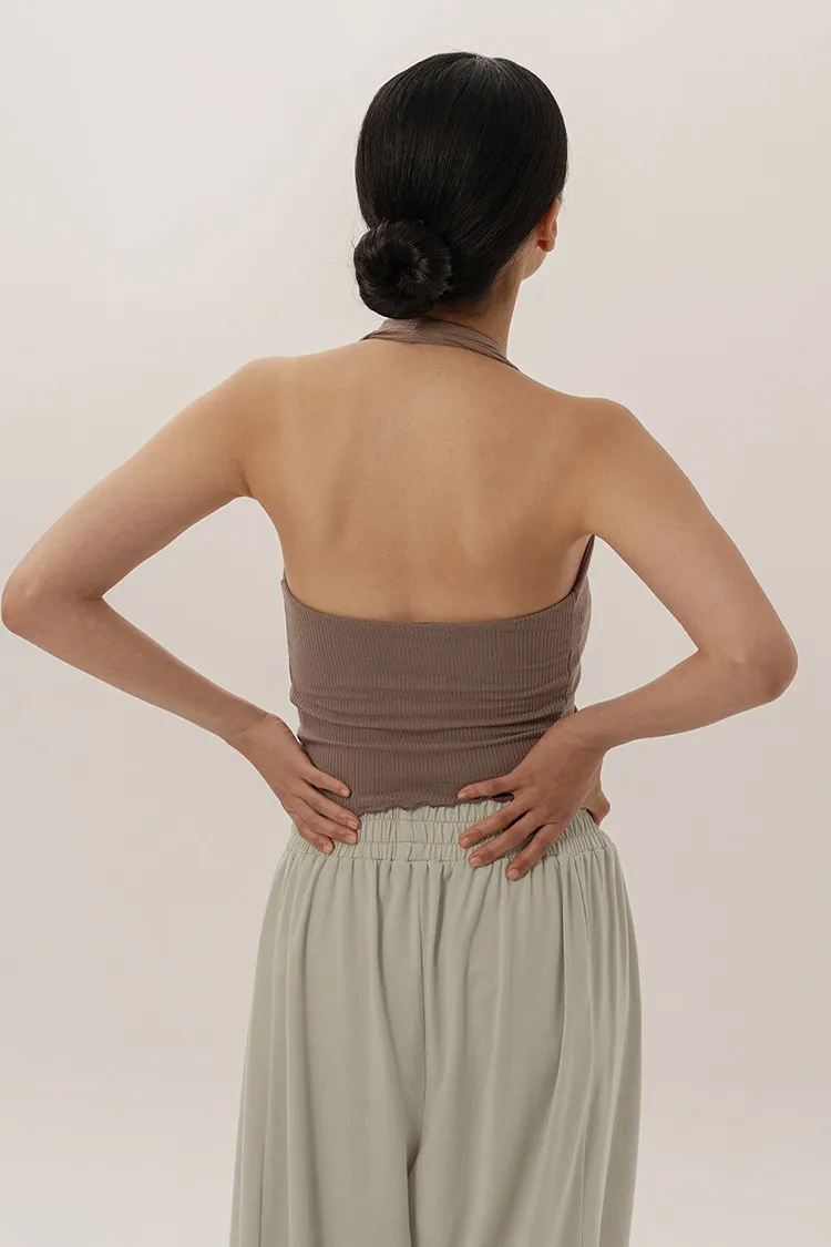 [成份] 人造纖維(Rayon)90%、彈性纖維10%[特點] 採用含有柔軟天絲的面料製作,繞頸設計讓胸部完全不顯露,肩部活動範圍寬廣,自然伸展。*可拆式胸墊*S號胸圍約75cm(適合XS-S) / M號胸圍約85cm(適合約M尺寸)