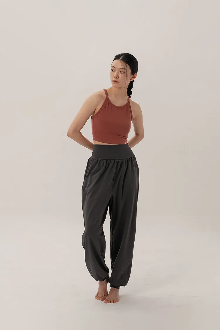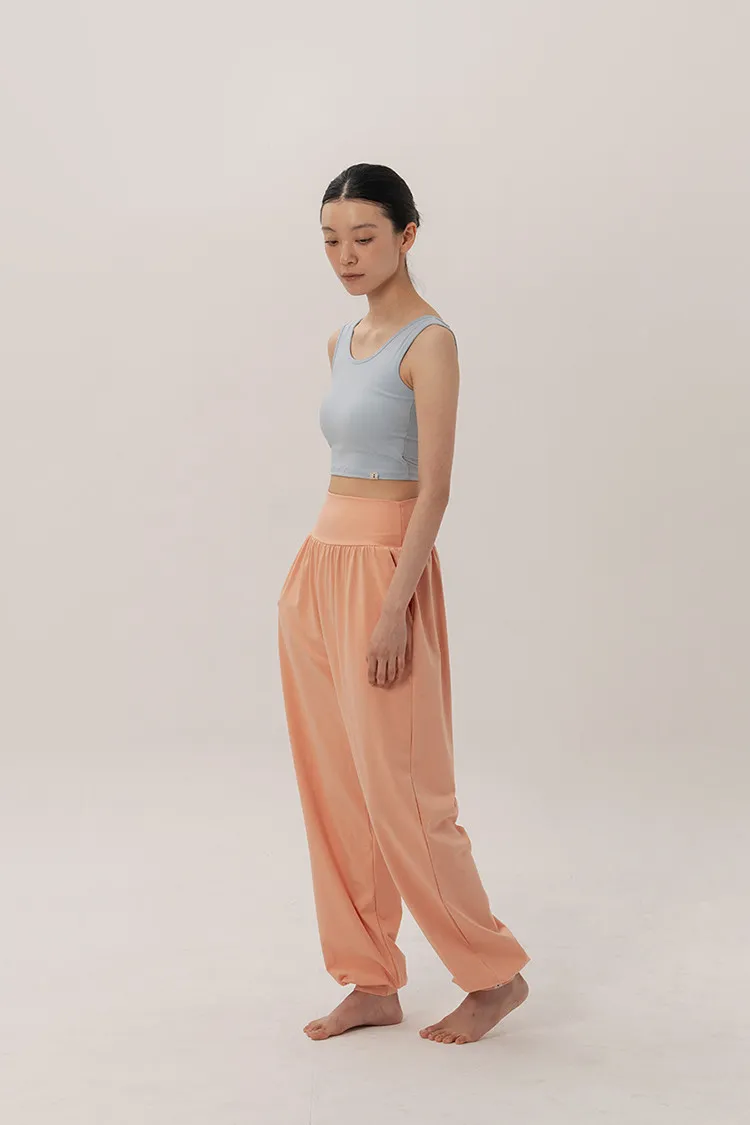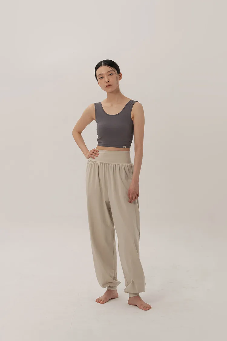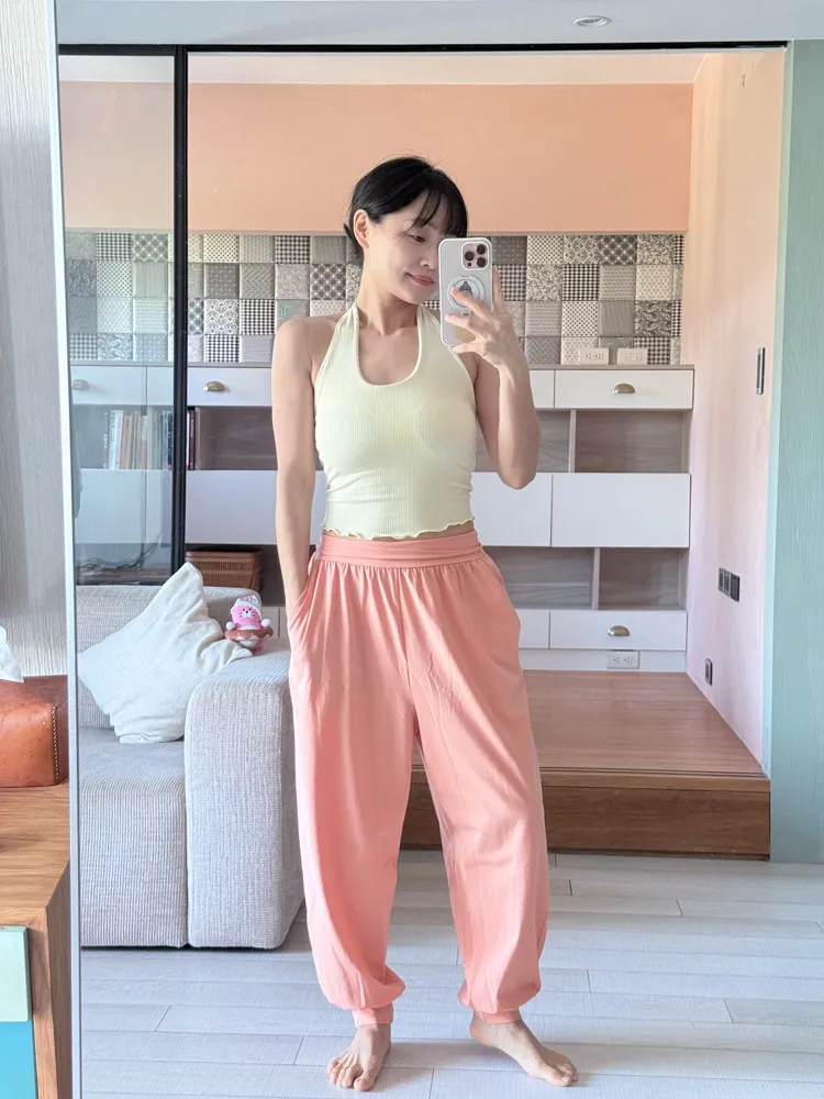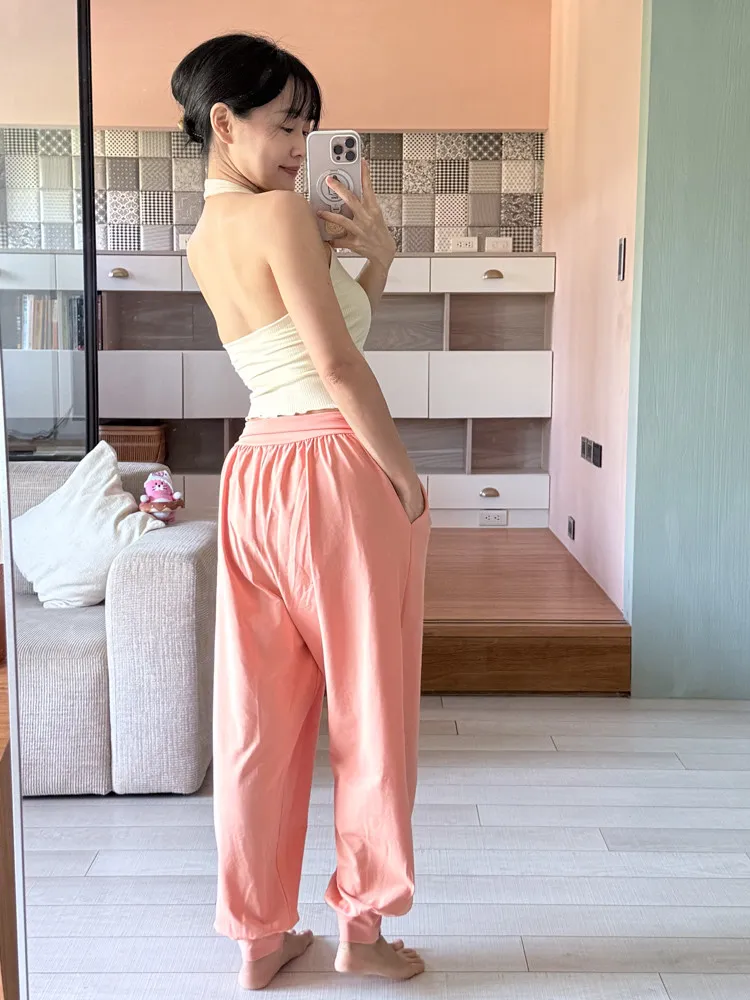 [特點] 柔和的腰部鬆緊帶輕柔包覆,褲腳以同材質鬆緊設計穩定貼合,即使長時間穿著也能維持舒適。