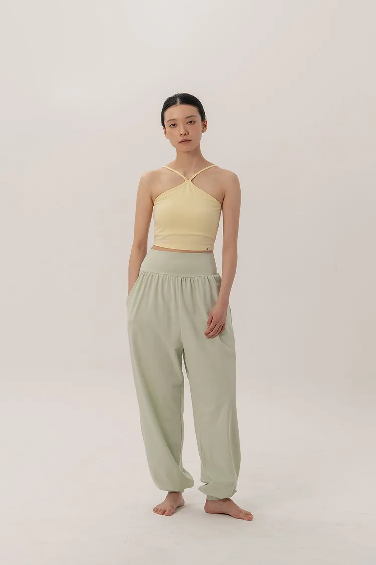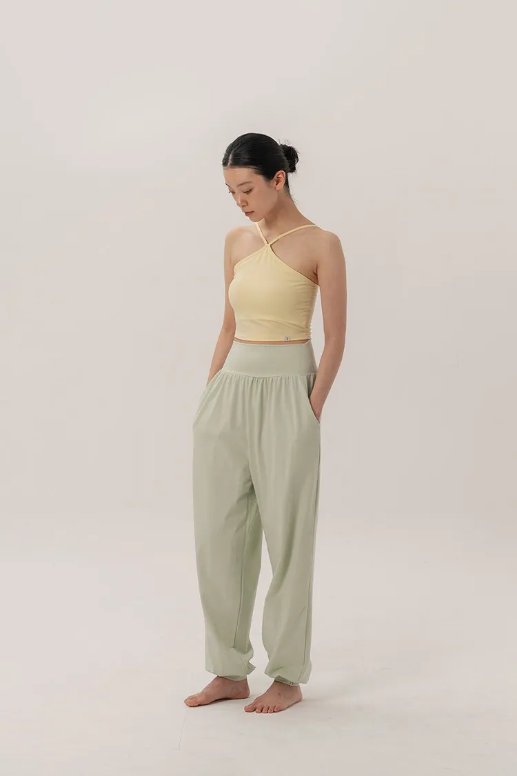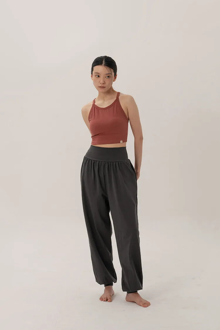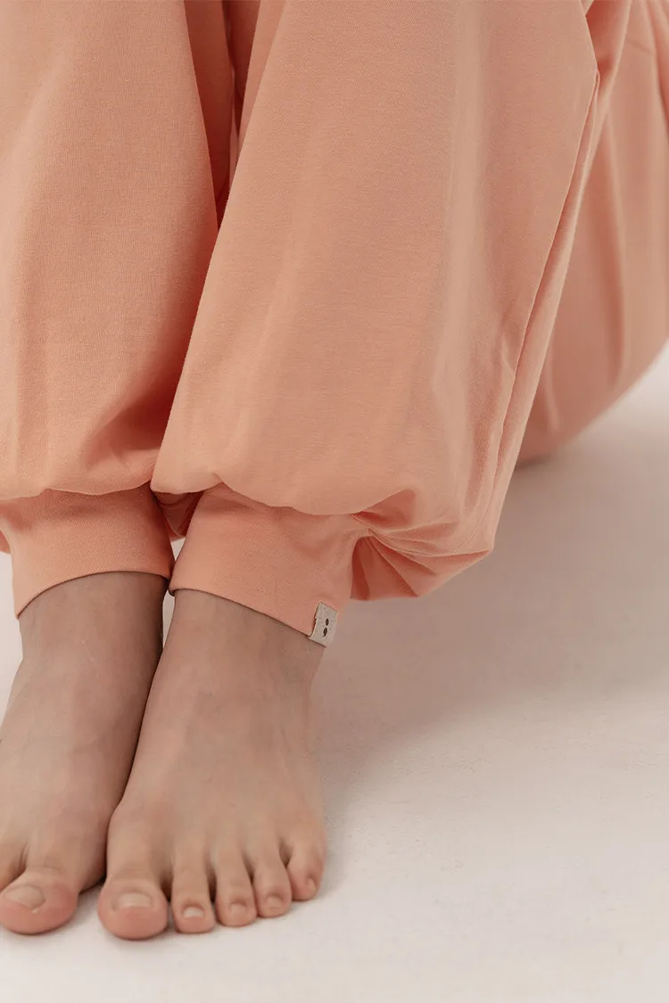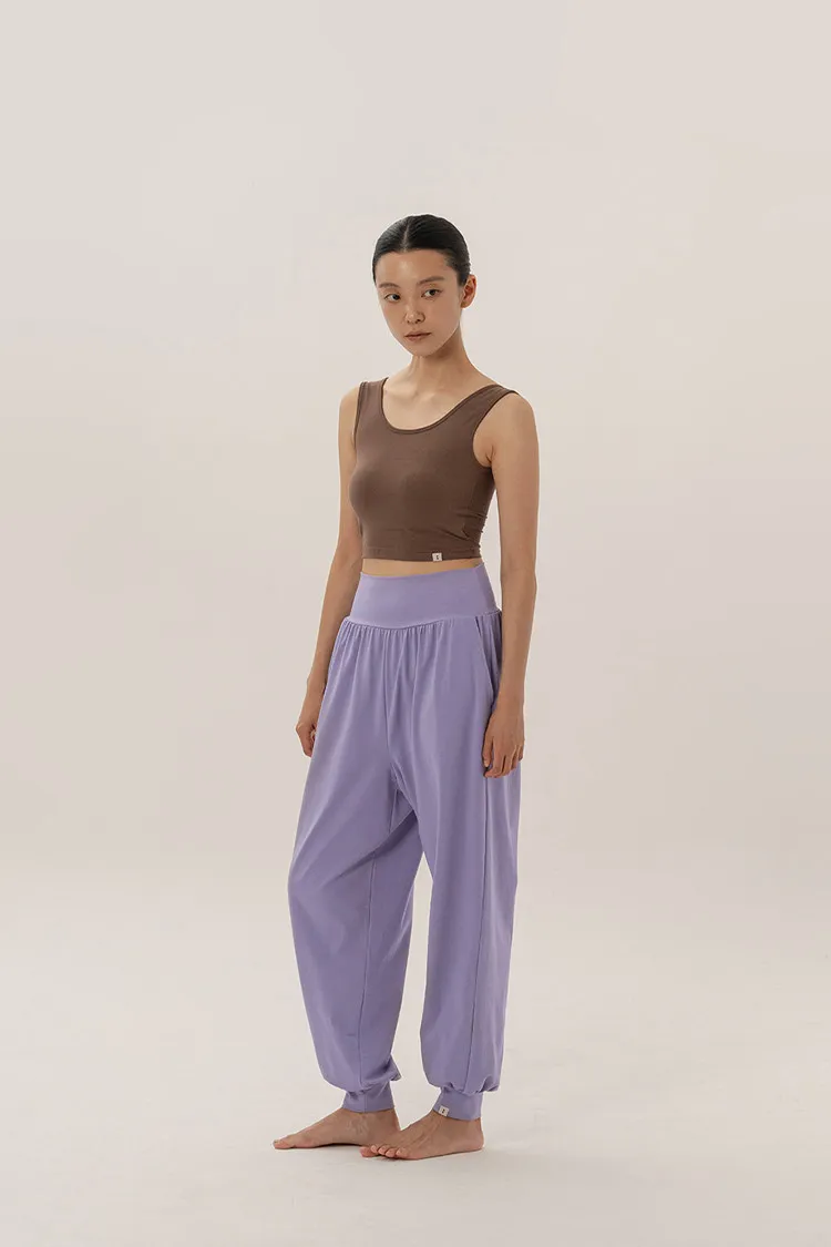 [特點] 柔和的腰部鬆緊帶輕柔包覆,褲腳以同材質鬆緊設計穩定貼合,即使長時間穿著也能維持舒適。