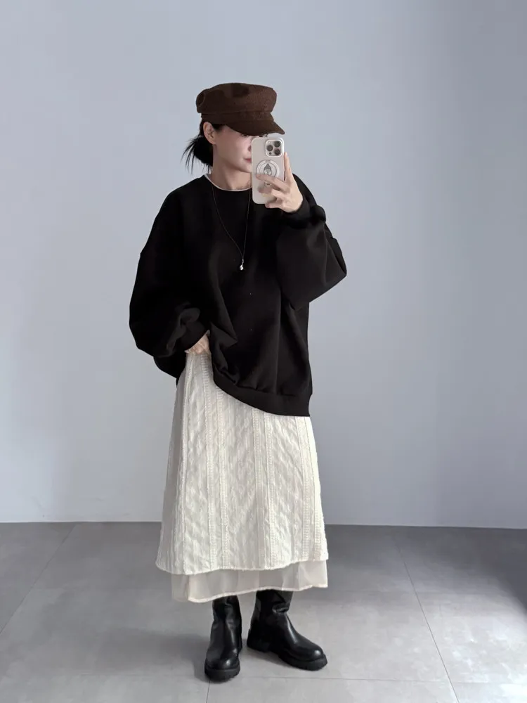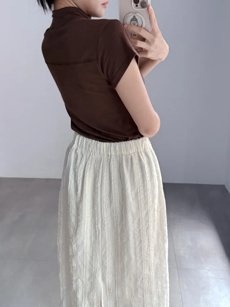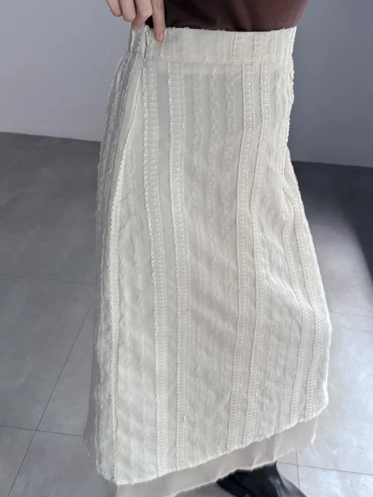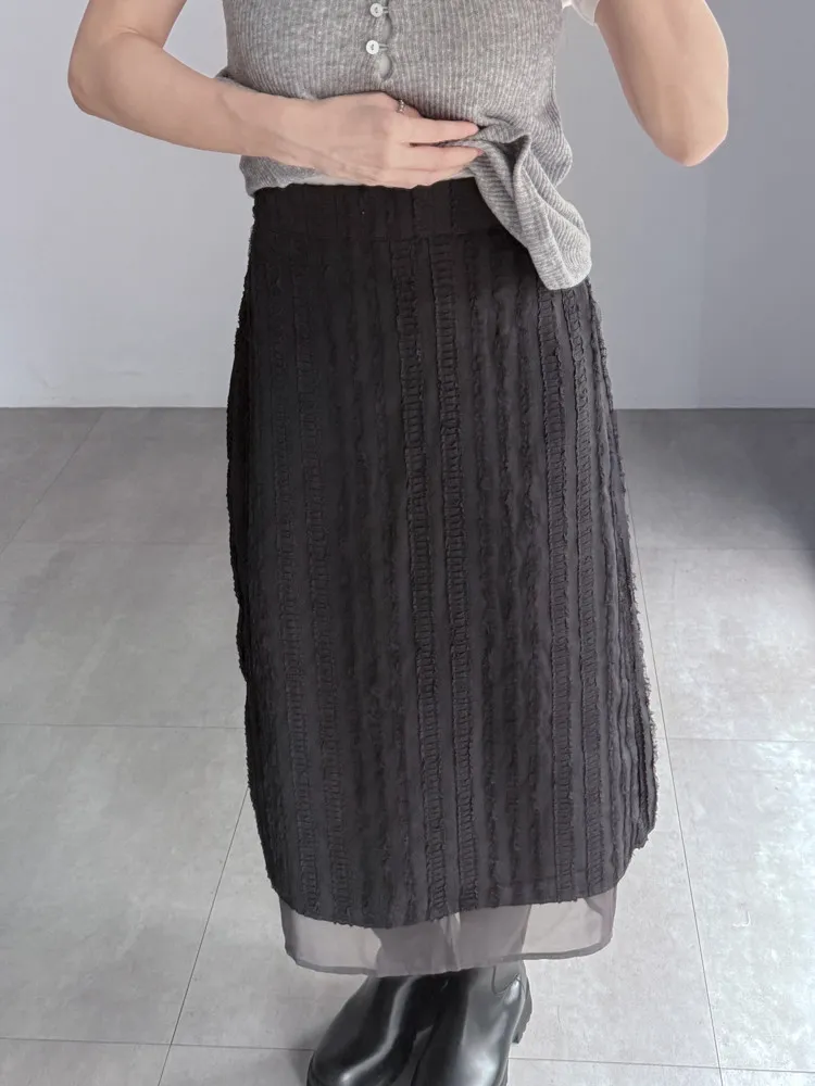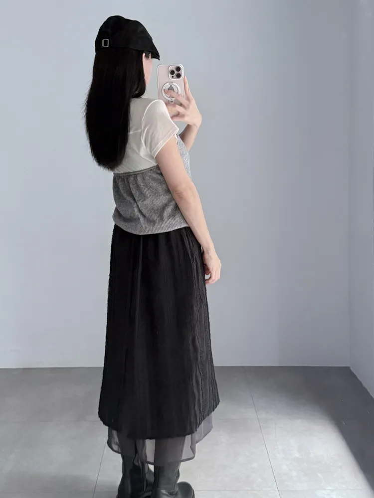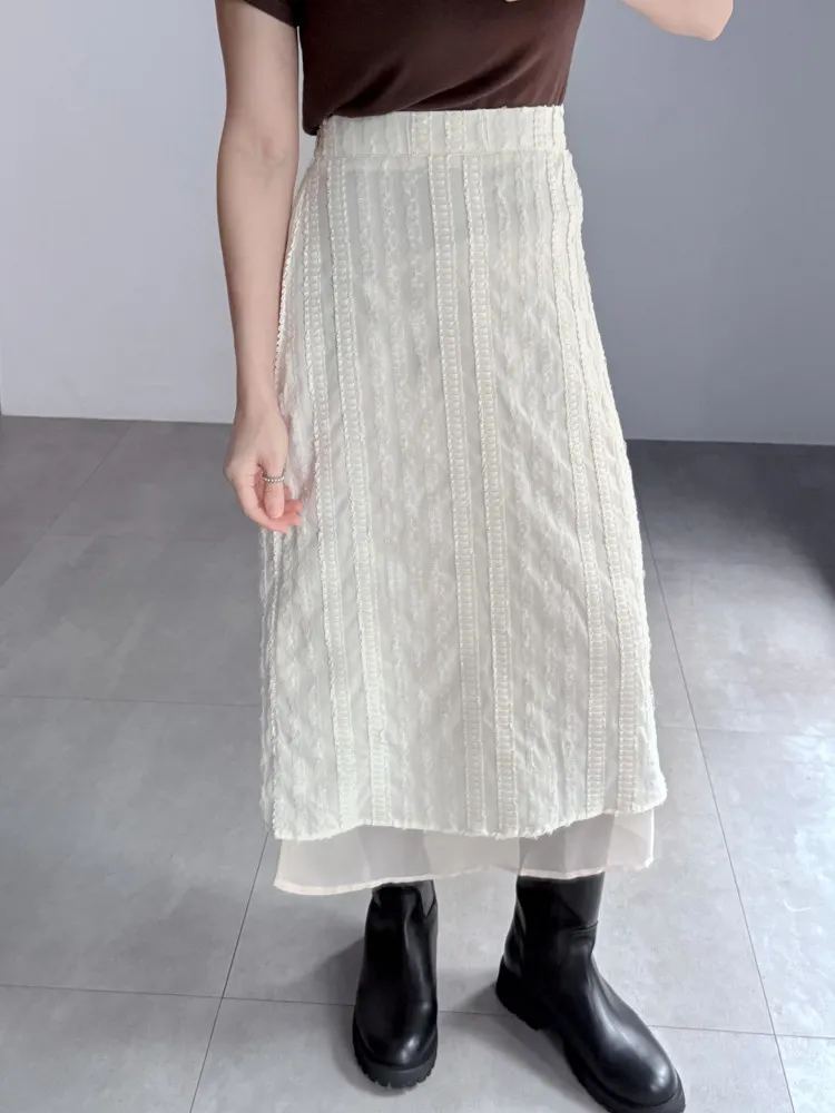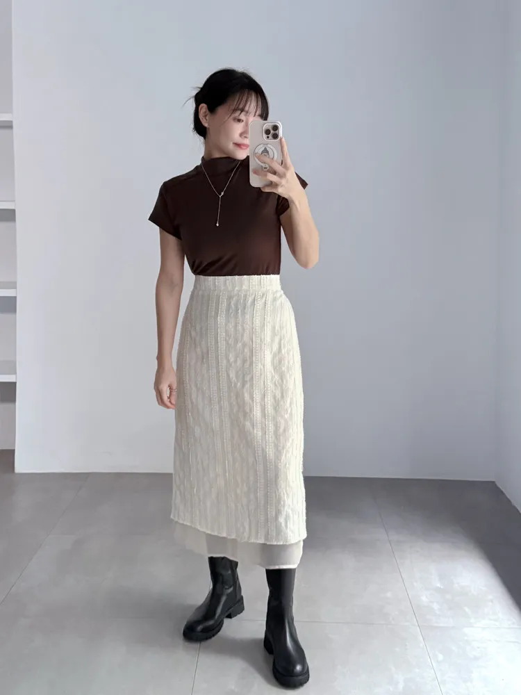 立體滾花拼紗中長裙