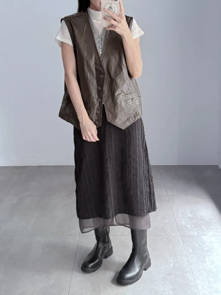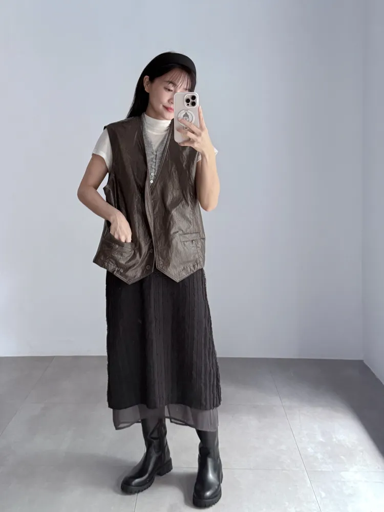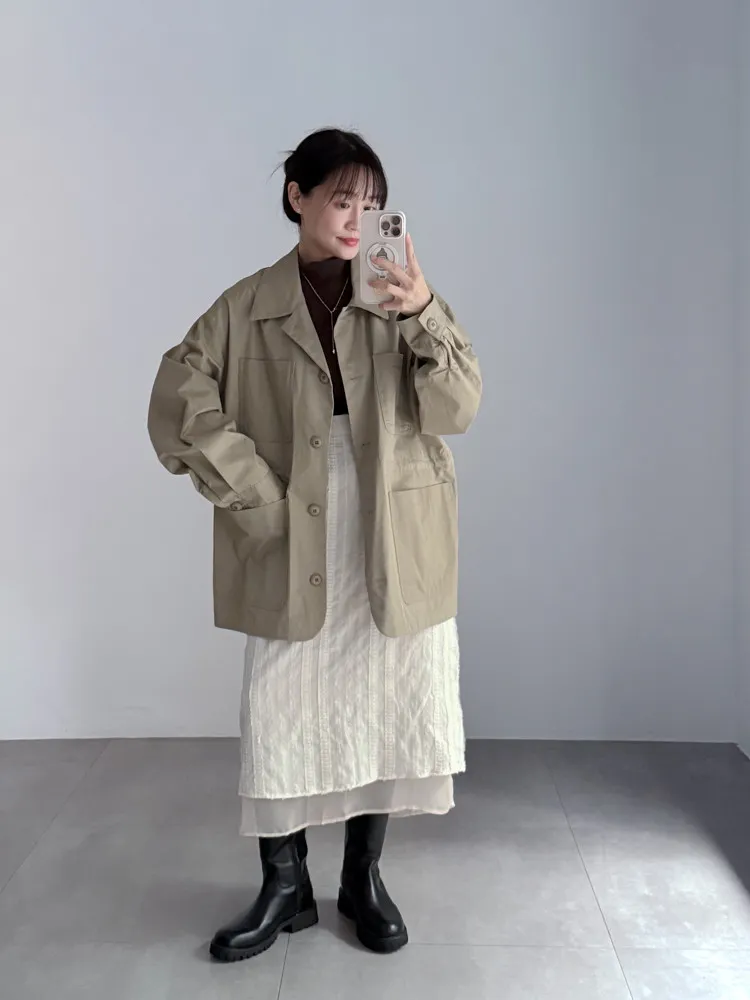 [特點] 布面以立體條紋壓紋設計,輕盈中帶點挺度,裙襬雙層剪裁,