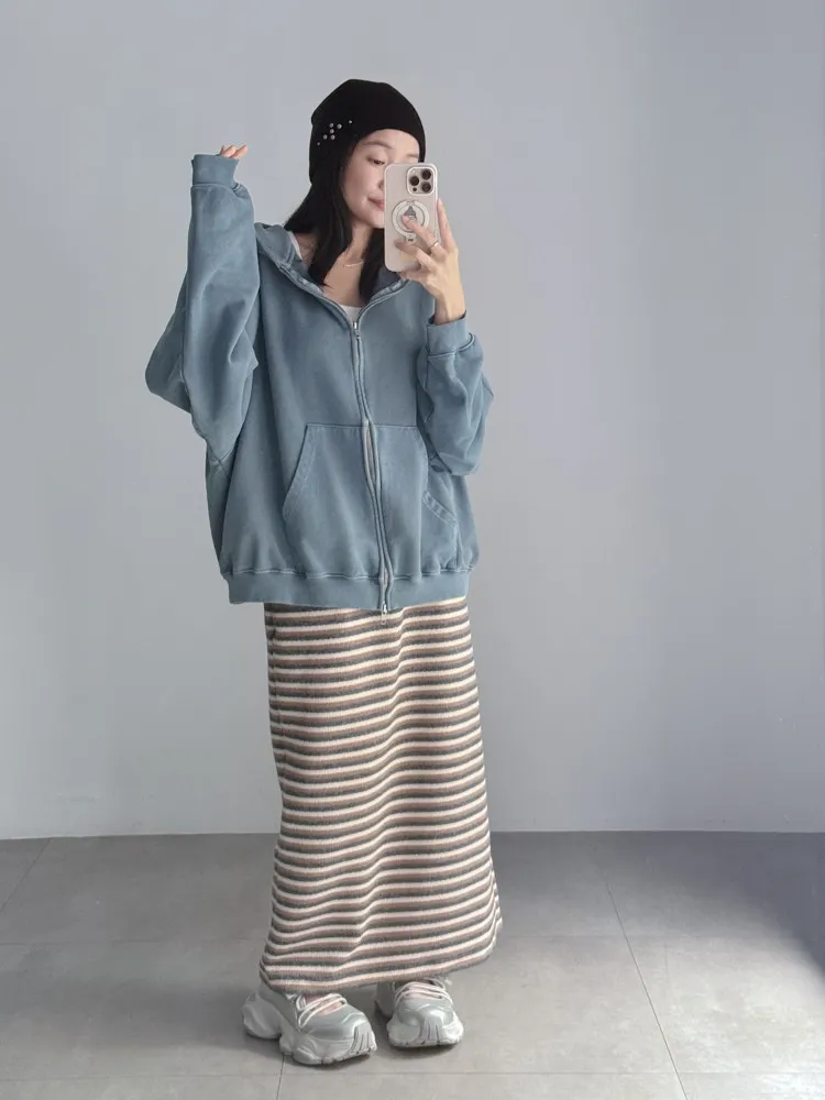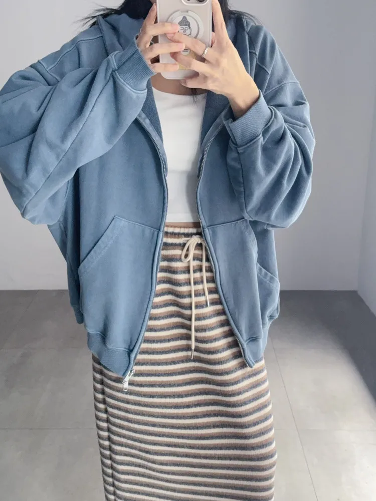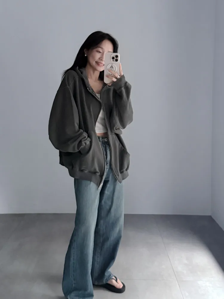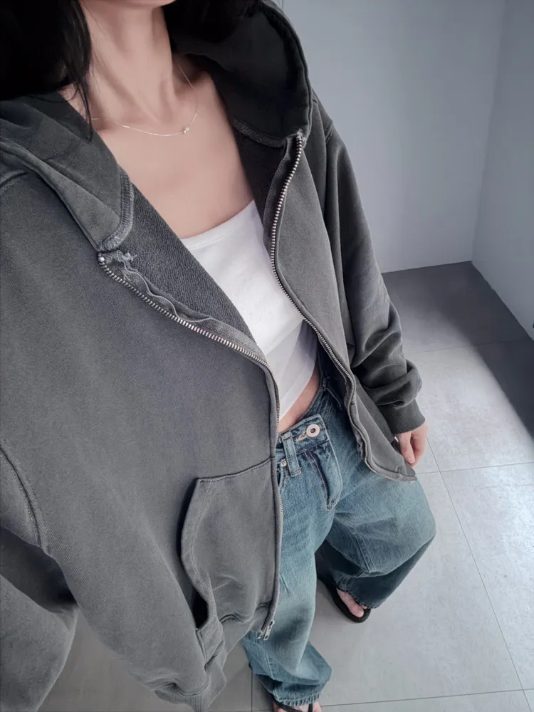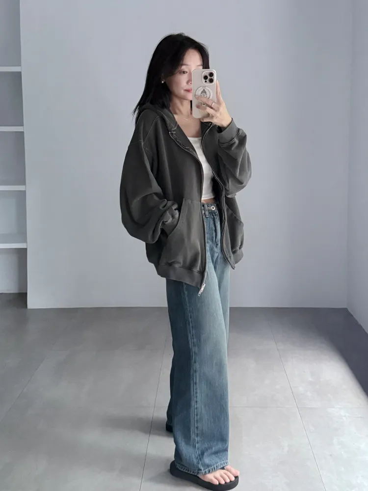[特點] 水洗洗舊面料,內裡毛圈+連帽設計剪裁,寬鬆版型剪裁。