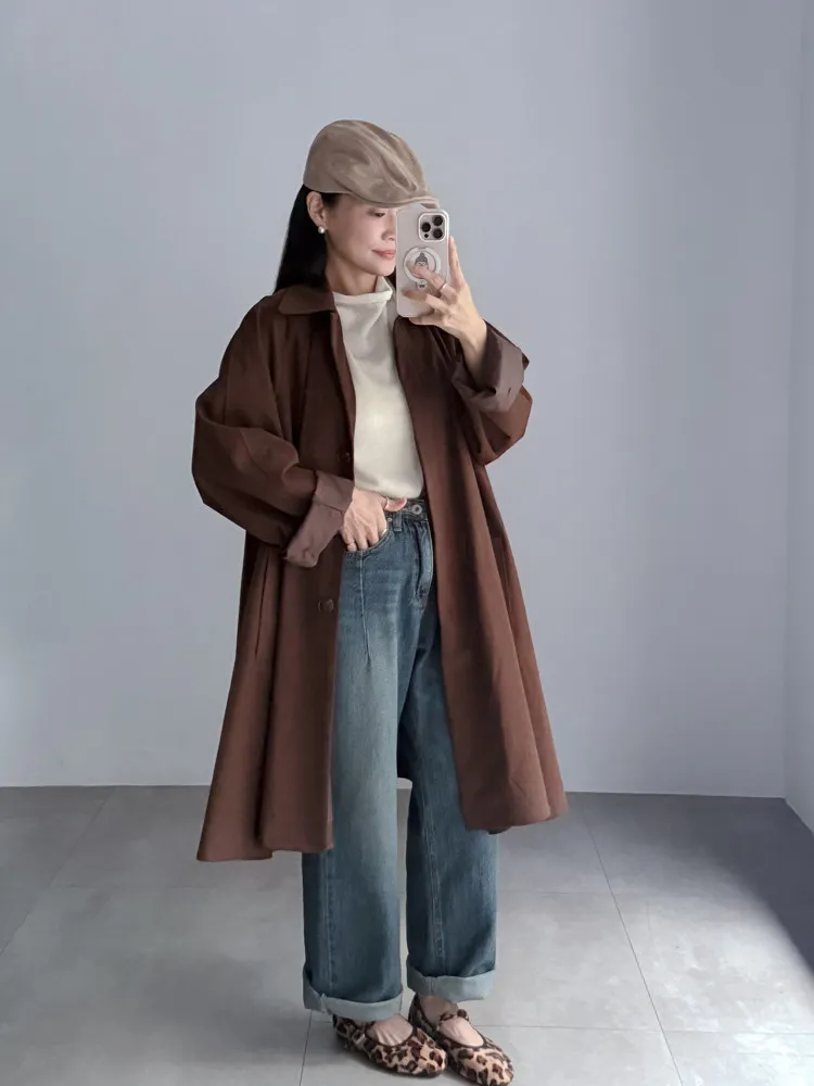 霧面傘襬中長風衣