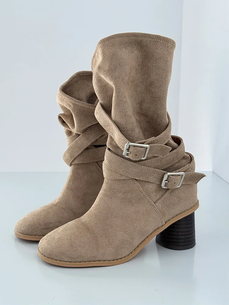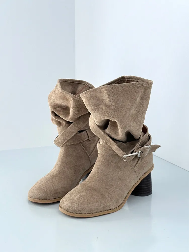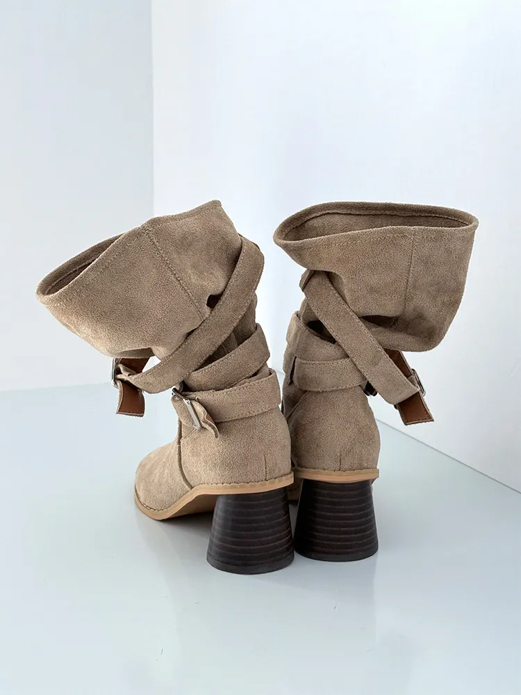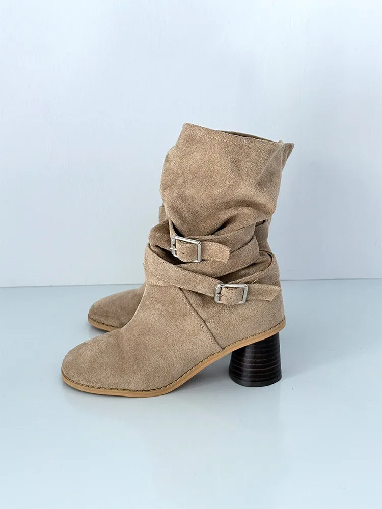 垂墜釦環細腿跟靴