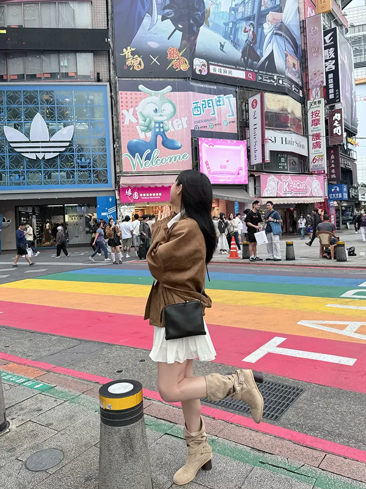 [特點] 軟料麂皮面料,雙口環造型設計,圓木跟好踩好走。