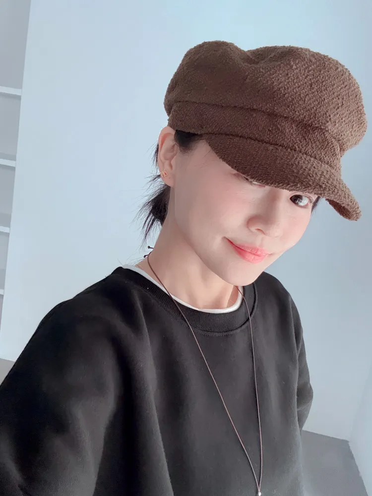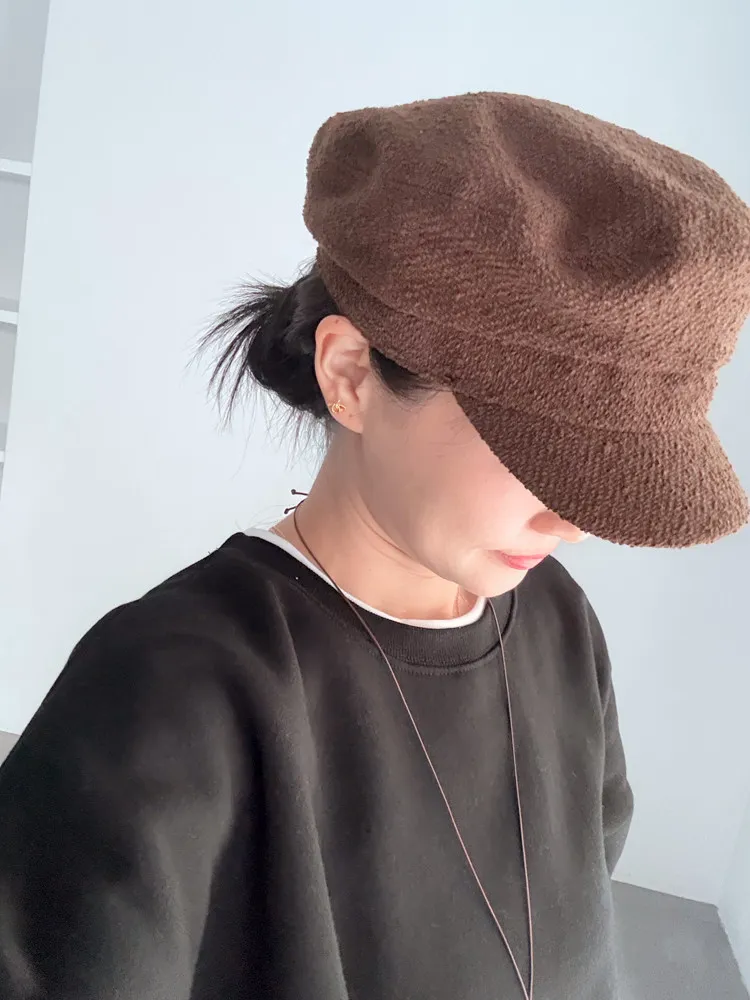 [特點] 毛呢感織紋面料,帽型不挑頭型。