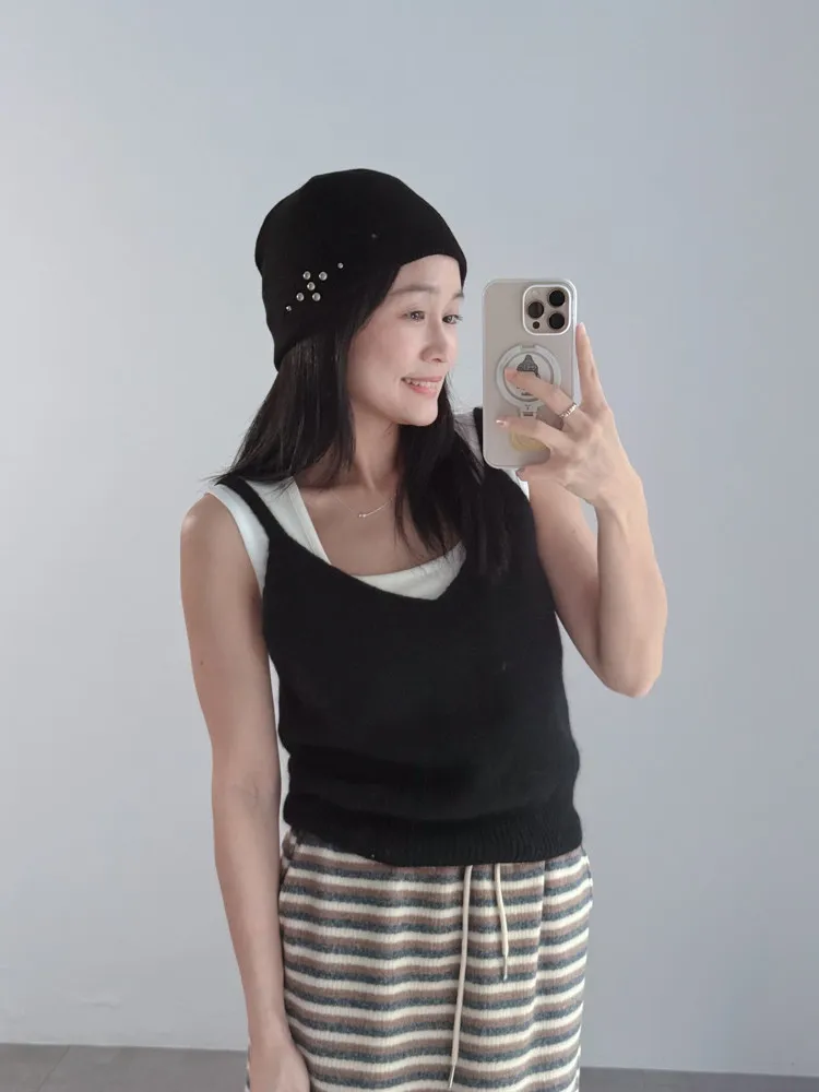 [特點] 鬆軟的針織,珠珠釘釦設計,戴起來不緊繃。