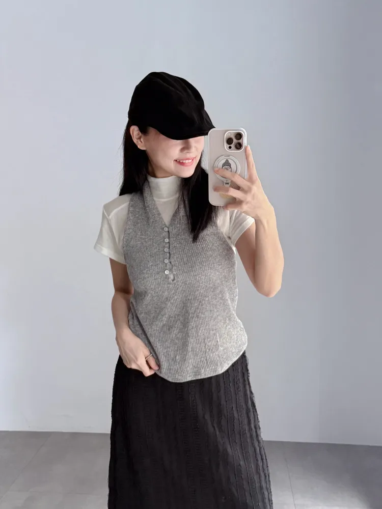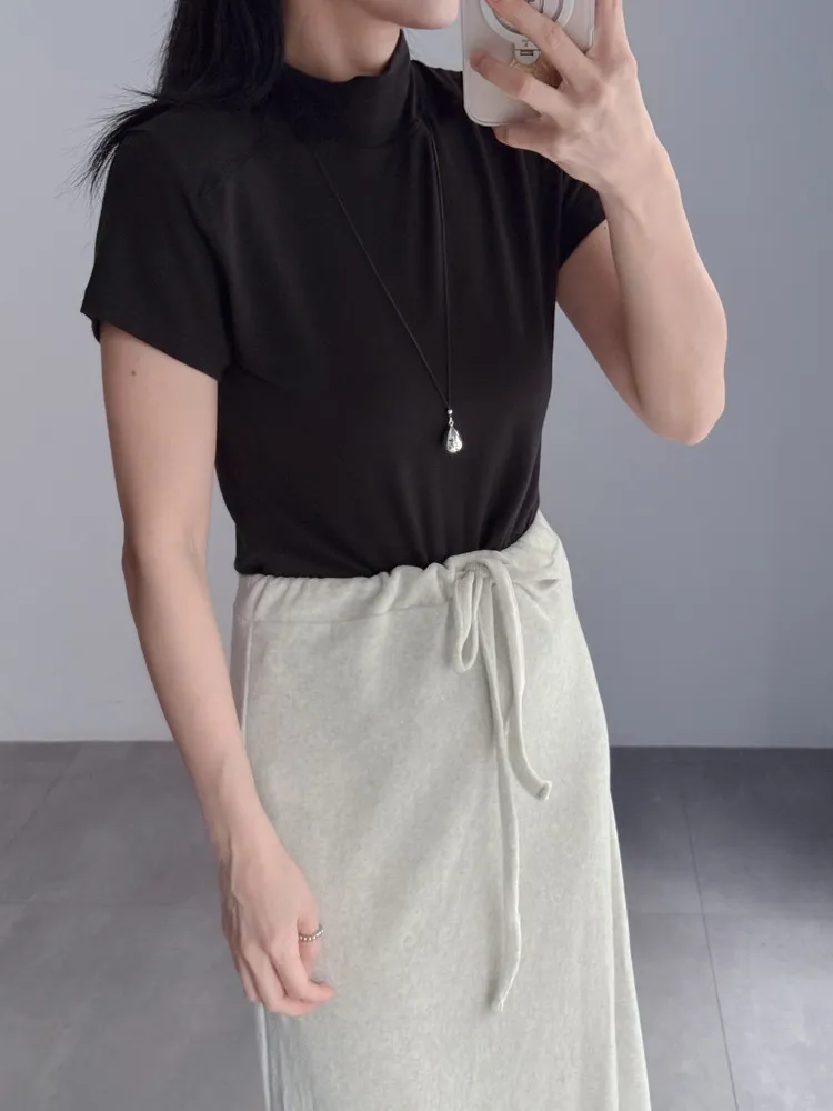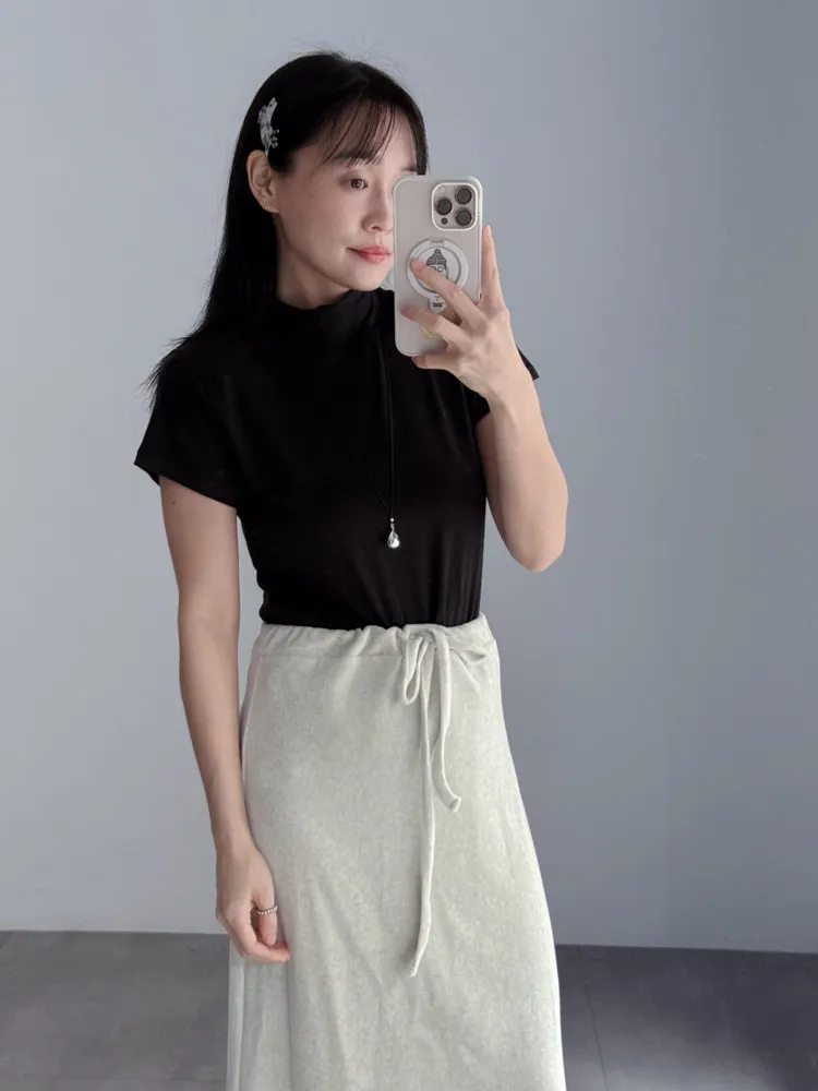 [特點] 微領設計,輕薄彈性面料,順身版型不合貼。