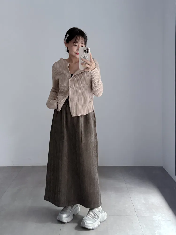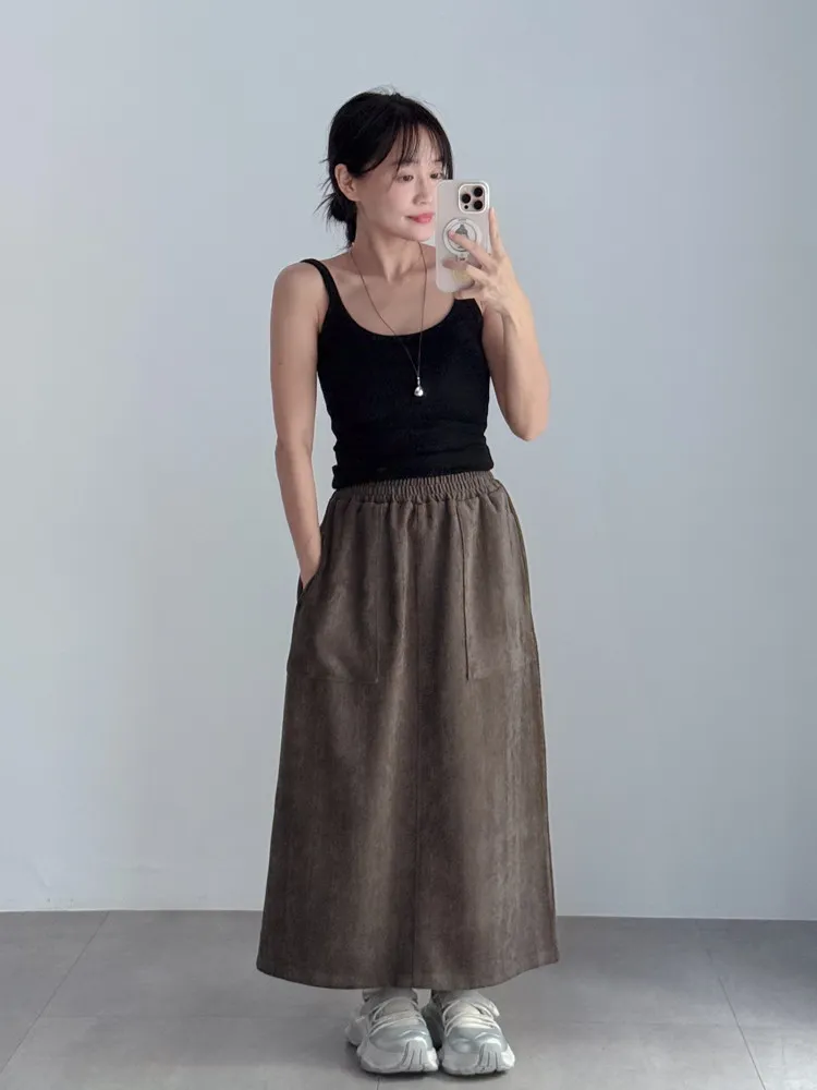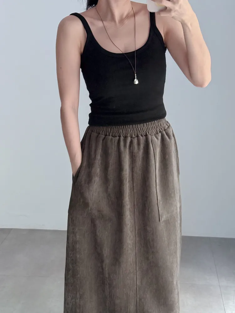 [特點] 鬆緊彈性腰圍,雙口袋+後開衩設計,舒服的天絲手感,版型順身。