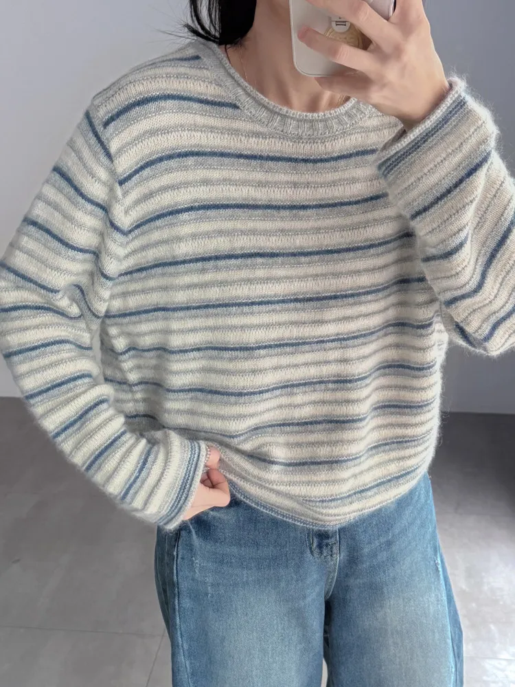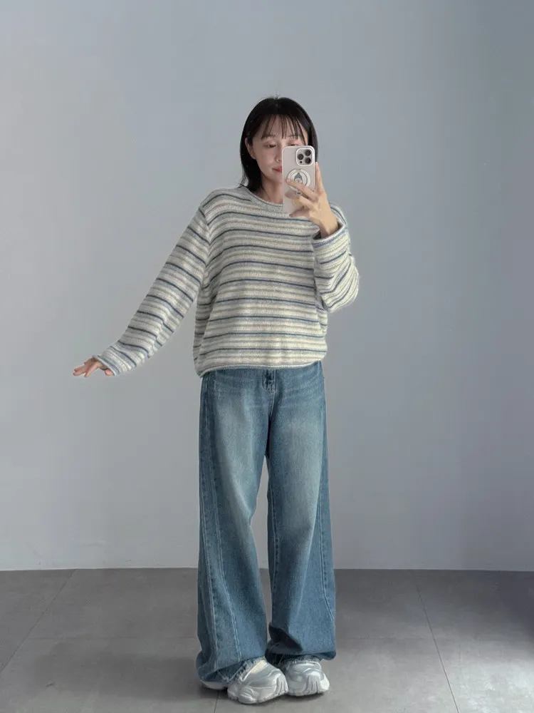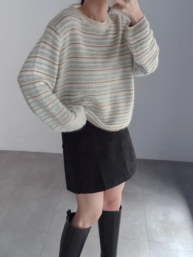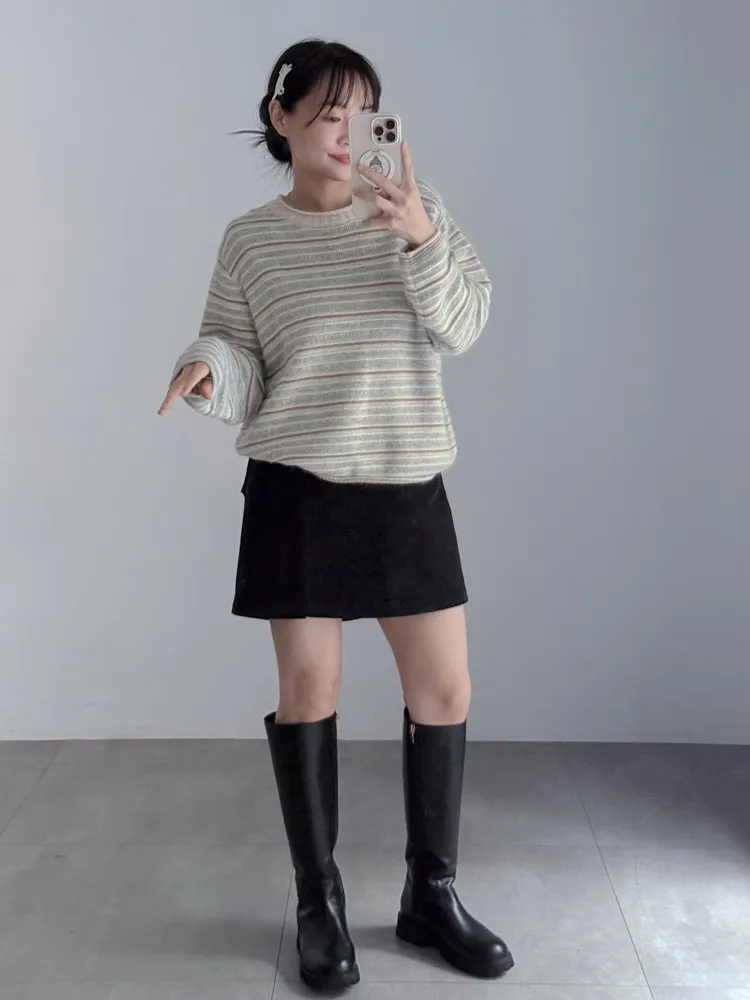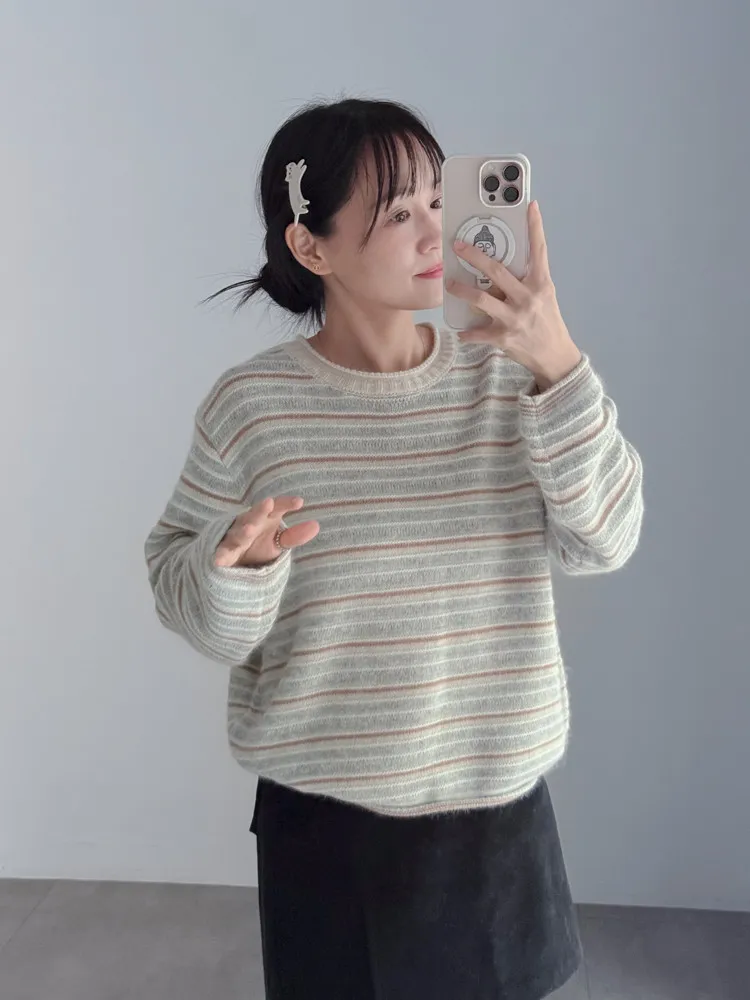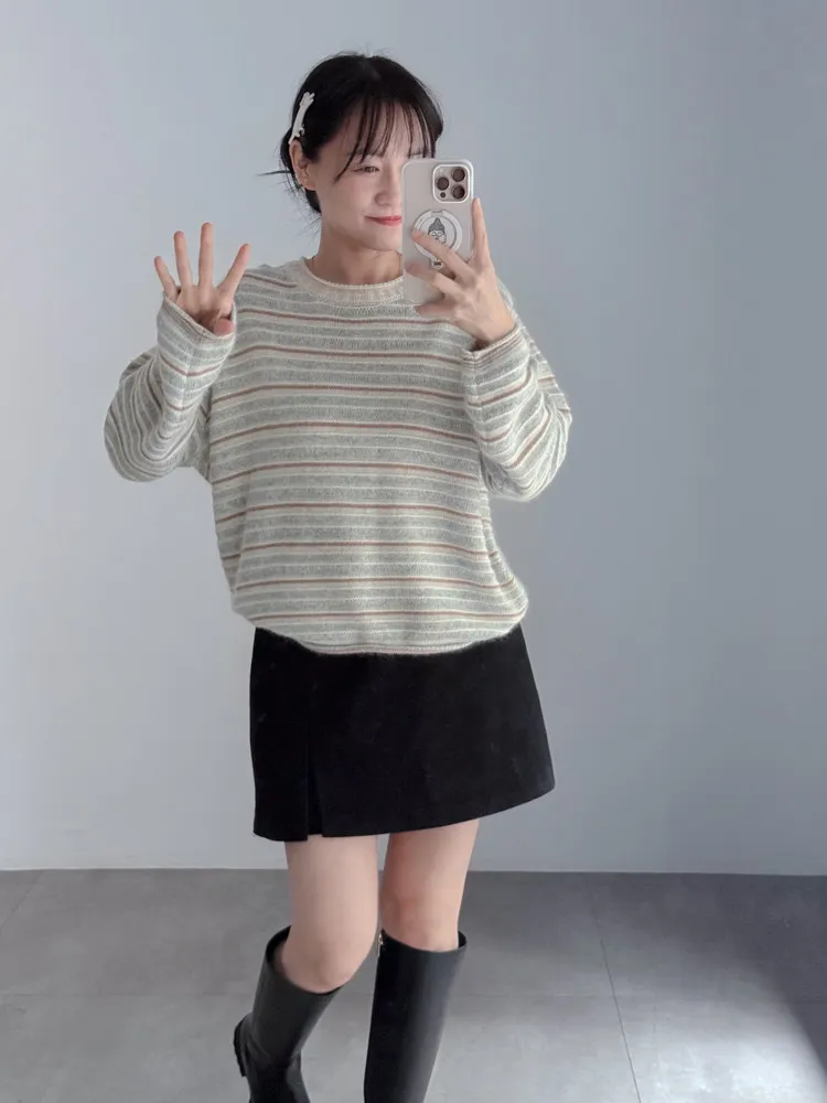 [特點] 鬆軟細毛針織,觸感輕盈不刺膚,略寬鬆短版剪裁,下擺捲邊設計。