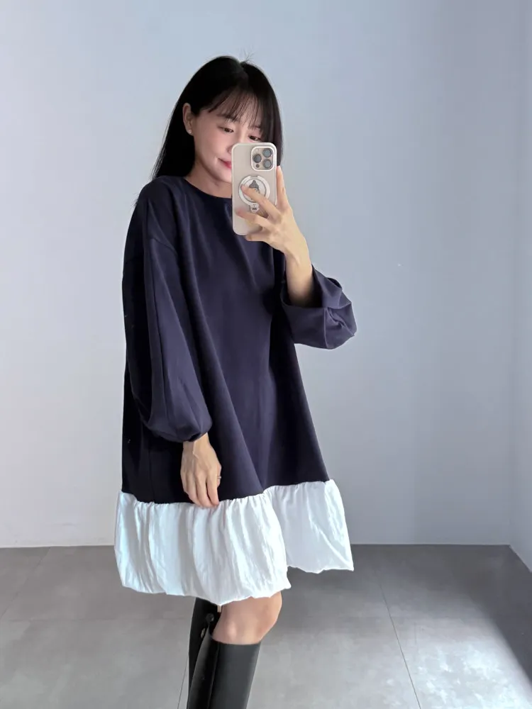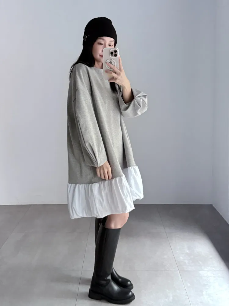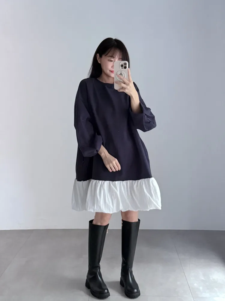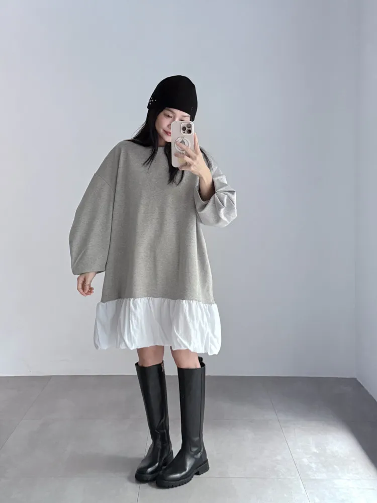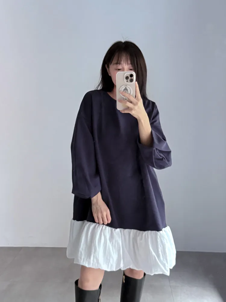[特點] 上身為柔軟棉質,親膚不厚重,下擺是襯衫感布料,氣球內收微澎剪裁,