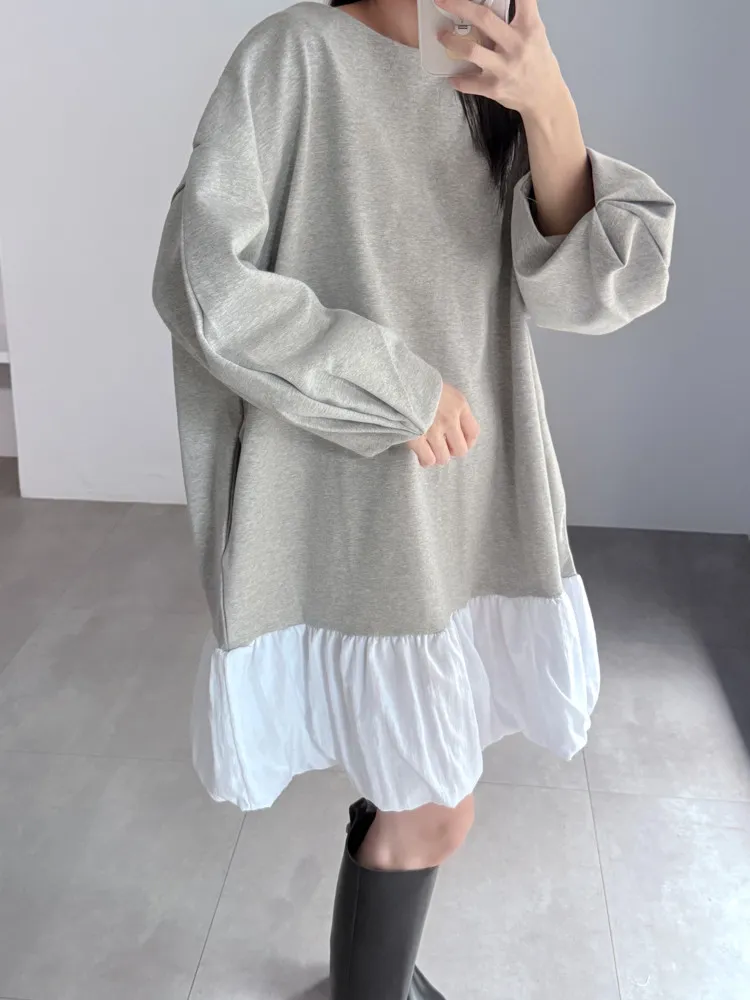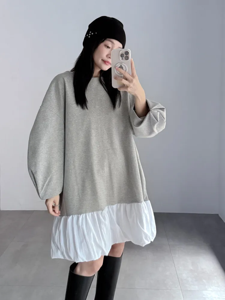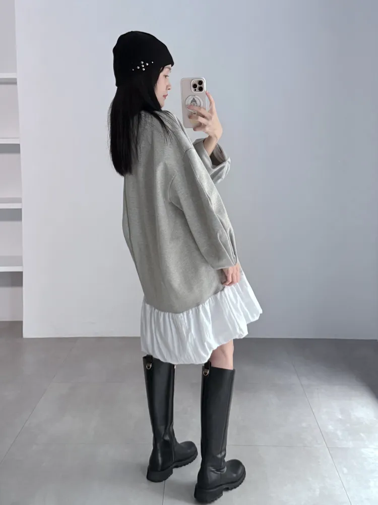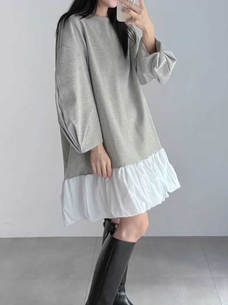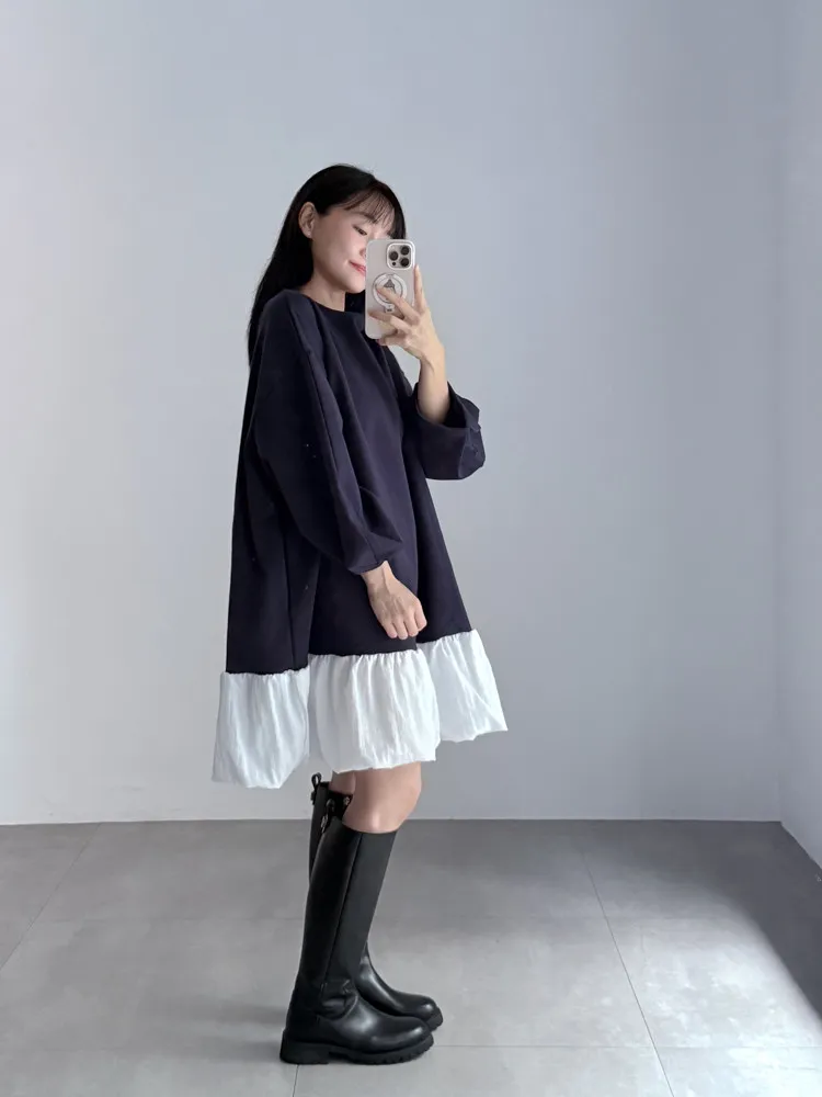 [特點] 上身為柔軟棉質,親膚不厚重,下擺是襯衫感布料,氣球內收微澎剪裁,