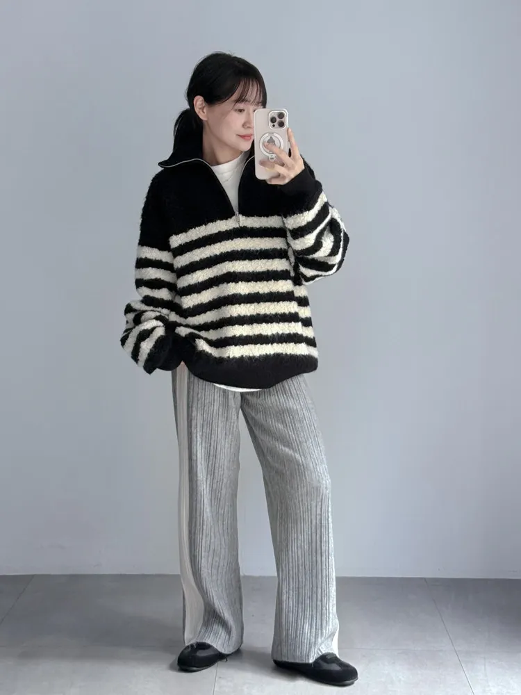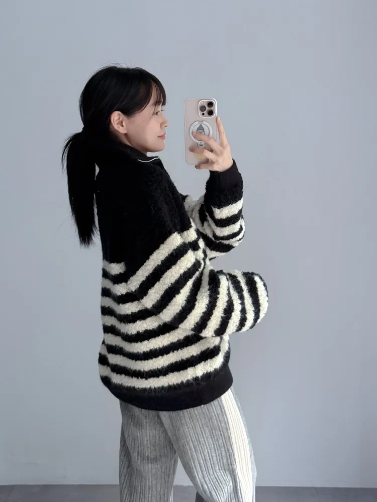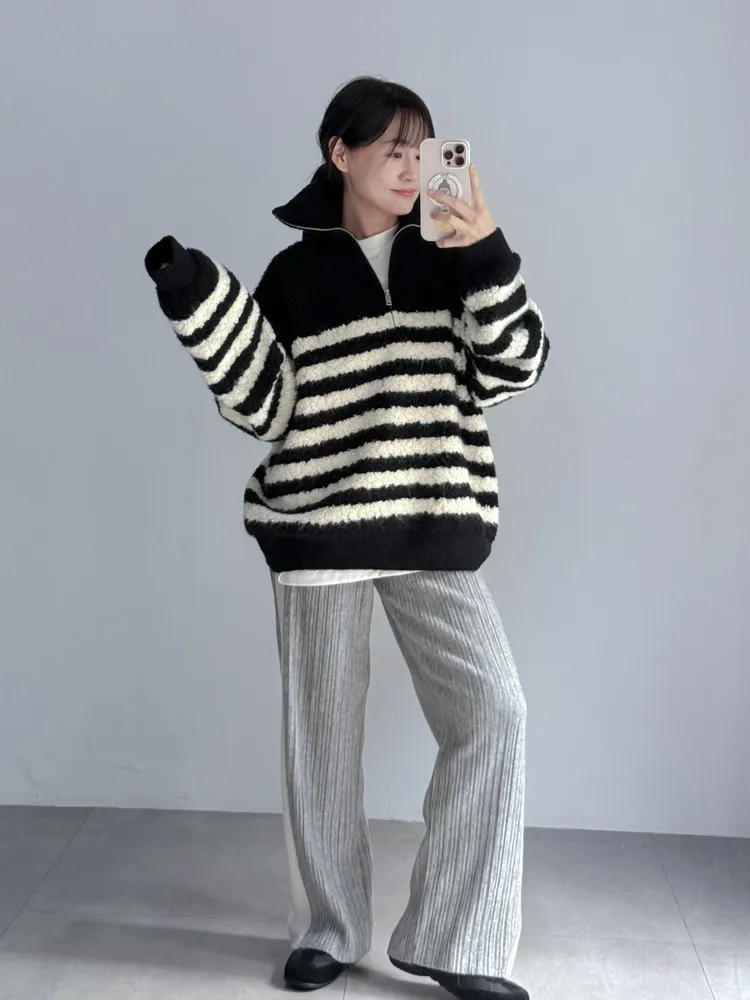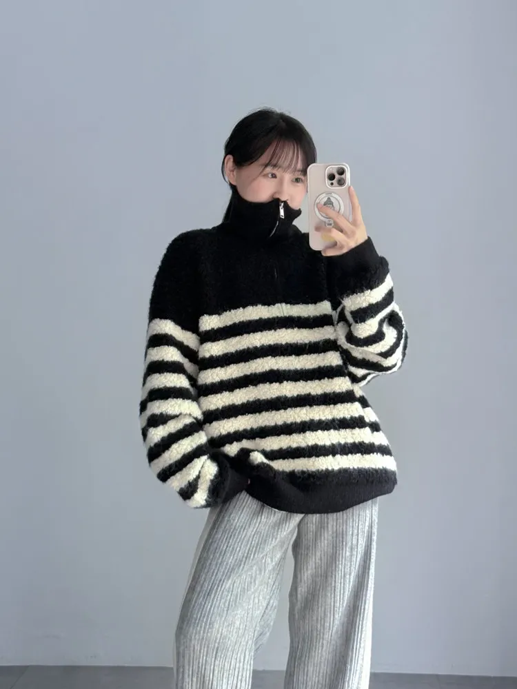 [特點] 蓬鬆QQ毛觸感,寬鬆版型,半開拉鍊高領,保暖度佳,不會刺膚。