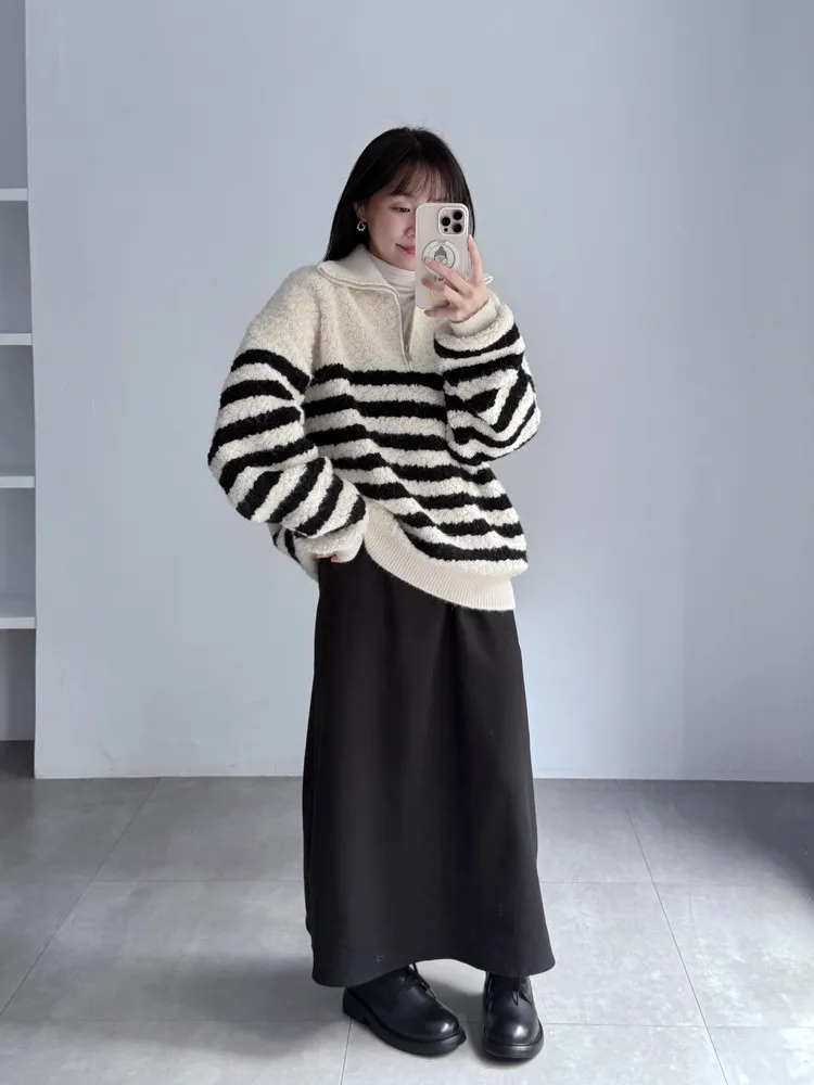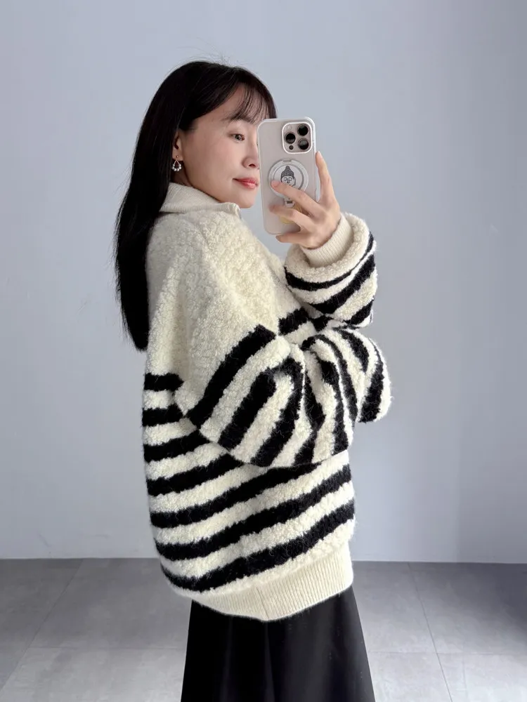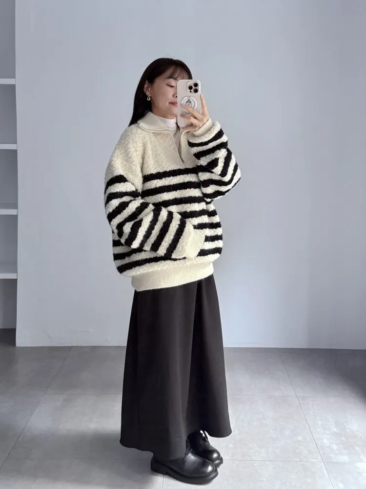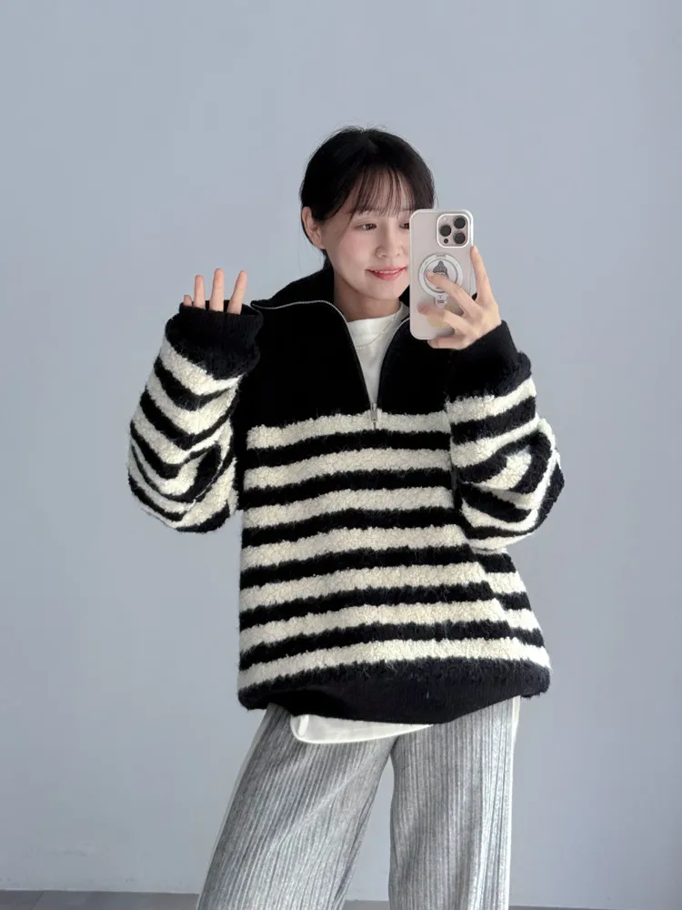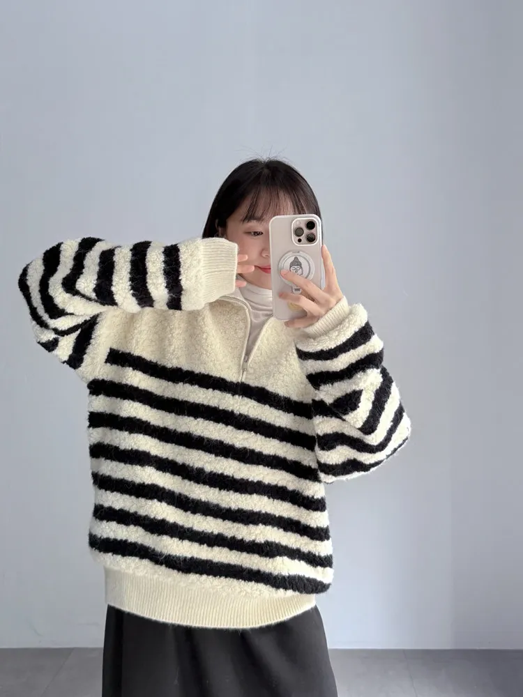 [特點] 蓬鬆QQ毛觸感,寬鬆版型,半開拉鍊高領,保暖度佳,不會刺膚。