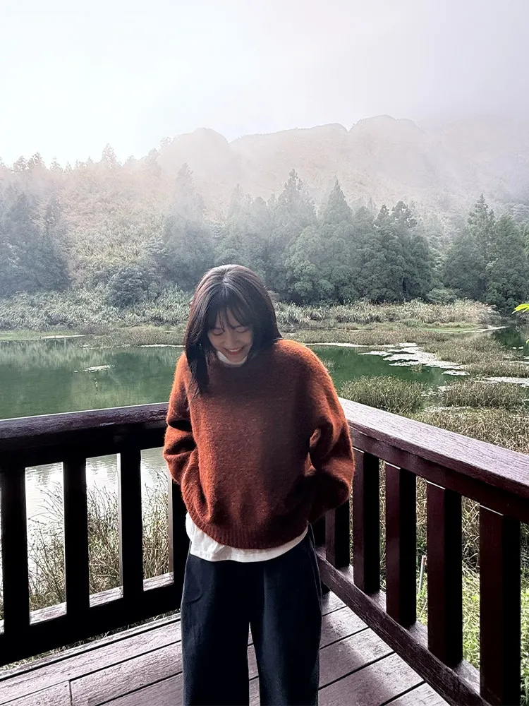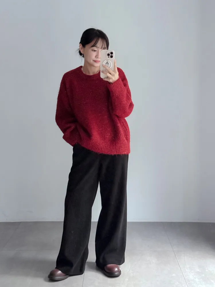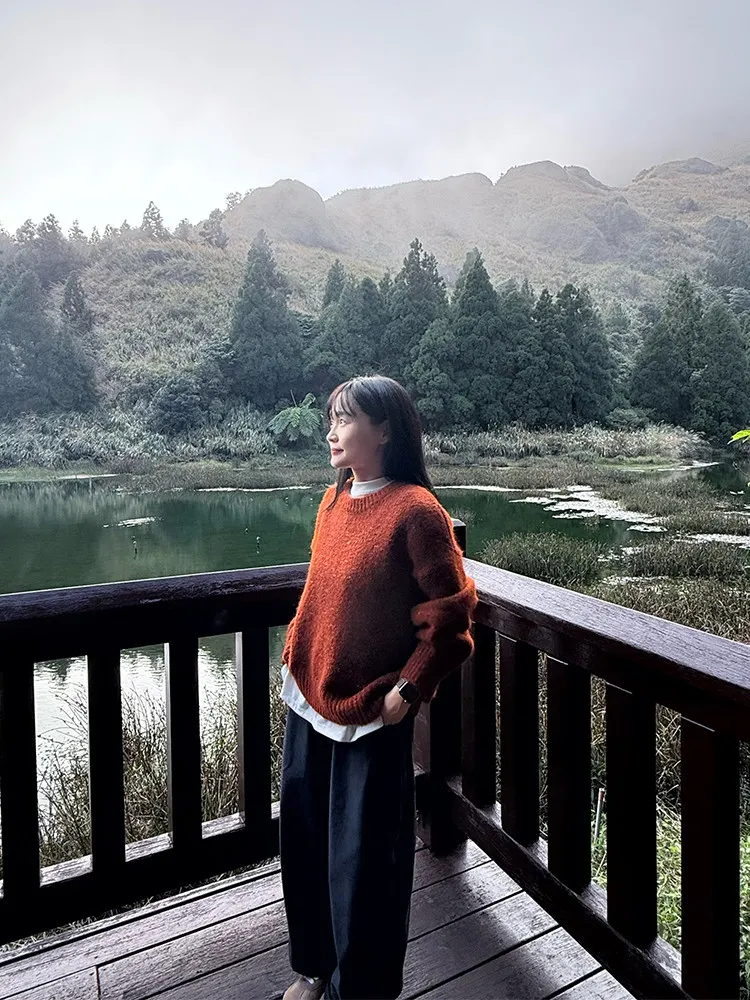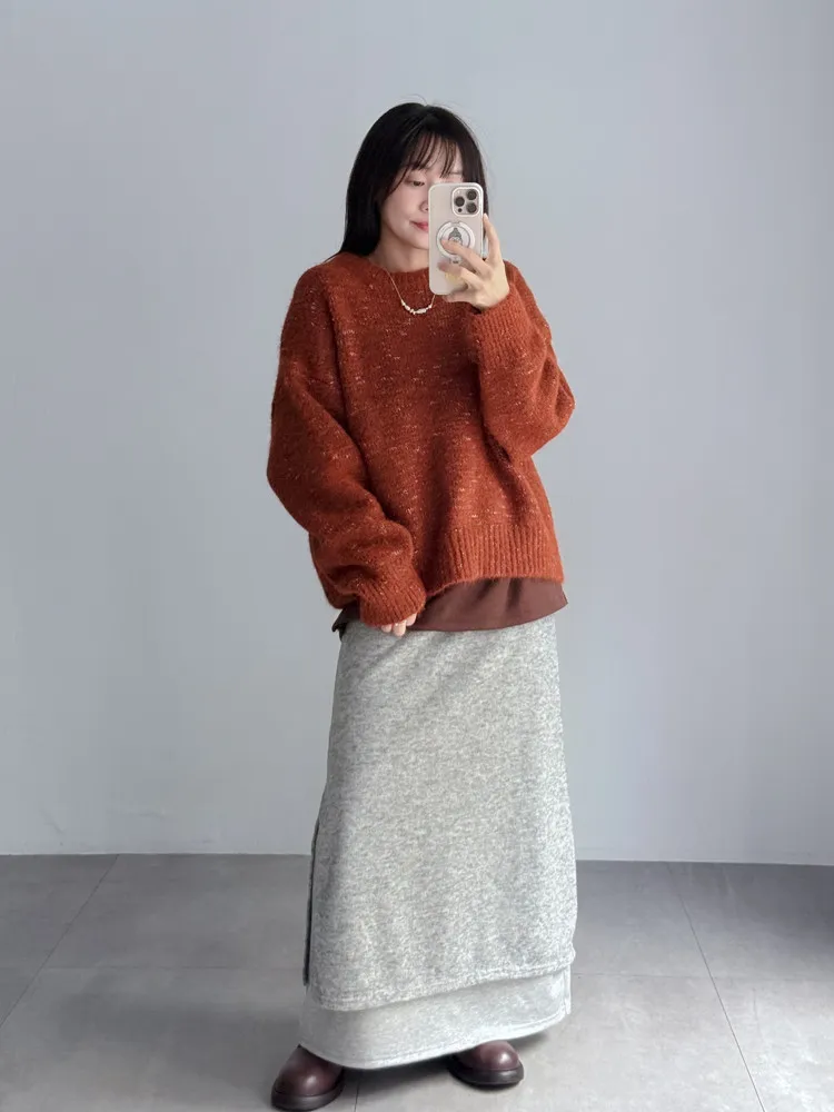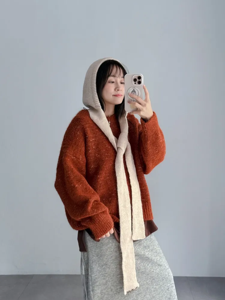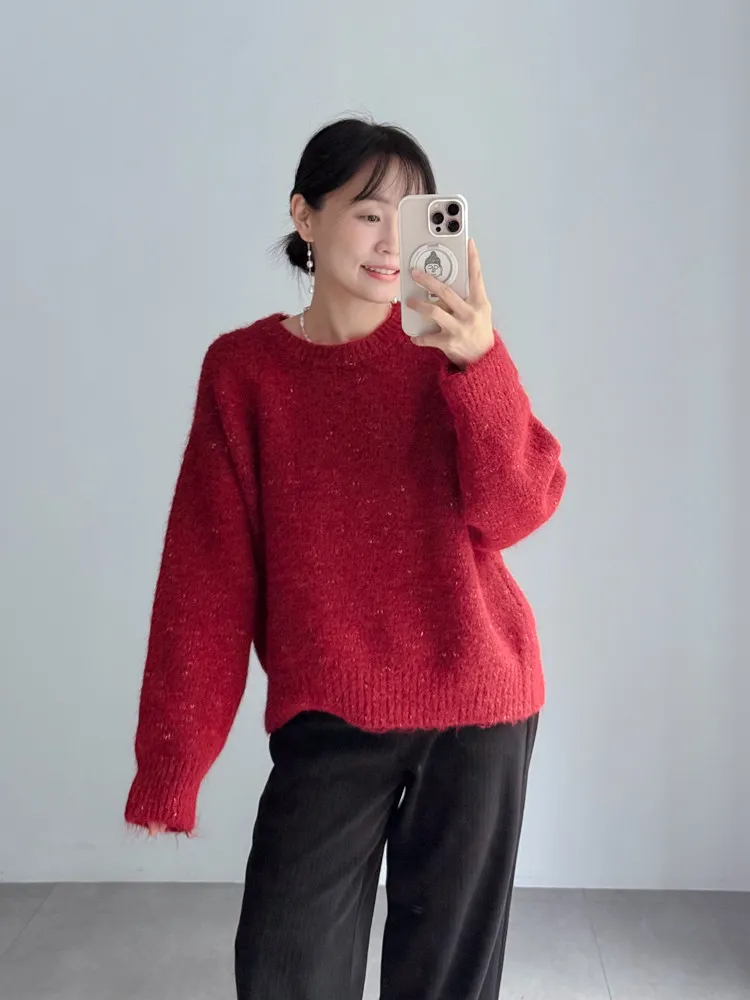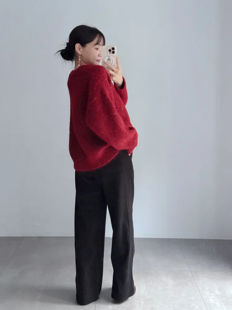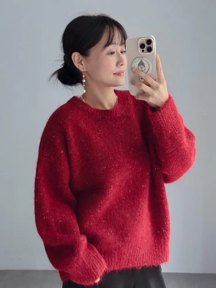 [特點] 落肩+自然蓬鬆袖型,面料觸感不刺膚,混色針織設計。