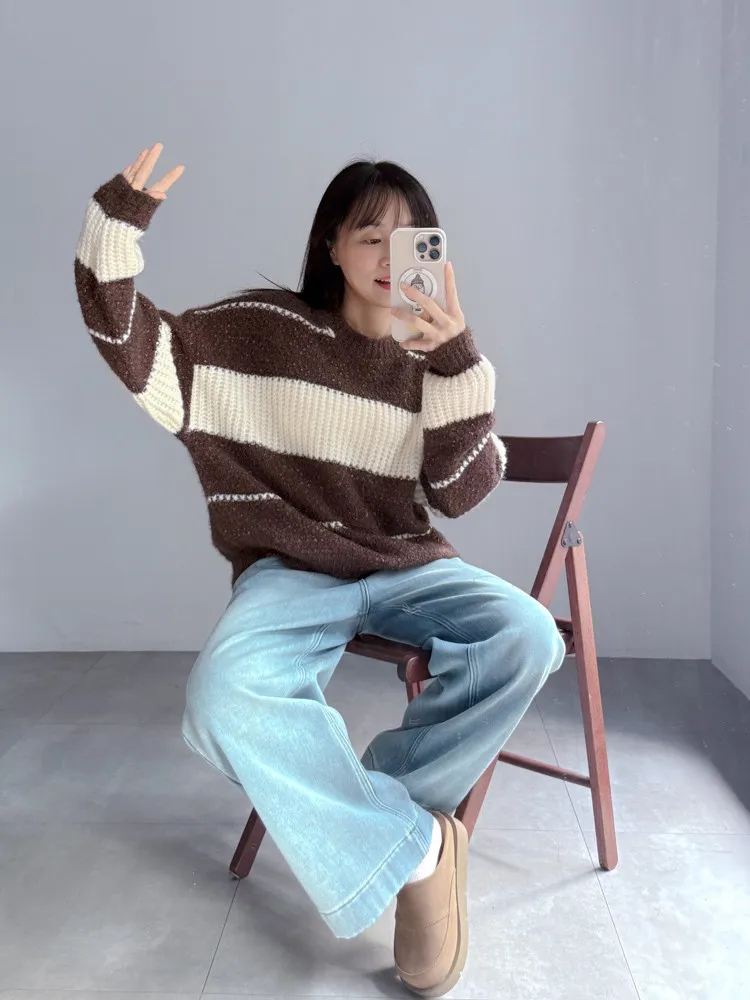 微光閃閃寬條針織衣